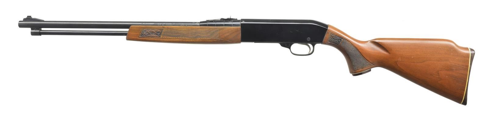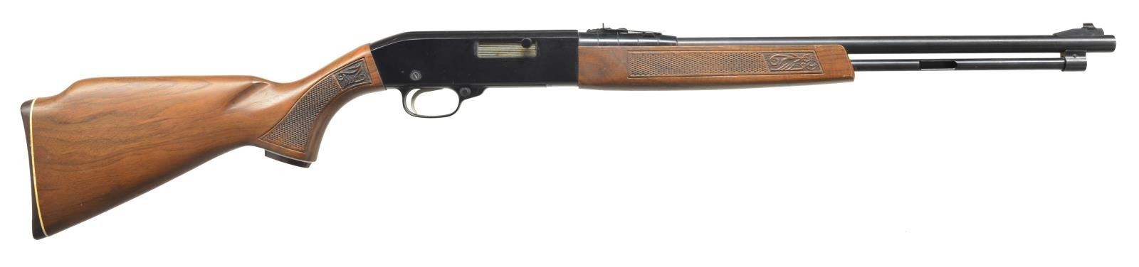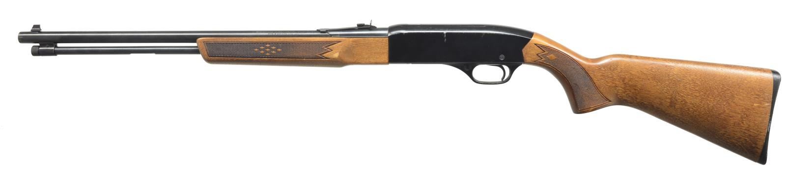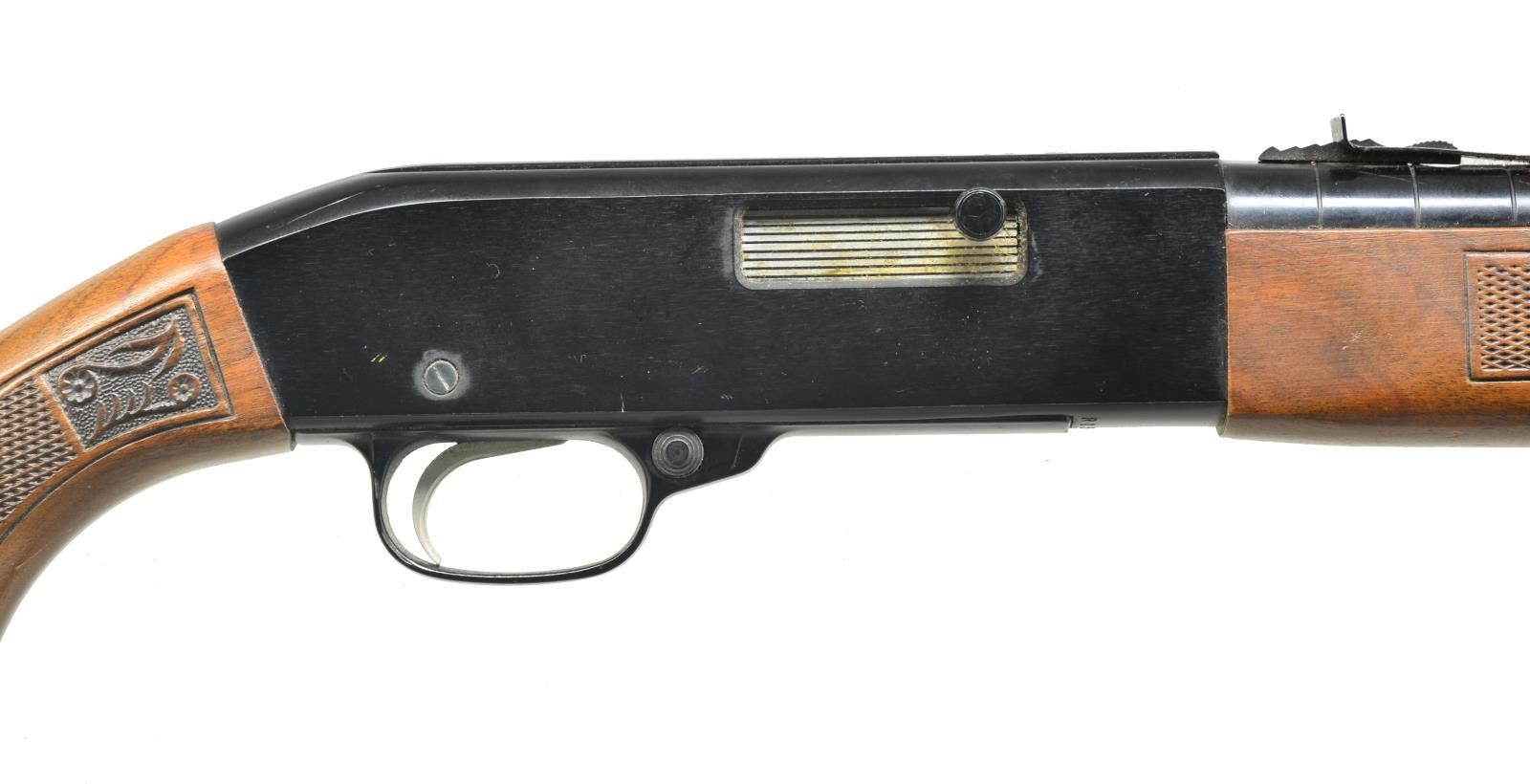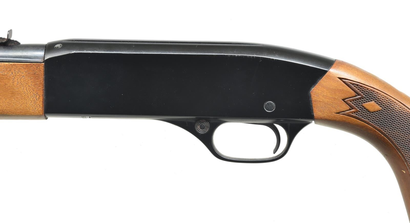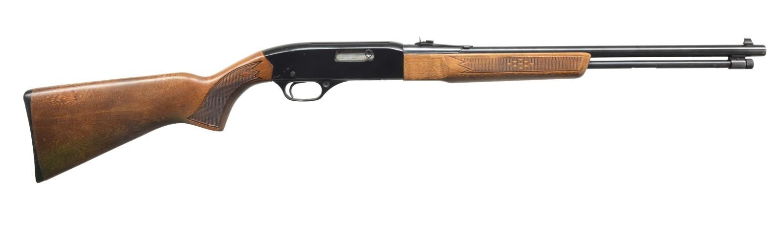 1) 290. Cal. 22 LR. S# B1923015. Bbl. 20 1/2". Ramp w/ dovetail bead front sight & dovetail adj. rear sight. CONDITION: bbl. has original blue w/ sm. amount of surface rust on right side at muzzle. Receiver has original black w/ minor thinning on sharp edges. Forend has original finish w/ minor handling marks. Buttstock has original finish w/ a couple of dings in grip area. Good Checkering. Bore is good. (20-3420/BT). 2) 190. Cal. 22 LR. S# B2163197. Bbl. 20 1/2". Dovetail bead front sight & dovetail adj. rear sight. Checkered forend. Checkered pistol grip w/ Winchester hard rubber buttplate. CONDITION: bbl. has good, original blue w/ some minor rust spots at muzzle. Receiver has original black finish w/ wear on sharp edges & a scratch on left side. On bottom near S#, someone has scratched in the letters “FTM” & “DT”. Forend has original finish w/ minor handling marks. Buttstock has original finish w/ a couple of light scratches. Bore is good. (20-3421/BT). 3) 190. Cal. 22 LR. S# B1717765. Bbl. 20 1/2". Dovetail bead front sight & dovetail adj. rear sight missing elevator. Uncheckered forend. Uncheckered pistol grip stock w/ Winchester hard rubber buttplate. CONDITION: bbl. retains very good, original blue w/ few areas of fine surface oxidation. Receiver has original black w/ minor scratches. Forend has original finish w/ a sm. dent forward left side. Buttstock has original finish w/ some flaking on sharp edges & some light scratching. Bore is good. (20-3422/BT). 4) 190. Cal. 22 LR. S# B1732200. Bbl. 20 1/2". Dovetail bead front sight & dovetail adj. rear sight. Uncheckered forend & uncheckered pistol grip stock w/ Winchester hard rubber buttplate. CONDITION: bbl. retains original blue w/ areas of fine surface oxidation. Receiver has original black w/ minor nicks & dings across top as well as a few minor scratches. Forend has original finish w/ a couple of handling marks. Buttstock has original finish w/ some minor handling marks & a couple of chips of wood at buttplate. Bore is good w/ minor pit near muzzle. (20-3423/BT). 5) TED WILLIAMS 3T. Cal. 22 LR. S# R151814. Bbl. 20 1/2". Ramp w/ bead front sight & dovetail adj. rear sight. Checkered forend. Checkered pistol grip stock w/ elaborate grip cap & brown hard rubber buttplate w/ white line spacer. There is no mag. tube. CONDITION: bbl. retains good original blue w/ some minor muzzle wear. Receiver has original black finish w/ minor wear on shark edges & a couple of faint scratches. Forend has original finish w/ a few handling marks & good checkering. Buttstock has original finish w/ a few nicks & dings as well as good checkering. Bore is very good. (20-3424/BT). ALL MODERN. $750-1,000.