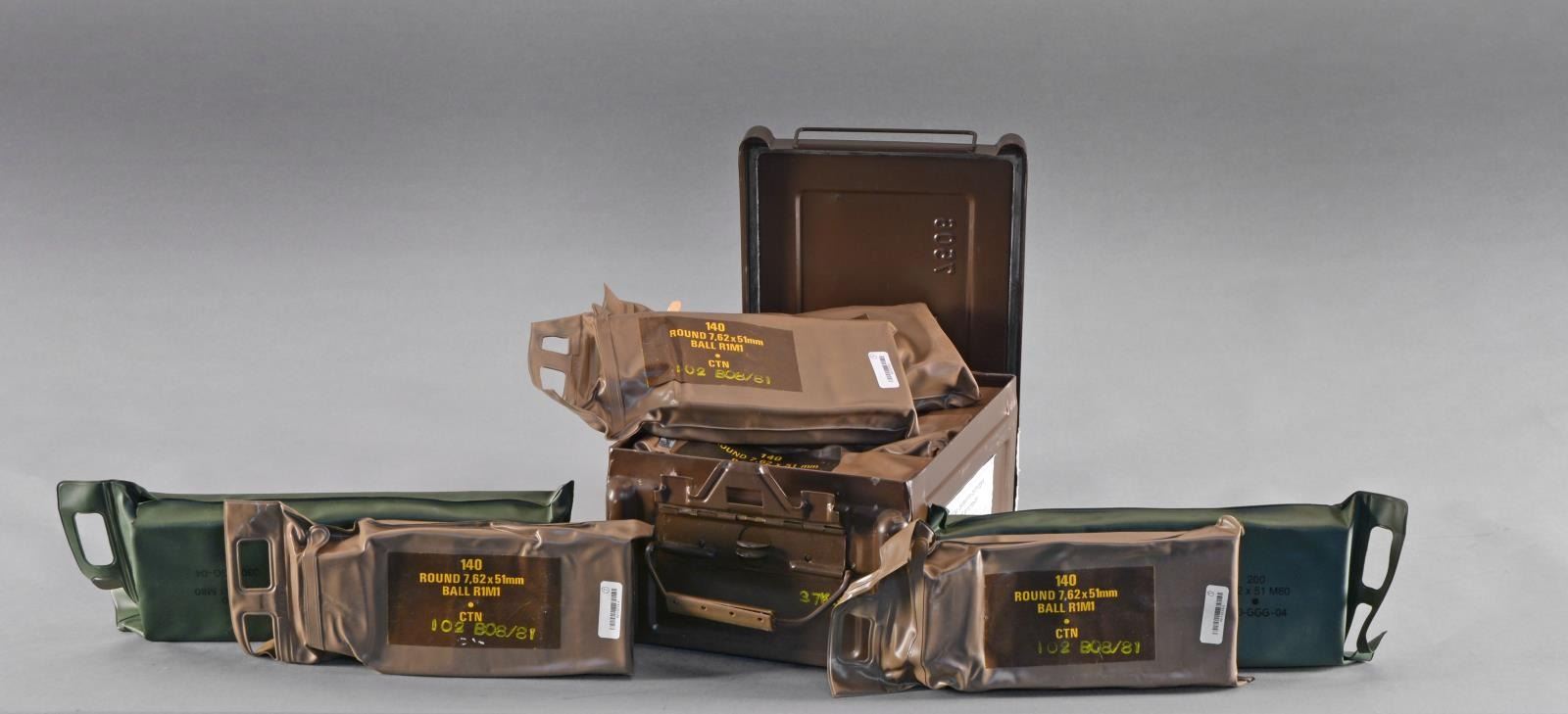 15 Battle packs of 308/7.62x51 ammunition broken up into the following denominations: 13 South African battle packs 140 rds. each. (1 open w/ 120 rds.). 2 Lituanian battle packs 200 rds. each (GGG headstamp). (02-13775-3/JZ). $700-1,100.