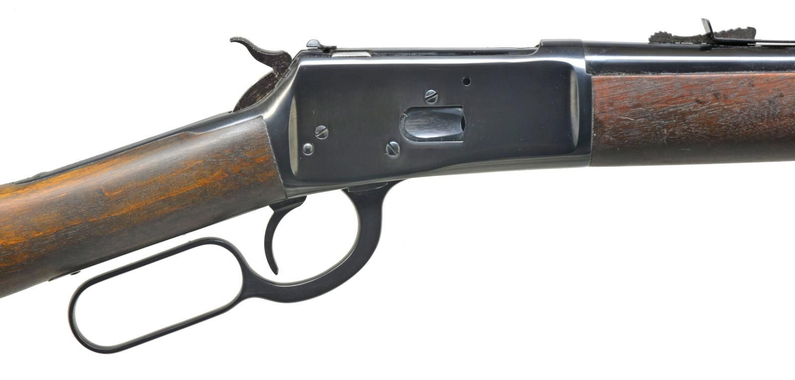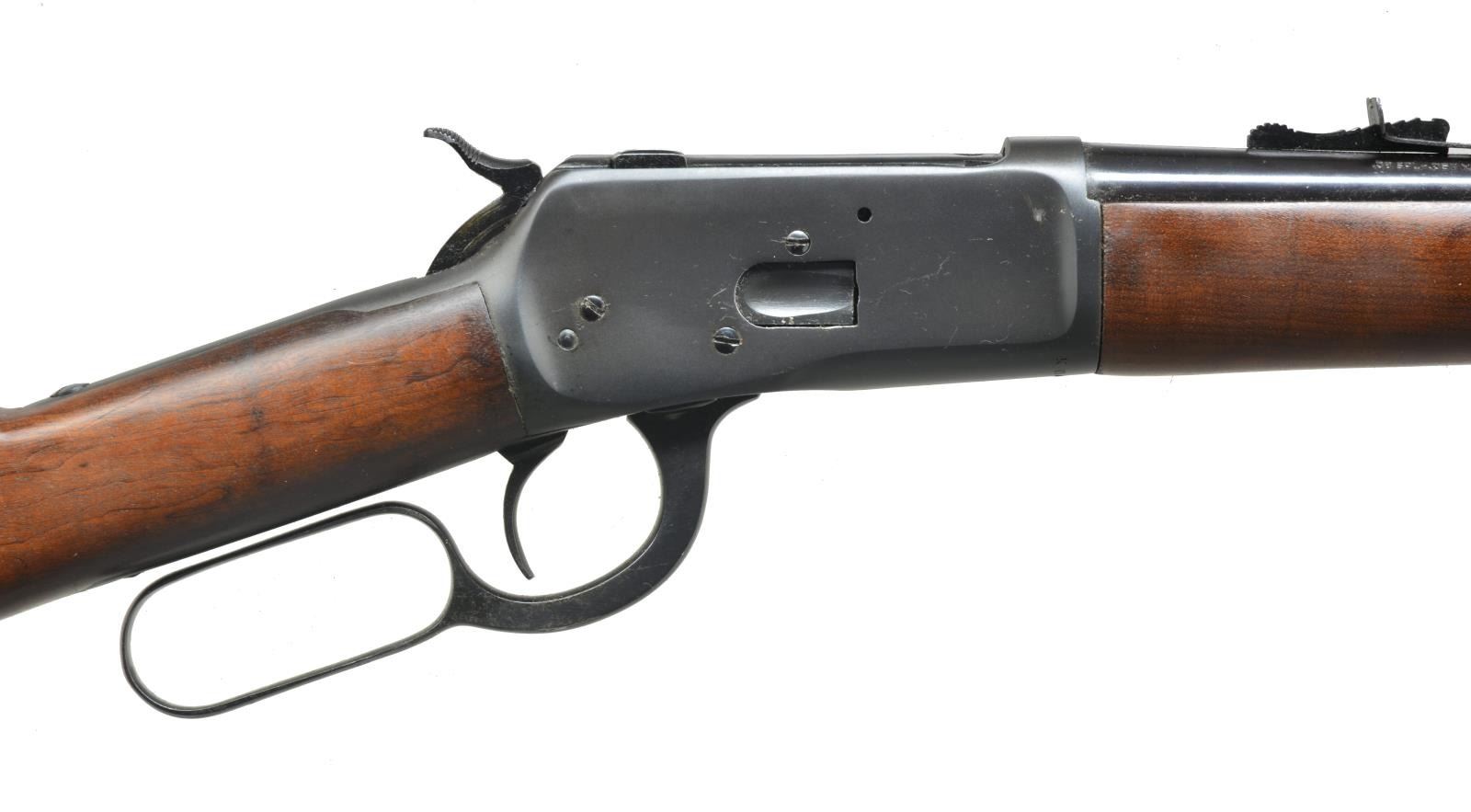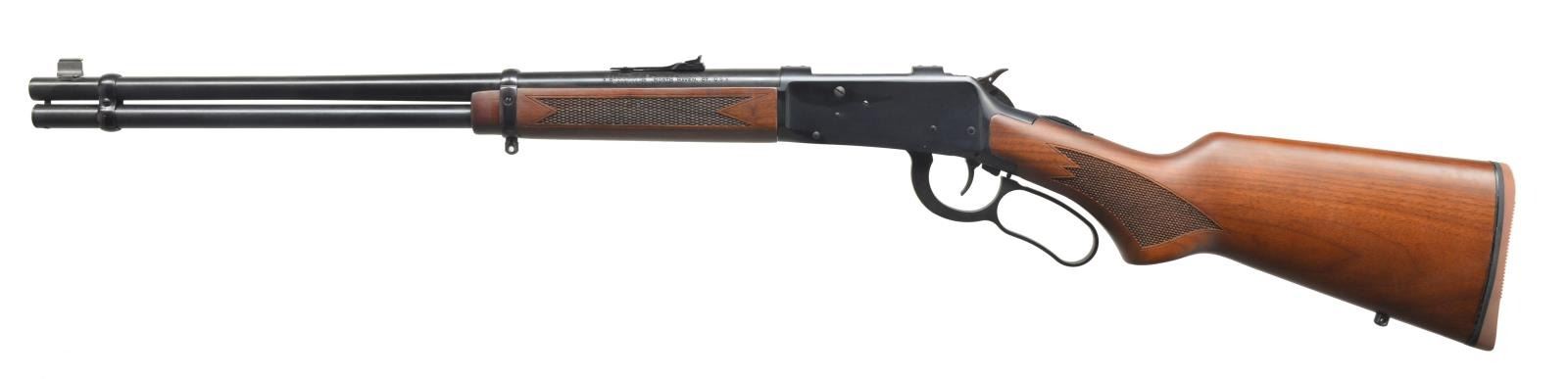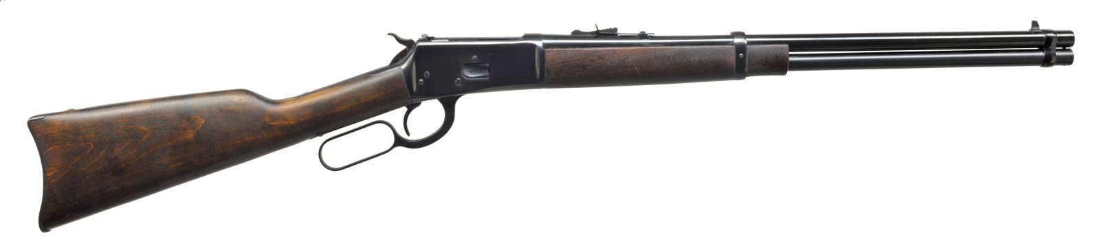 1) ROSSI 92 SRC. Cal. 38 Spl. / 357 Mag. S# K045374. Bbl. 20" w/ pinned fastened blade front sight & elevator adj. sporting rear sight. Full length mag. Matte black finished action w/ saddle ring on left side. Carbine style hardwood forearm & stock w/ steel carbine buttplate. CONDITION: over 90% blue. Wood has lightly worn finish showing scattered light marks. Bright bore w/ strong rifling. (20-3446/DS). 2) MOSSBERG MODEL 464. Cal 30-30. S# LA071191. Bbl. 20" w/ bead front sight & adj. U notch rear sight. Full length mag. Black finished action drilled for scope attachment featuring sliding top tang safety. Checkered walnut forearm & pistol grip stock w/ original rifle pad & swivel bases. CONDITION: over 98% wood & metal finish. Bright bore retains near excellent rifling. (20-3455/DS). 3) ROSSI M92 PUMA. Cal. 44 Mag. S# M130304. Bbl. 20" w/ sporting sights. Full length tubular mag. Blue finished action w/ manual safety on bolt. Hardwood carbine forearm & straight grip stock w/ crescent steel buttplate. CONDITION: 98% metal finish. Stock shows scattered sm. marks. Bright bore w/ strong rifling. (20-3467/DS). ALL MODERN. $700-1,000.