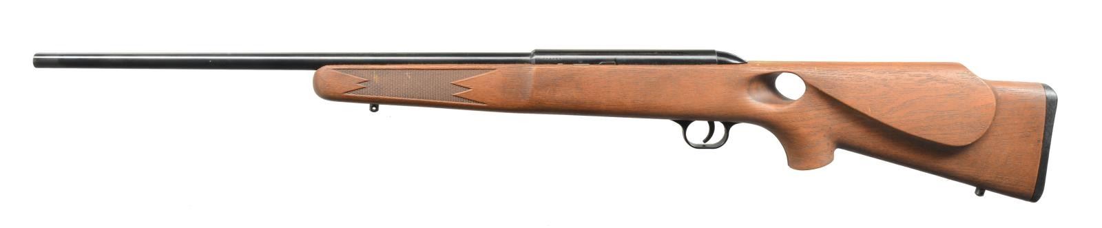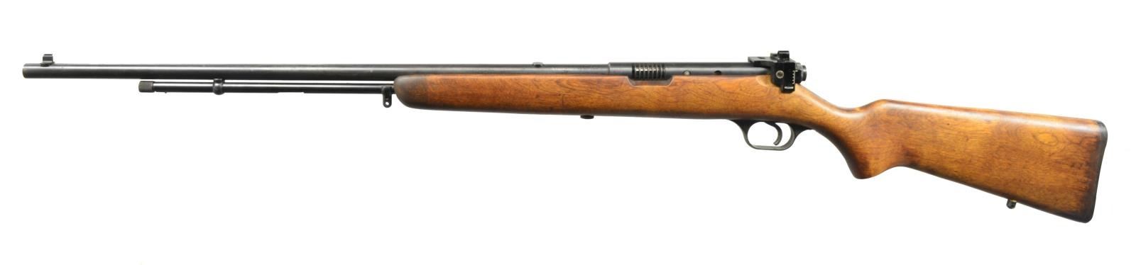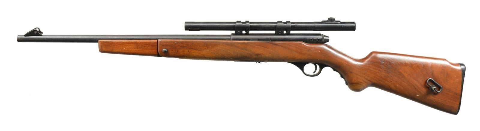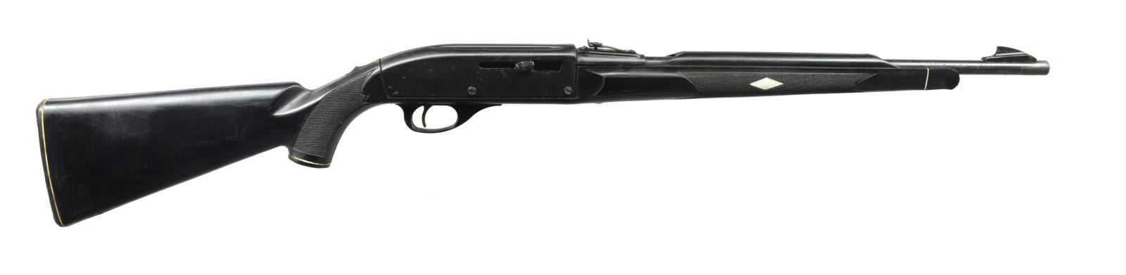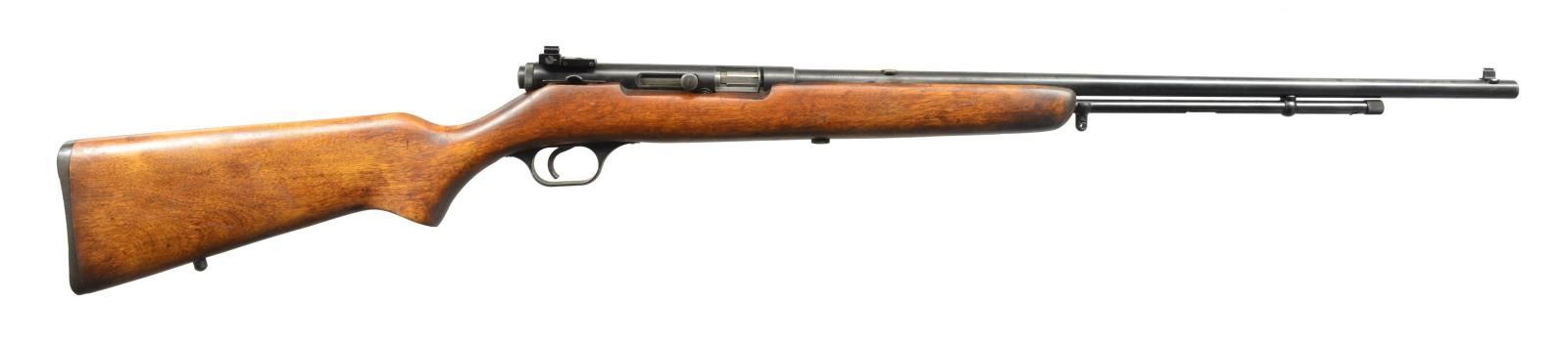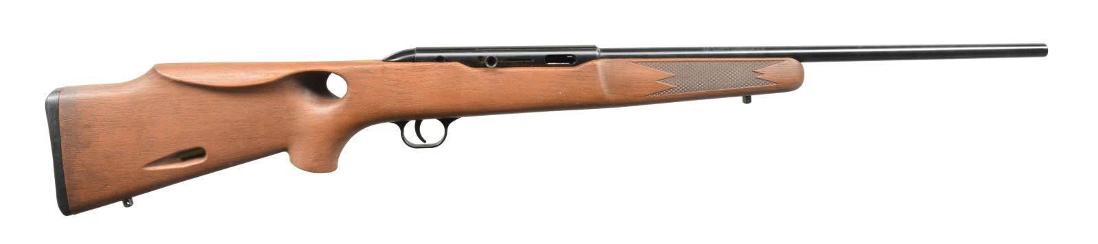 ALL: cal. 22 LR. 1) MARLIN GLENFIELD MODEL 60. S# 23518914. Bbl. 22" w/ Micro-groove rifling. Ramp mounted blade front sight w / sporting rear sight. Alloy action is grooved for tip off scope. Tubular mag. Hardwood Monte Carlo stock w/ pressed ornamentation & original buttplate. CONDITION: 80% metal finish showing scattered sm. spots of pitting & corrosion. Stock has lightly worn finish showing a few sm. marks. Bright bore w/ sound rifling. (20-2610/DS). MODERN. 2) CBC/FIE NYLON. S# GR40278. Bbl. 19 1/2". Blade front sight w/ sporting rear sight. Patterned after the Remington Nylon 66. Steel action cover is grooved for scope mt. attachment. Sliding top tang safety. Black nylon stock w/ checkering having white diamonds in forend. CONDITION: 70% blue w/ area of rust near muzzle & spots of surface corrosion on action cover. Stock shows scuffs & handling marks. Bright bore w/ strong rifling. (20-2632/DS). MODERN. 3) MARLIN MODEL 60. S# 06273349. Bbl. 22" w/ Micro-groove rifling. Ramp mounted blade front sight w/ sporting rear sight. Alloy action is grooved for tip off scope. Tubular mag. Hardwood Monte Carlo stock w/ original buttplate. CONDITION: over 90% metal finish showing spots of corrosion & finish loss. Original stock finish shows a few sm. marks. Bright bore retains sound rifling. (20-2633/DS). MODERN. 4) STEVENS MODEL 87D. NSN. Bbl. 24". Replacement bead front sight, filler in rear dovetail w/ Williams receiver sight. Tubular action is grooved for tip off scope. Hardwood pistol grip stock w/ buttplate. Added swivel bases. CONDITION: 70% dull thinning blue showing spots of corrosion & rust. Refinished stock shows scratches & handling marks. Bright bore retains sharp rifling. (20-2640/DS). CURIO. 5) MARLIN GLENFIELD MODEL 60. S# 20453327. Bbl. 22" w/ Micro-groove rifling. Ramp mounted blade front sight w/ sporting rear sight. Alloy action is grooved for tip off scope. Tubular mag. Hardwood Monte Carlo stock w/ pressed ornamentation & original buttplate. Ithaca Gun 4x20mm gloss finished scope w/ standard crosshairs on see through mts. CONDITION: 95% metal finish. Original stock finish shows a few marks. Bright bore retains strong rifling. Scope has clear optics. (20-2794/DS). MODERN. 6) MOSSBERG MODEL 377 PLINKSTER. S# M09033. Bbl. 20" sightless rnd. w/ Ac-Kru-Gruv rifling. Tubular receiver is grooved for tip off scope & has right side safety. Wood grain synthetic Monte Carlo, roll over cheekpiece, thumb hole stock w/ swivel bases & original buttplate. Tubular mag. loads through butt. CONDITION: 98% blue. Stock shows a few sm. marks. Bright bore w/ sharp rifling. (20-2849/DS). MODERN. 7) MOSSBERG MODEL 152. NSN. Bbl. 18 1/4" w/ Ac-Kru-Gruv rifling. Protected post front sight. Receiver sight is removed. 3/4" Tube 4x scope w/ standard crosshairs on tip off mts. Pistol grip Monte Carlo walnut stock w/ original buttplate having a folding walnut forend. MAGS: none. CONDITION: 70% dull blue, rifle & scope have general light surface corrosion. Sanded & refinished stock shows dents, marks & mildew spots w/ cracks on pistol grip. Bore retains sound rifling. (20-2860/DS). CURIO. $450-650.