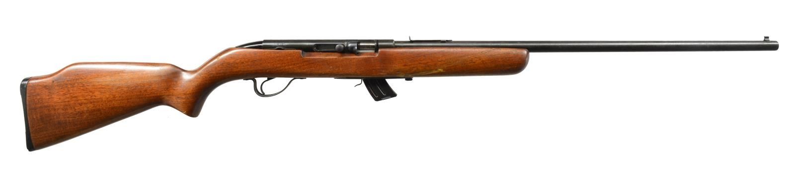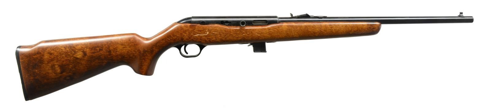 1) MOSSBERG 453T. Cal. 22 LR. S# 1124724. Bbl. 18 1/4" w/ sporting sights. Tubular receiver grooved for tip off scope. Monte Carlo cheekpiece hardwood stock w/ original buttplate. MAGS: 1-7 rd. CONDITION: 98% blue. Original stock finish shows a few scratches & marks. Bore is bright w/ strong rifling. (20-1614/DS) 2) REMINGTON 552 SPEEDMASTER. Cal. 22 S, L, LR. S# A1794577. Bbl. 21 1/2" w/ sporting sights. Tubular mag. Alloy receiver is grooved for tip off scope & has steel shell deflector. Hardwood forearm & pistol grip stock w/ original buttplate. CONDITION: 98% blue. Wood finish shows a few mildew spots. Bore is bright w/ strong rifling. (20-1616/DS). 3) SAVAGE 7H. Cal. 22 S, L, LR & High Speed Short. NSN. Bbl. 24" w/ sporting sights. Tubular receiver grooved for tip off scope & has metal shell deflector. Monte Carlo walnut stock w/ original buttplate. MAGS: 1-10 rd. CONDITION: 90% lightly faded blue showing scattered freckling spots & surface corrosion. Stock has moderately worn finish showing sm. chips & handling marks w/ a plastic wood filled gouge on right side of forearm. Bore is bright w/ strong rifling. (20-1617/DS). ALL CURIO. $300-500.