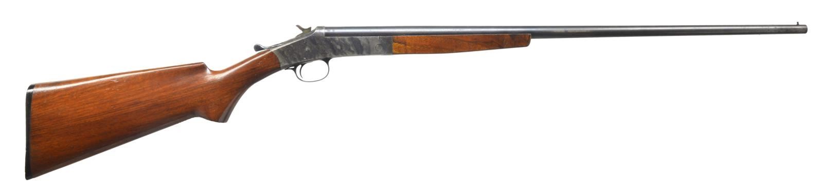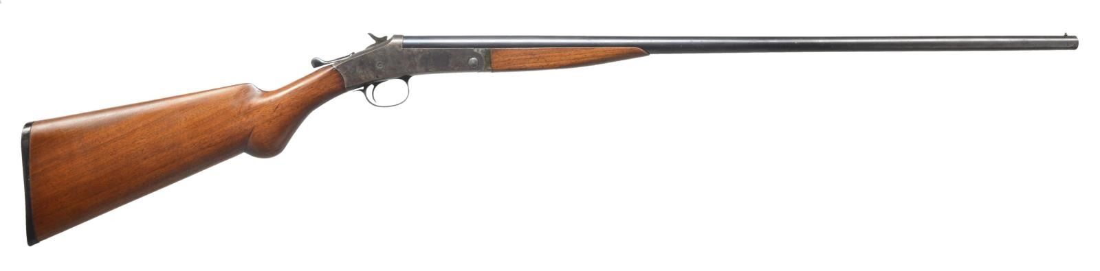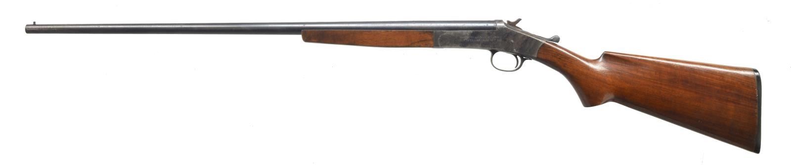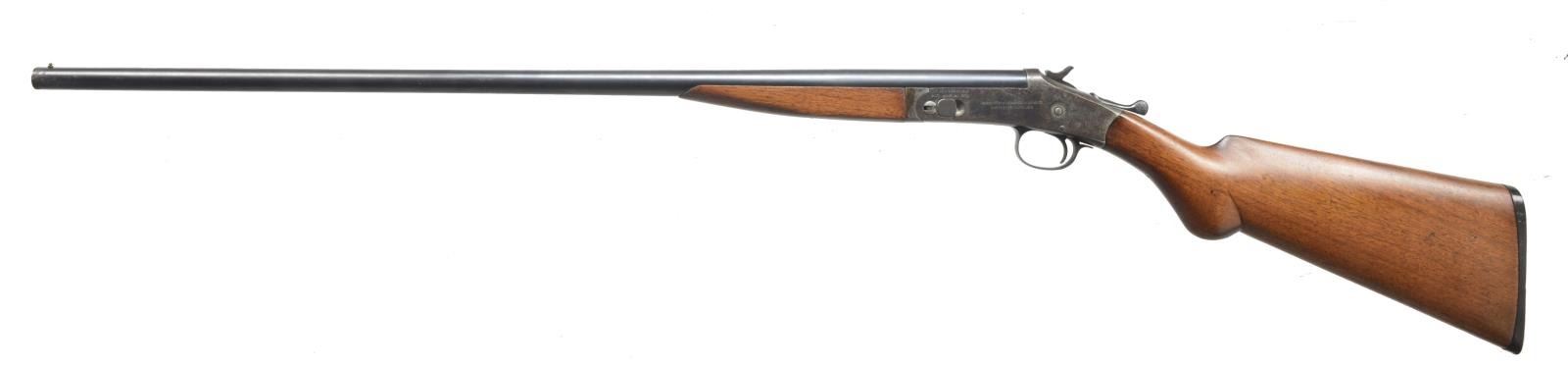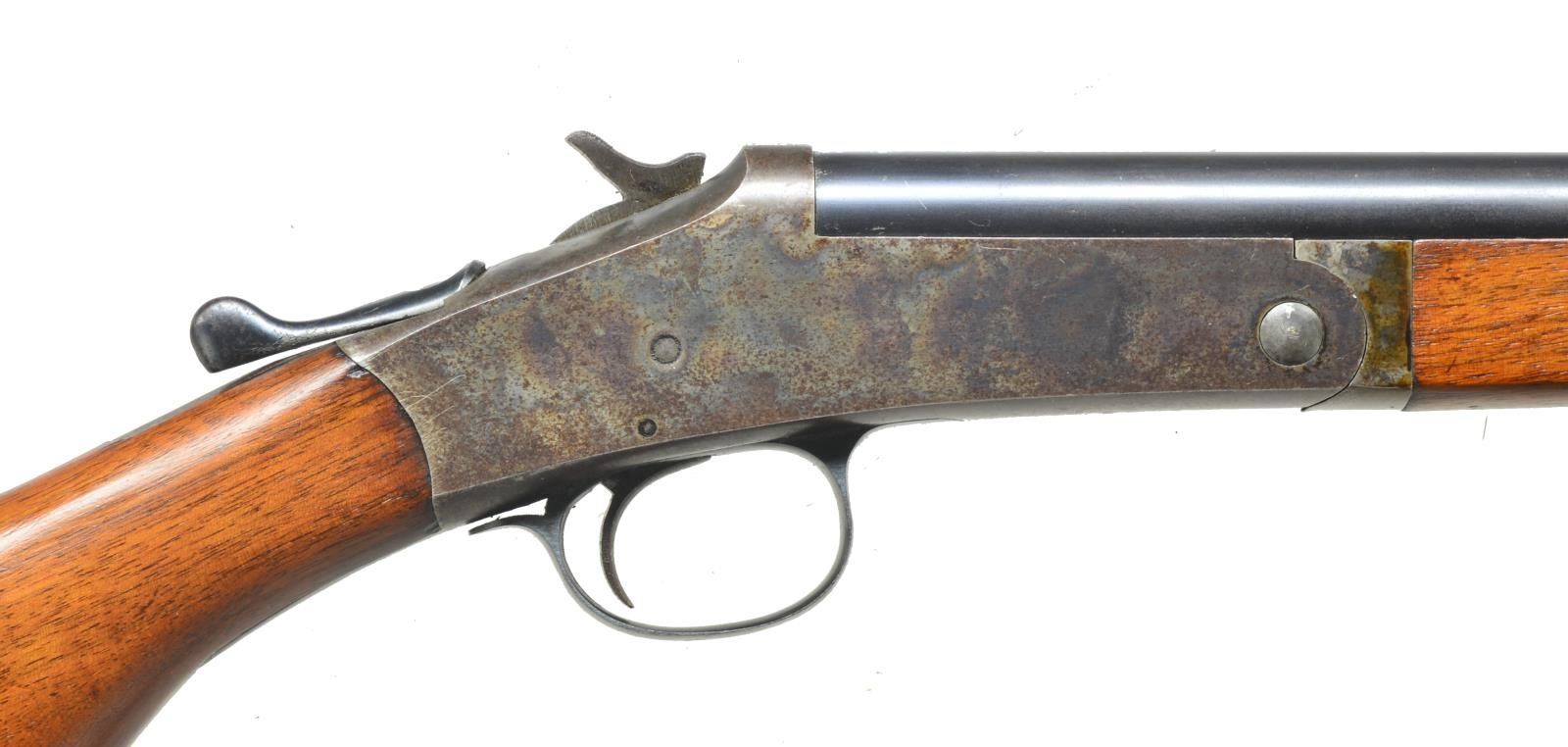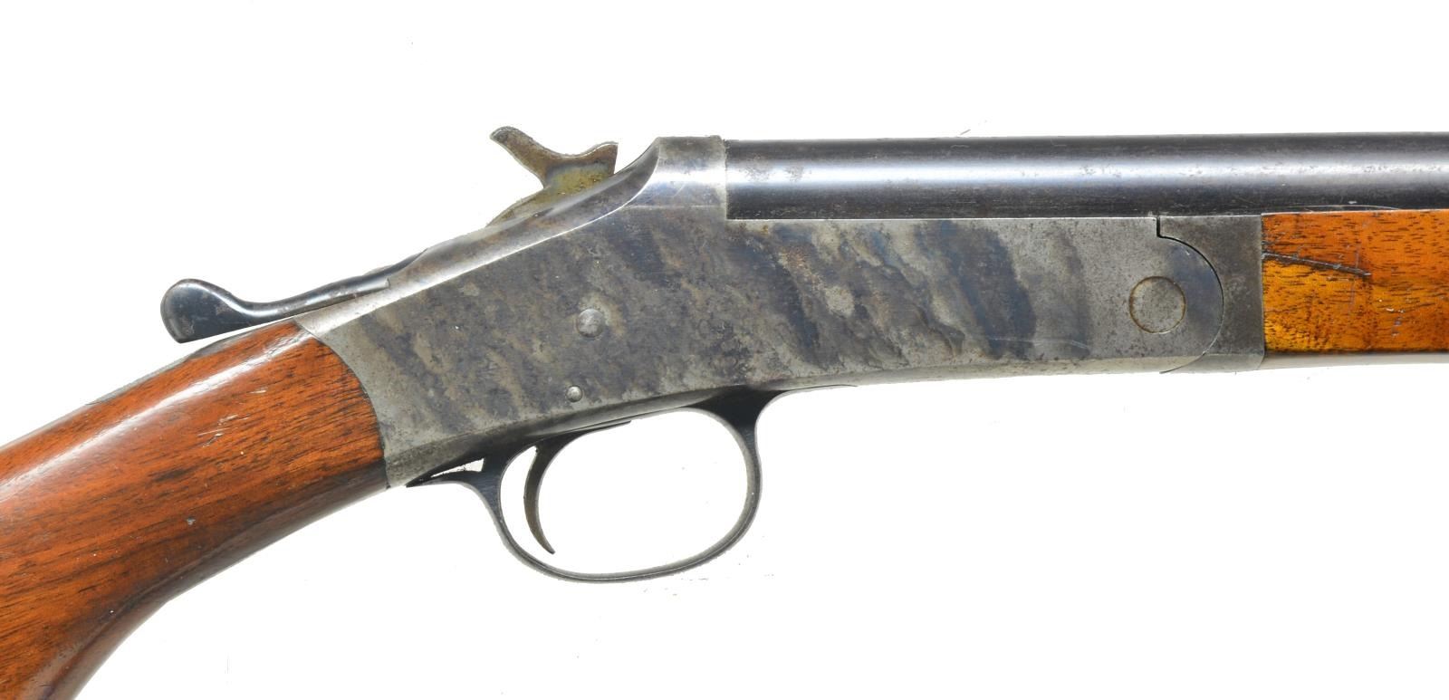 SHOTGUNS. 1) Cal. 410 / 44 (410, 2 1/2" or 44XL shot cartridge). S# A19117. Bbl. 26" plain w/ cyl. bore & brass front bead. Case colored top lever action. Walnut forearm & pistol grip stock. LOP: 13 7/8" over original buttplate. CONDITION: 80% lightly faded blue & case color finish showing scattered spots of corrosion & light pitting. Wood has lightly worn original finish showing a few scattered dents & marks. Bore shows scattered spots of pitting. (20-3105/DS). 2) Cal. 28 Ga., 2 3/4". S# A35736. Bbl. 28" plain w/ fixed Mod. choke & brass bead. Case colored top lever action w/ hand detachable hinge pin. Walnut splinter forearm & rnd. knob stock. LOP: 13 3/4" over original buttplate. CONDITION: bbl. retains over 95% blue showing spots of surface corrosion. Action retains 70% lightly faded case colors showing scattered surface corrosion. Refinished wood shows a few light handling marks. Bore shows scattered spots of very light pitting. (20-3107/DS). BOTH CURIO. $600-850.