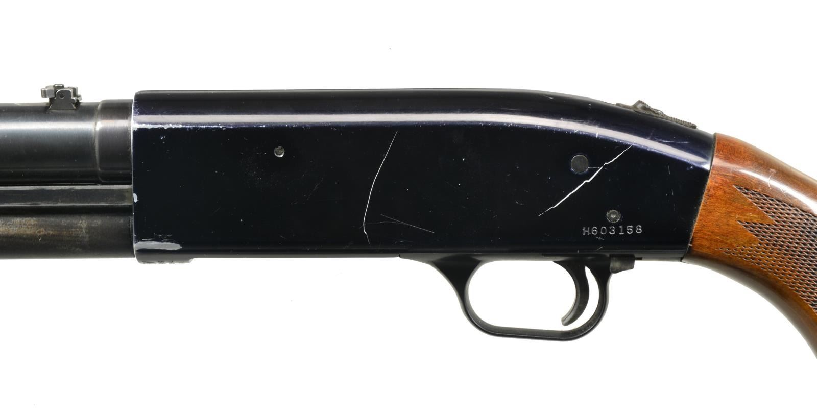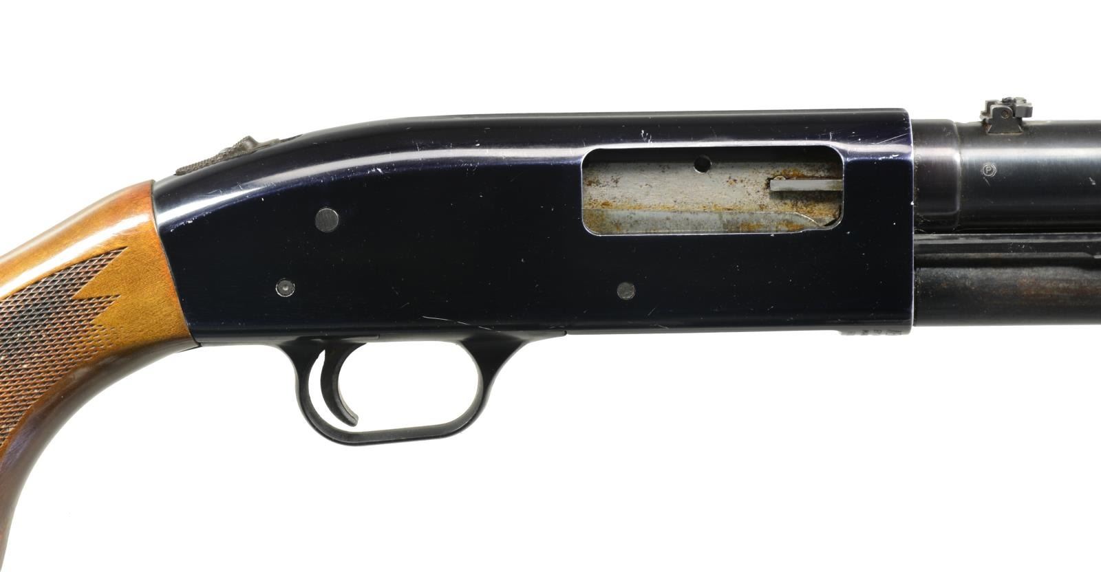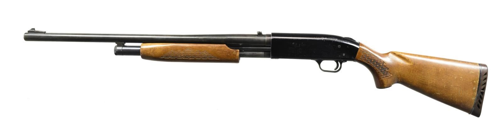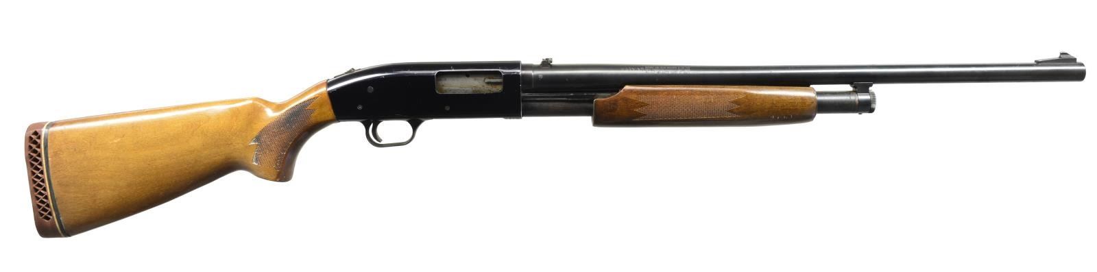 ALL: cal. 12 Ga., 2 3/4" & 3". 1) MODEL 550AL. S# H334752. Bbl. 24" cyl. bore w/ ramp mounted blade front sight & folding leaf rear sight. Black finished alloy action w/ sliding top safety having game scene ornamentation. Hardwood forearm & pistol grip stock w/ plastic grip cap, pressed checkering & original recoil pad. CONDITION: 80% metal finish. Stocks show scratches, dents & spots of finish loss. Good bore. (20-2549/DS). 2) MODEL 500AB. S# G103202. Bbl. plain shortened to 24 1/2" cyl. bore w/out a reattached bead. Black alloy action w/ sliding top safety. Grooved walnut forearm & pistol grip hardwood stock w/ swivel base & original recoil pad. CONDITION: 98% metal finish. Forearm shows sm. scratches & marks. Stock show scratches & handling marks w/ chip along left side of action. Very good bright bore. (20-2556/DS). 3) MODEL 500A. NSN. Bbl. 18 1/2" cyl. bore w/ ramp mounted bead front sight & folding leaf rear sight. Black finished alloy action w/ sliding top safety. Grooved hardwood forearm. Walnut stock w/ pressed checkering, plastic grip cap, swivel base & recoil pad. CONDITION: 60% metal finish showing spots of rust, corrosion & wear. Forearm has worn finish w/ a chip in center of forward portion. Stock shows numerous scratches & marks. Good bright bore. (20-2567/DS). 4) MODEL 600AT. S# H603158. Bbl. 24" cyl. bore w/ ramp mounted bead front sight & folding leaf rear sight. Black alloy action w/ sliding top safety. Hardwood forearm & pistol grip stock w/ pressed checkering. LOP: 14 7/8" over poorly fit aftermarket white line pad. CONDITION: 75% metal finish. Wood shows scattered scratches & marks. Good bright bore. (20-2585/DS). 5) MODEL 550ABD. S# G750886. Bbl. 18 1/2" w/ ramp mounted bead front sight & folding leaf rear sight. Black alloy action w/ sliding top safety. Hardwood grooved forearm & pistol grip stock w/ pressed checkering & original recoil pad. CONDITION: 90% metal finish. Wood shows light handling marks. Bore is generally bright showing spots of plastic fouling. (20-2589/DS). ALL MODERN. $750-1,250.