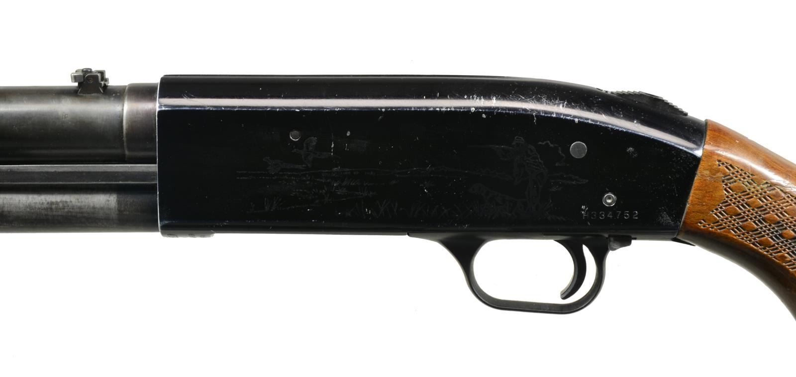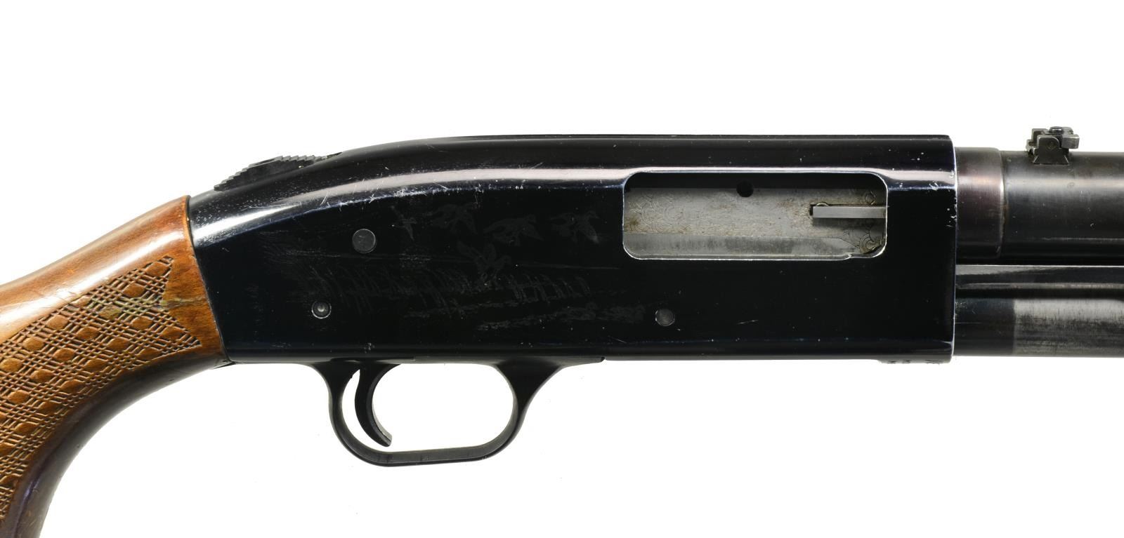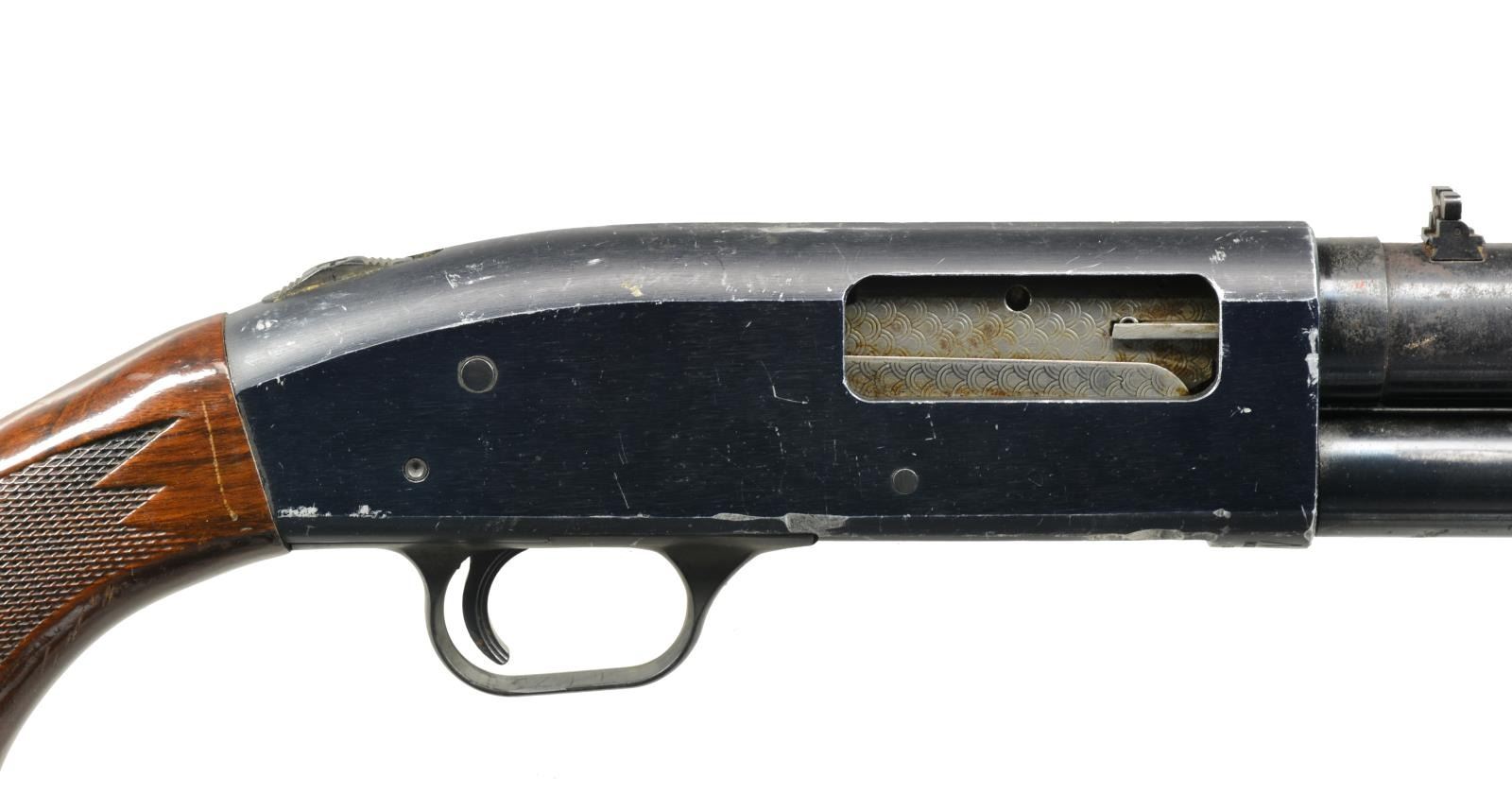 ALL: cal. 12 Ga., 2 3/4" & 3". 1) MODEL 550AL. S# H334752. Bbl. 24" cyl. bore w/ ramp mounted blade front sight & folding leaf rear sight. Black finished alloy action w/ sliding top safety having game scene ornamentation. Hardwood forearm & pistol grip stock w/ plastic grip cap, pressed checkering & original recoil pad. CONDITION: 80% metal finish. Stocks show scratches, dents & spots of finish loss. Good bore. (20-2549/DS). 2) MODEL 500AB. S# G103202. Bbl. plain shortened to 24 1/2" cyl. bore w/out a reattached bead. Black alloy action w/ sliding top safety. Grooved walnut forearm & pistol grip hardwood stock w/ swivel base & original recoil pad. CONDITION: 98% metal finish. Forearm shows sm. scratches & marks. Stock show scratches & handling marks w/ chip along left side of action. Very good bright bore. (20-2556/DS). 3) MODEL 500A. NSN. Bbl. 18 1/2" cyl. bore w/ ramp mounted bead front sight & folding leaf rear sight. Black finished alloy action w/ sliding top safety. Grooved hardwood forearm. Walnut stock w/ pressed checkering, plastic grip cap, swivel base & recoil pad. CONDITION: 60% metal finish showing spots of rust, corrosion & wear. Forearm has worn finish w/ a chip in center of forward portion. Stock shows numerous scratches & marks. Good bright bore. (20-2567/DS). 4) MODEL 600AT. S# H603158. Bbl. 24" cyl. bore w/ ramp mounted bead front sight & folding leaf rear sight. Black alloy action w/ sliding top safety. Hardwood forearm & pistol grip stock w/ pressed checkering. LOP: 14 7/8" over poorly fit aftermarket white line pad. CONDITION: 75% metal finish. Wood shows scattered scratches & marks. Good bright bore. (20-2585/DS). 5) MODEL 550ABD. S# G750886. Bbl. 18 1/2" w/ ramp mounted bead front sight & folding leaf rear sight. Black alloy action w/ sliding top safety. Hardwood grooved forearm & pistol grip stock w/ pressed checkering & original recoil pad. CONDITION: 90% metal finish. Wood shows light handling marks. Bore is generally bright showing spots of plastic fouling. (20-2589/DS). ALL MODERN. $750-1,250.