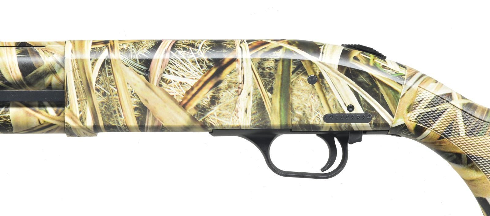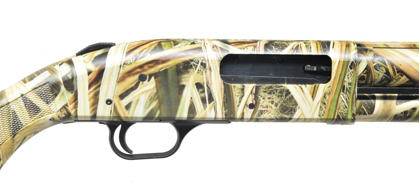 1) 835 PUMP IN CAMO FINISH. Cal. 12 Ga., 3 1/2". S# UM0006364. Bbl. 28" bbl. ventilated rib & interchangeable chokes. Camo finish composition stocks w/ black pad & press checkering. CONDITION: retaining nearly all camo finish w/ a few scattered handling marks. Shiny bore. Mechanically fine. (20-3502/MGM). 2) MODEL 500AT. Cal. 12 Ga., 3". S# G572979. Bbl. 28" plain & fixed modified chokes. Hardwood pistol grip buttstock w/ hard rubber buttplate. Matching forend w/ finger grooves. CONDITION: retaining over 90% factory finishes w/ scattered light rust & freckling on bbl. especially around muzzle. A few marks in receiver & wood. Shiny bore. Mechanically good. (20-3952/MGM). BOTH MODERN. $750-1,000.