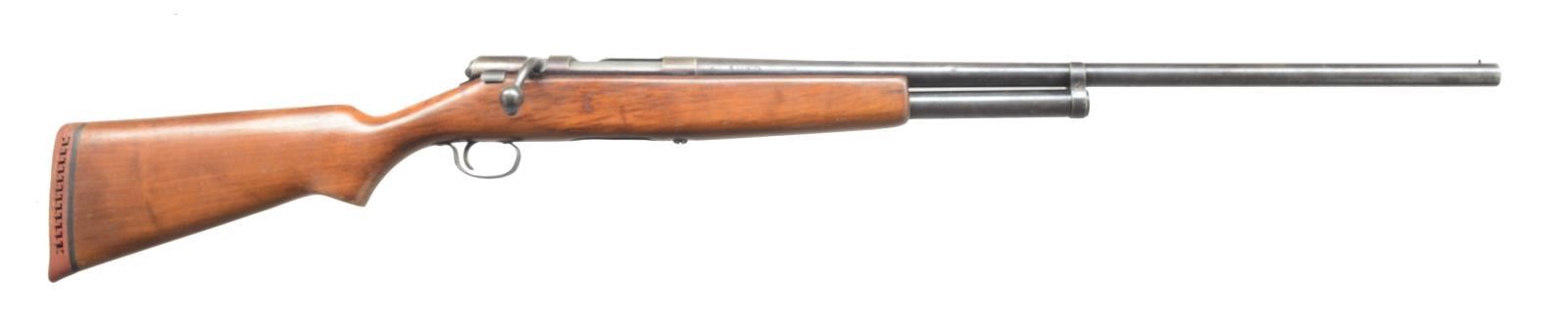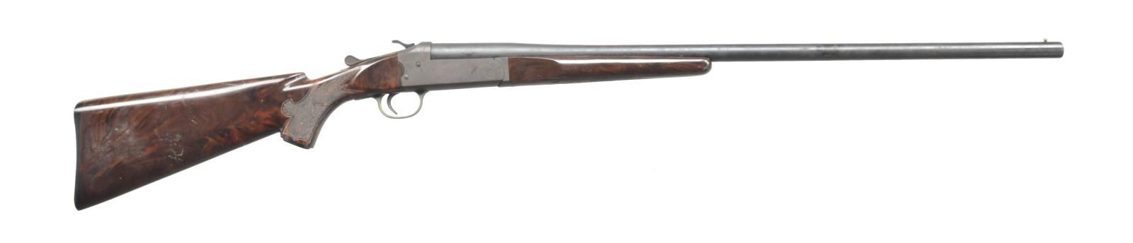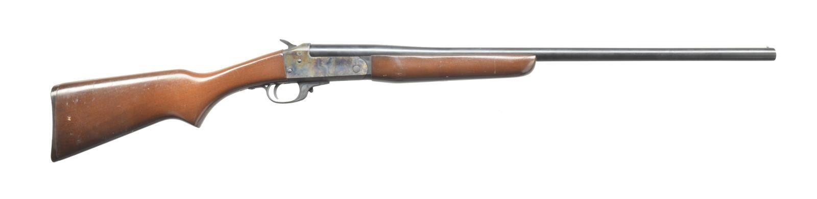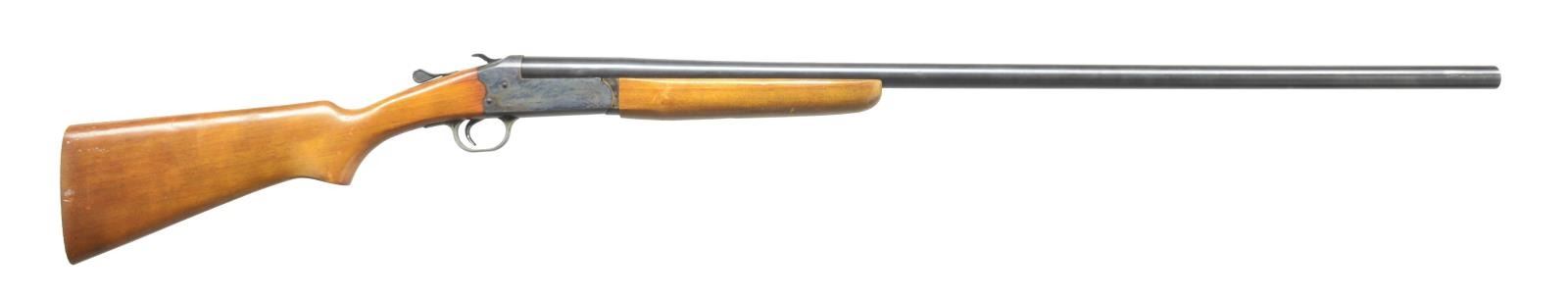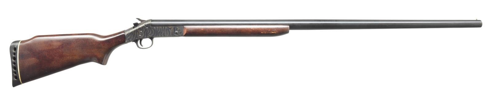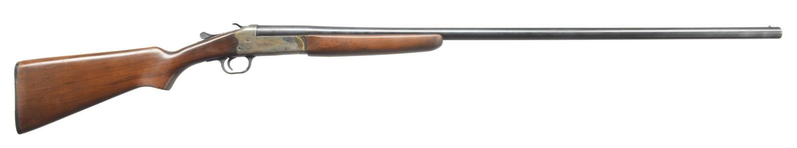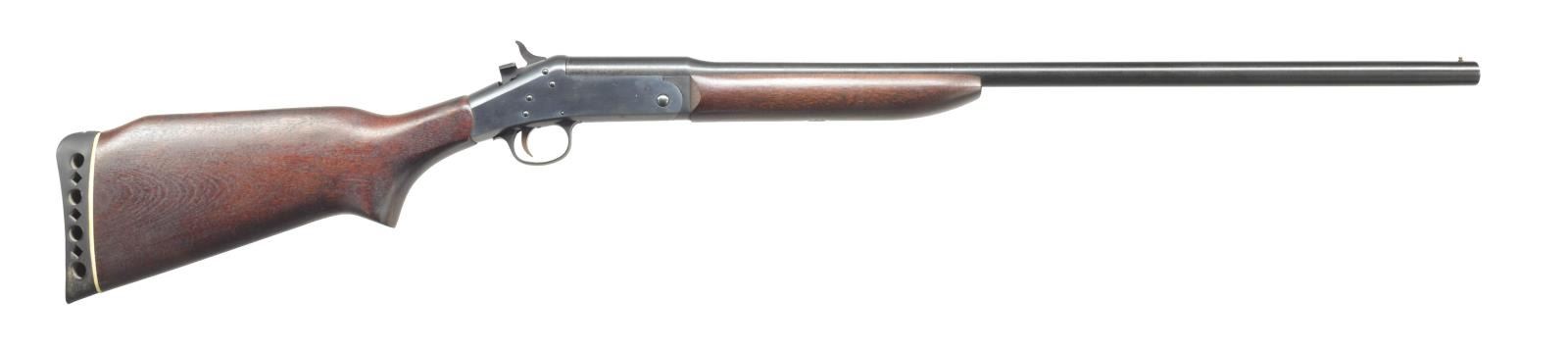 1) JC HIGGINS 583.17. Cal. 12 Ga. NSN. Bbl. 28" plain bbl. w/ 2 3/4" chamber & mod choke. Uncheckered pistol grip stock w/ red unmarked vented recoil pad. CONDITION: bbl. retains a brown patina mixed w/ original blue & spots of fine surface oxidation. Receiver has thinned to a silver patina. Stock has original finish w/ some minor nicks & light scratches. Bore is good. (20-3435/BT). 2) STEVENS 94C. Cal. 12 Ga. NSN. Bbl. 26" plain bbl. Silver bead front sight. Bbl. marked on left side of chamber “SELECTED FORGED STEEL PROOF TESTED 12 GAUGE 2 3/4 INCH CHAMBER”. Left side of frame marked “STEVENS SAVAGE ARMS CORPORATION CHICKAPEE FALLS, MASS. U.S.A.”. Uncheckered forend. Uncheckered pistol grip w/ serrated black hard rubber buttplate. CONDITION: bbl. retains most of its original blue w/ a couple dark spots. Receiver has original case colors thinning on left side w/ some areas of fine surface oxidation. Forend has original finish w/ some minor handling marks. Buttstock has coat of added finish w/ a few nicks & dings as well as light scratches. Bore is good. (20-3436/BT). 3) STEVENS 94C. Cal. 12 Ga. NSN. Bbl. 34 3/4" plain bbl. w/ 2 3/4" chamber. Front bead is missing w/ vacant hole. Left side over chamber marked “SELECTED FORGED STEEL PROOF TESTED 12 GAUGE 2 3/4 INCH CHAMBER”. Uncheckered forend. Uncheckered pistol grip stock missing buttplate. Left side of receiver marked “STEVENS SAVAGE ARM CORPORATION. CHICKAPEE FALLS. MASS. U.S.A.”. CONDITION: bbl. retains most of its original blue w/ a minor rub mark near right side of muzzle. Receiver retains most of its original case colors w/ minor wear on sharp edges. Forend has original finish w/ a few nicks & sm. dents. Buttstock has original finish w/ some minor handling marks & flaking near butt. Bbl. is good w/ 1 minor pit. (20-3437/BT). 4) UNIVERSAL FIREARMS 2000 12-28 IC. Cal. 12 Ga. S# 95576. Bbl. 28" plain bbl. Brass bead front. 3" Chamber. Improved cyl. choke. Uncheckered forend. Uncheckered pistol grip stock w/ squashed red vented recoil pad. Right side of trigger guard marked “12-76”. CONDITION: bbl. retains original blue w/ fine surface oxidation over chamber. Receiver has original case coloring w/ fine surface oxidation on both sides. Forend has original finish w/ a few minor nicks & dents. Buttstock has original finish w/ handling marks. Bore is good w/ a couple sm. pits. (20-3438/BT). 5) ITHACA M665 SUPERSINGLE. Cal. 20 Ga. S# 660254827. Bbl. 28" rnd. bbl. Brass bead front sight. 3" Chamber & full choke. Uncheckered forend. Checkered straight grip stock w/ Ithaca hard rubber buttplate. CONDITION: bbl. has original blue blending w/ areas of fine surface rust. Receiver has original black finish w/ minor sharp edge wear. Forend has original finish w/ hand worn patina. Buttstock has original finish w/ handling marks & good checkering. Bore is dark w/ a few scattered pits. (20-3439/BT). 6) STEVENS/SPRINGFIELD 107B. Cal. 16 Ga. NSN. Bbl. 28" rnd. bbl. Silver front sighting bead. Checkered tenite forend. Checkered tenite stock w/ black grip cap. Unmarked hard rubber buttplate. CONDITION: bbl. retains original blue blending w/ surface oxidation & spots of surface rust towards muzzle. Receiver shows some original case colors blending w/ brown patina. Trigger guard has worn traces of original black. Forend is original finish w/ some handling marks & light scratches. Checkering is filled w/ a white substance. Buttstock is original finish w/ numerous handling marks & areas of white spots. Bore is good. (20-3440/BT). 7) H&R TOPPER JR. 490 GREENWING SPECIAL. Cal. 20 Ga. S# GW5634. Bbl. 26" rnd. bbl. Brass bead front sight. 3" Chamber & modified choke. Top of bbl. over chamber marked “TOPPER JR. MODEL 490 20 GA. 3" MOD.”. Left side of receiver marked “GREENWING SPECIAL HARRINGTON & RICHARDSON, INC. GANDER, MASS MADE IN U.S.A. US PATENT NO. 398848”. Uncheckered forend. Uncheckered pistol grip stock & black vented H&R recoil pad. LOP: 13 1/4". CONDITION: bbl. retains original blue w/ some areas of fine surface oxidation. Receiver retains original blue w/ wear on sharp edges. Forend has original finish. Buttstock has original finish w/ few handling marks. Bore Is good w/ 2 minor pits. (20-3441/BT). 8) STEVENS 9478. Cal. 20 Ga. S# D656221. Bbl. 26" plain bbl. Silver front sighting bead. 3" Chamber. Uncheckered forend. Uncheckered pistol grip stock w/ black serrated rubber buttplate. Button for opening is missing. CONDITION: bbl. retains original blue w/ a couple sm. spots of surface oxidation. Receiver has original case coloring w/ wear on sharp edges. Forend has original finish w/ a few handling marks. Buttstock has original finish w/ a couple minor dents & sm. dings. Bore is good. (20-3442/BT). 9) H&R 176. Cal. 10 Ga. Mag. S# AR206878. Bbl. 36" rnd. bbl. Brass bead front sight. 3 1/2" Chamber & full choke. Uncheckered forend. Uncheckered pistol grip buttstock & black H&R vented recoil pad w/ white spacer. Top of bbl. at chamber marked “MODEL 176 10 GA. MAG. 3 1/2" CHAMBER FULL CHOKE”. Left side of receiver marked “HARRINGTON & RICHARDSON. INC. GARNER, MASS. MADE IN U.S.A. US PATENT NO. 3988848”. CONDITION: bbl. retains most of its original blue w/ a few dark spots & a couple light scratches. Receiver has most of its original case colors w/ wear on sharp edges. Forend has original finish w/ a few handling marks & minor rubs. Buttstock has original finish w/ a couple of nicks & dings as well as flaking near buttplate. Bore is good w/ minor roughness at forcing cone. (20-3443/BT). 10) H&R 176 SPORTSMAN LONG RANGE. Cal. 10 Ga. Mag. S# AS268732. Bbl. 26" rnd. bbl. Brass bead front sight. Top of chamber area marked “MODEL 176 10 GA. MAGNUM 3 1/2" CHAMBER FULL CHOKE”. Left side of frame marked “SPORTSMANS LONG RANGE HARRINGTON & RICHARDSON. INC. GARNER. MASS. MADE IN U.S.A. U.S. PATENT NO. 3988848”. Uncheckered forend. Uncheckered pistol grip stock w/ black vented H&R recoil pad w/ white line spacer. Bbl. retains 