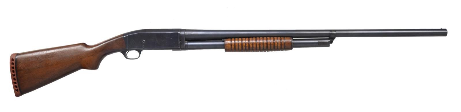 Cal. 12 Ga. S# 230734. Bbl. 30". Full choke marked w/ silver front sighting bead. 16 Ring forend. Uncheckered pistol grip stock w/ red vented Red Head recoil pad. Bbl. has matching number to receiver. CONDITION: bbl. has good, original blue w/ minor thinning at chamber & sm. cleaned area about half way. Receiver has very good original blue w/ spotting of fine surface oxidation & wear on sharp edges. Forend has a light coat of added finish. Uncheckered buttstock has original finish w/ minor handling marks, hand wear in grip area & spots where it had been left in a hot case, pulling the finish off. Bore is bright. (20-3172/BT). MODERN. $300-450.