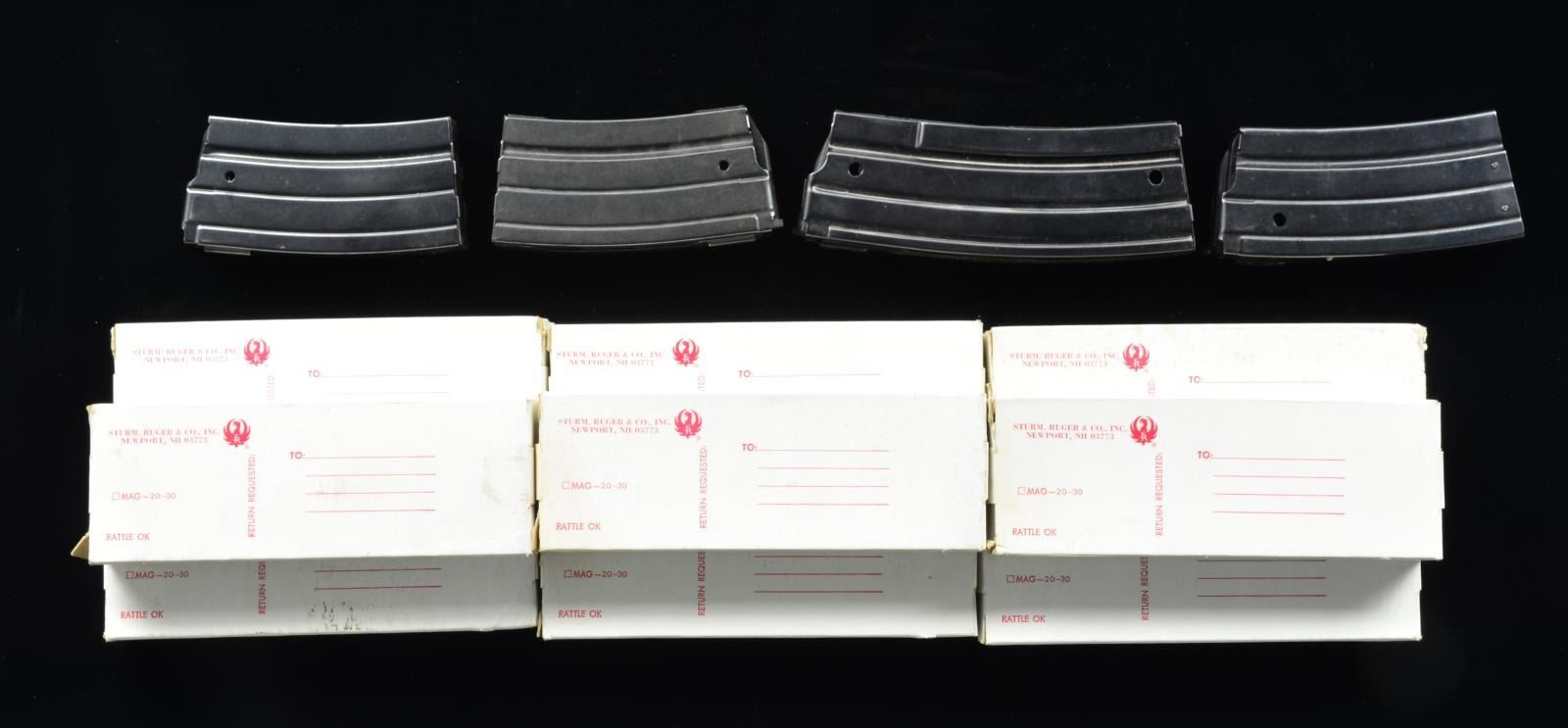 9-30 Rd. mags., Ruger Factory mfg. in factory packaging, along w/ 3 Ruger factory Mini 14 20 rd. mags. & 1-30 rd. mag. of unknown origin. All blued finish. (02-13776-16/JZ). NONGUN. $200-400.