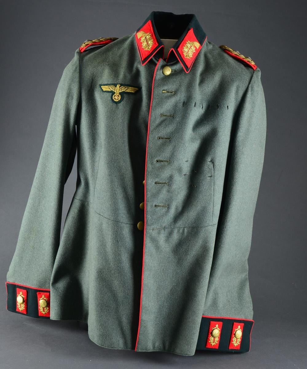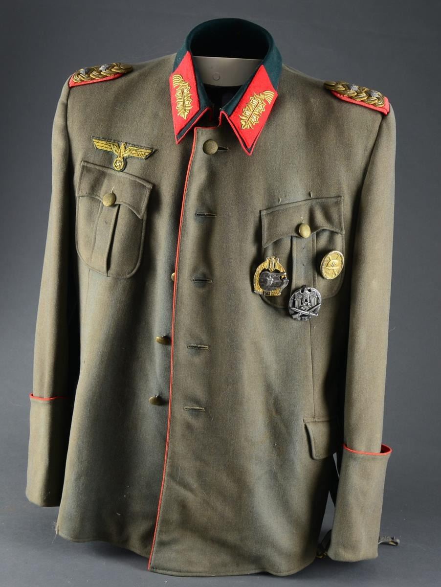 All tunics are for Army generals. 3 Have badges or ribbon bars, most of which are reproduction. All have gold bullion breast eagles, all of which are reproduction. All have correct generals insignia on the shoulders & collars, all of which are reproduction. CONDITION: all tunics show light wear. (02-13525/BF). $500-800.