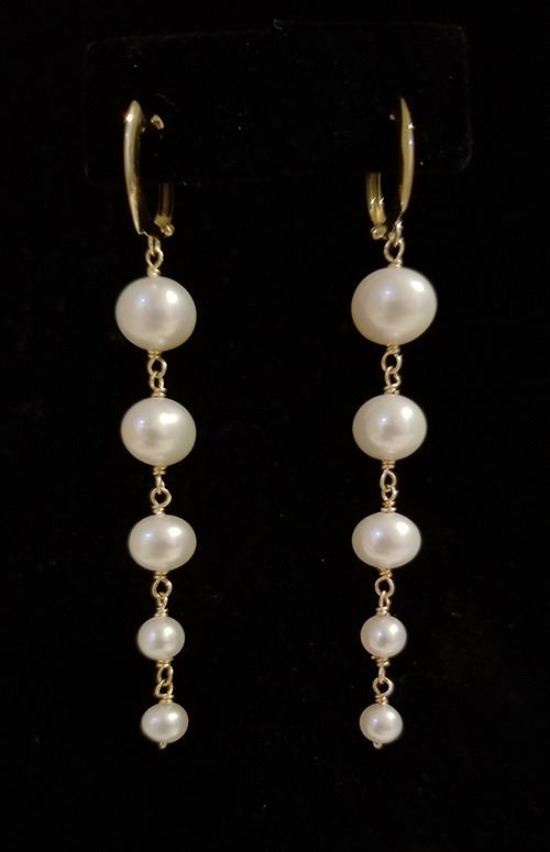 Each earring is set with five cultured freshwater pearls. The pearls graduate in size from approximately 8mm down to 3.5mm. Overall earring length is 2.5". Comes with a doeskin pouch and coordinating box - perfect for gift giving!