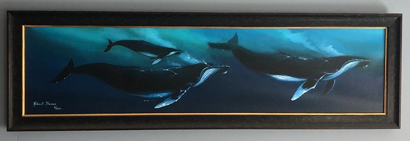 12”x48” Whale Ohana By Master Artist Robert Thomas, (Robert Passed away in 2019). Giclee on canvas Limited Edition with Artist Highlights By Son In Law Artist Ernest Young. Shipped rolled, Ready for stretching and custom framing. Donated by Holt of California