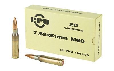 Lot 75 PPU 7.62X51 145GR M80 FMJBT - 20 Rds