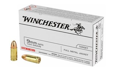 Winchester Ammunition, USA, 9MM, 124 Grain, Full Metal Jacket, 50 Round Box