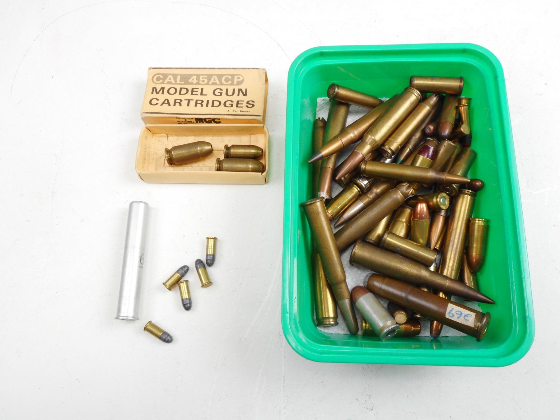 APPROX 51 RNDS, INCLUDING 7.92 BRONZE BULLET BLACK TIP WWII, .22 ELEY TRACER