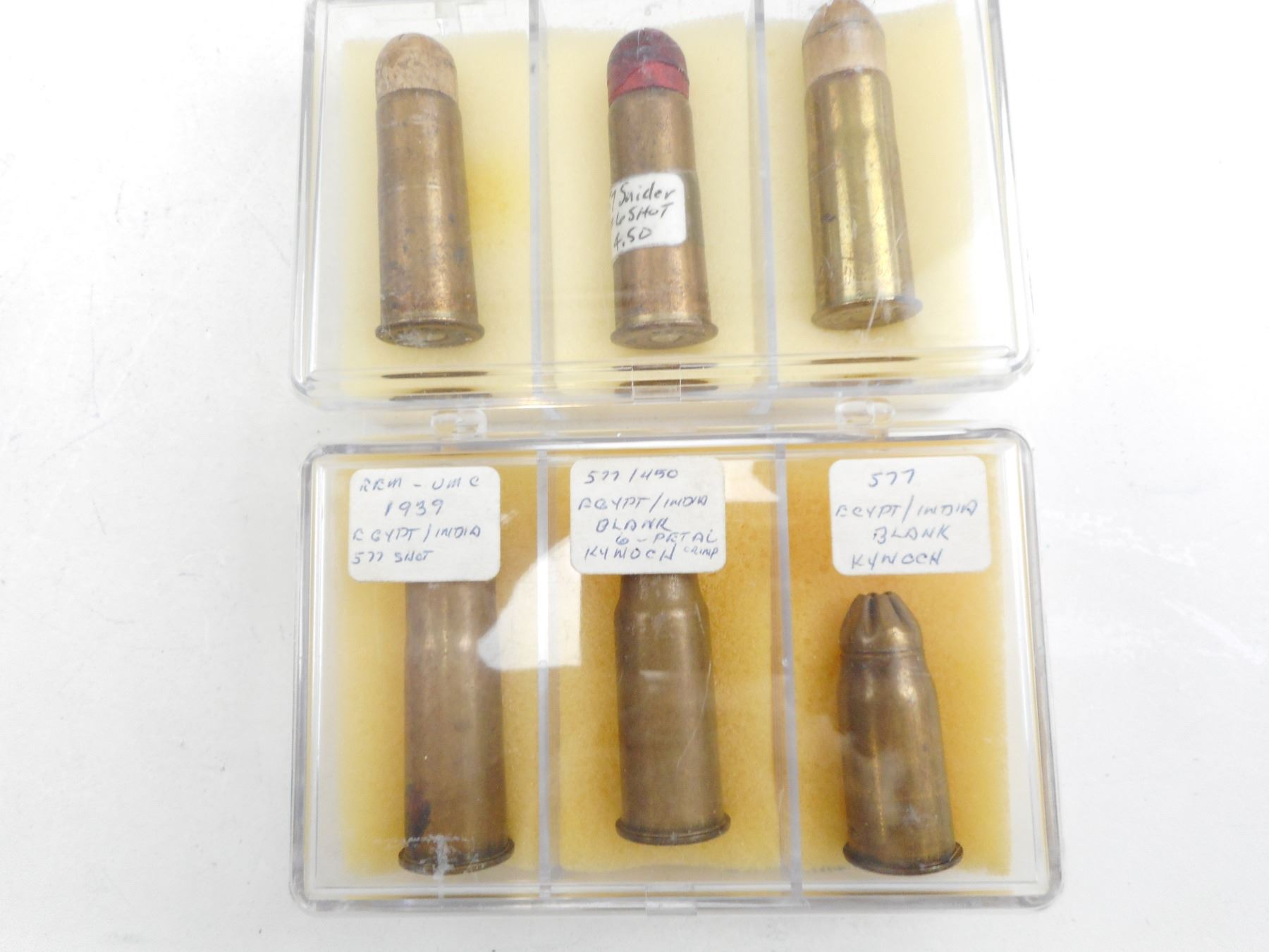 6 RNDS, INCLUDING 57 SNIDER #6 SHOT, .577 1939 EGYPT/INDIA, KYNICH BLANKS