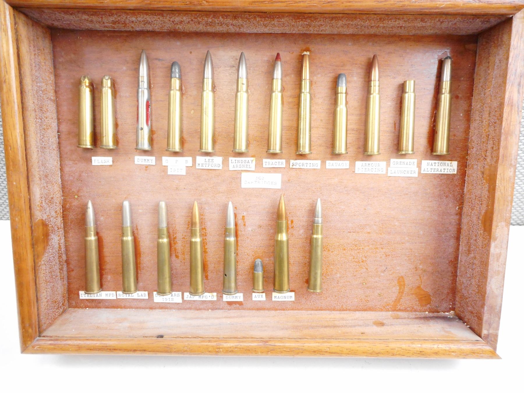 20 RNDS, INCLUDING BLANKS, DUMMY RND, GPB 1917, LEE METFORD, LINDSAY ARSNEL, TRACER, SPORTING, SAVAGE, ARMOUR POERCONG, GRENADE LAUNCHER, DOM ARS 1912, ITALIAN, JAPANESE