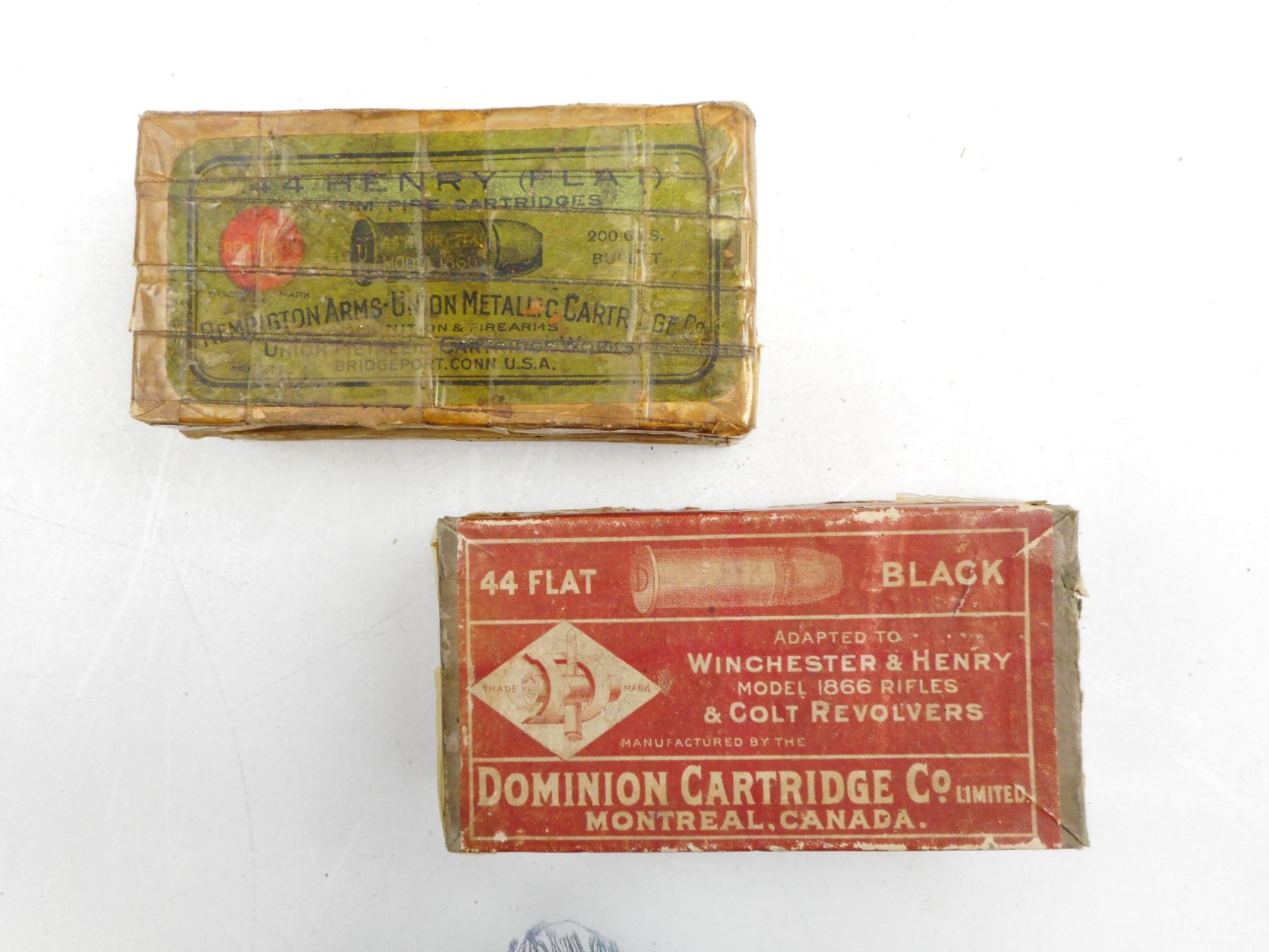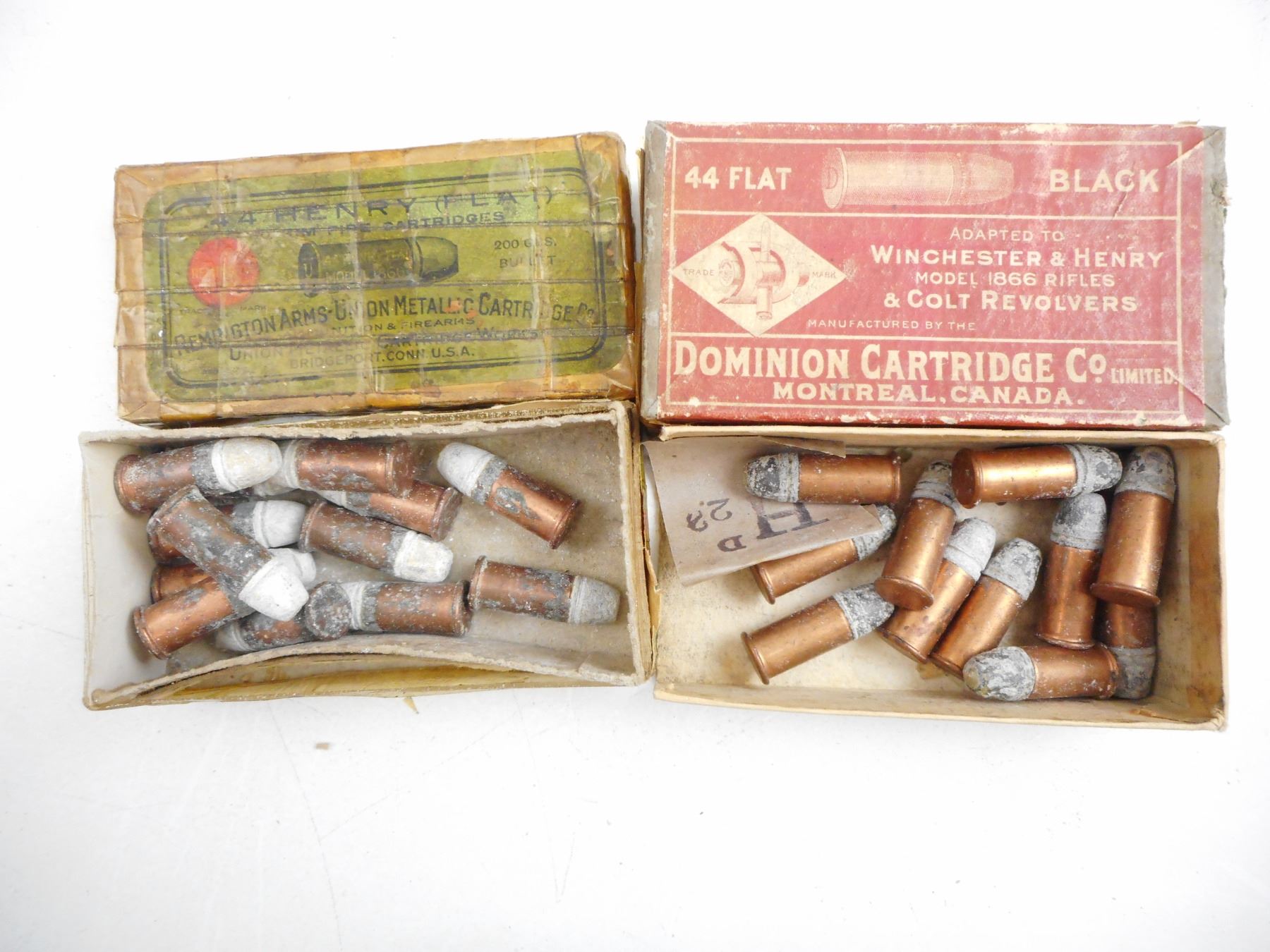 Lot 10161 .44 HENRY REM AMMO, .44 FLAT DOMINION AMMO, IN DAMAGED COLLECTABLE BOXES