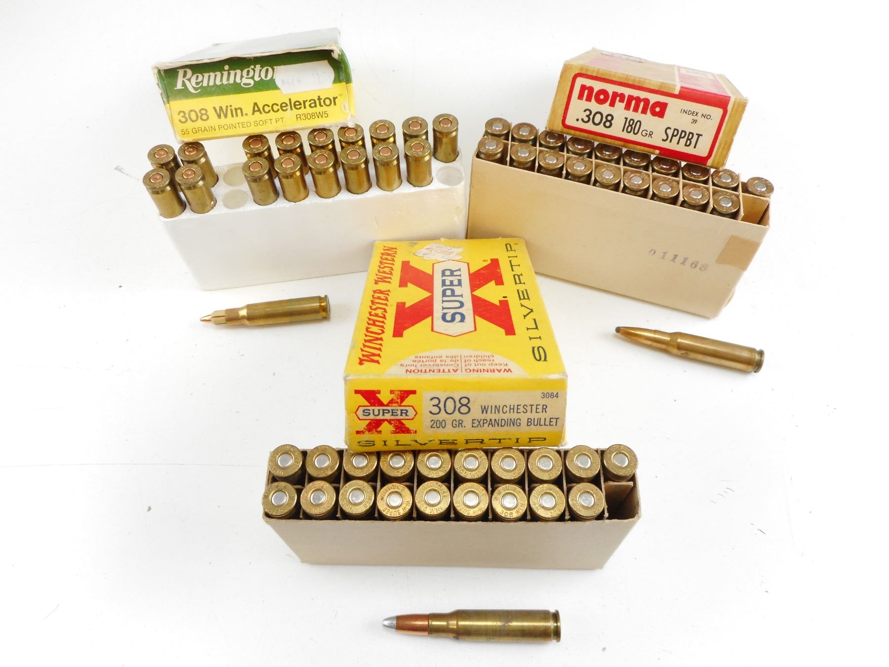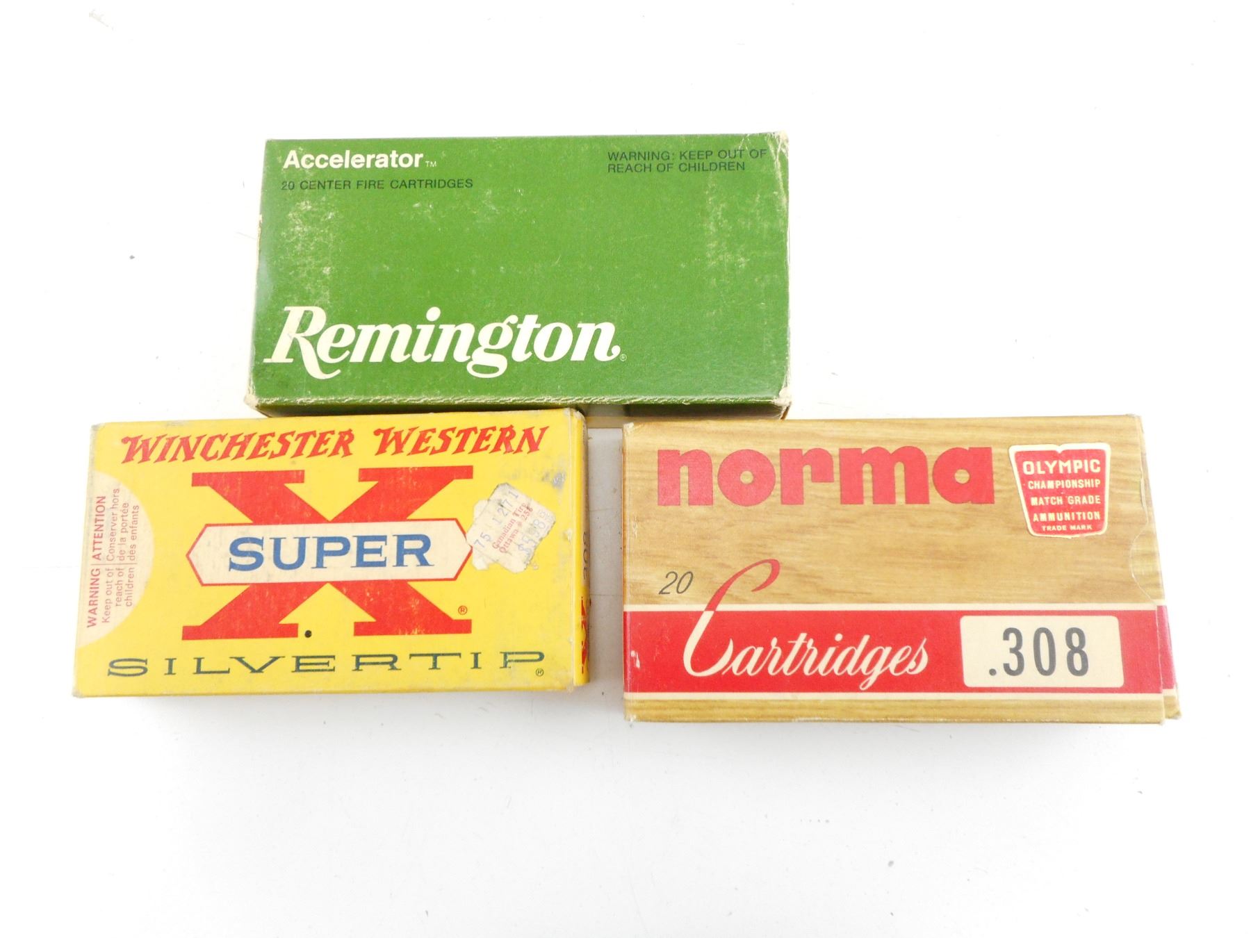 56 RNDS, 4 BRASS CASES, REMINGTON, NORMA, WINCHESTER