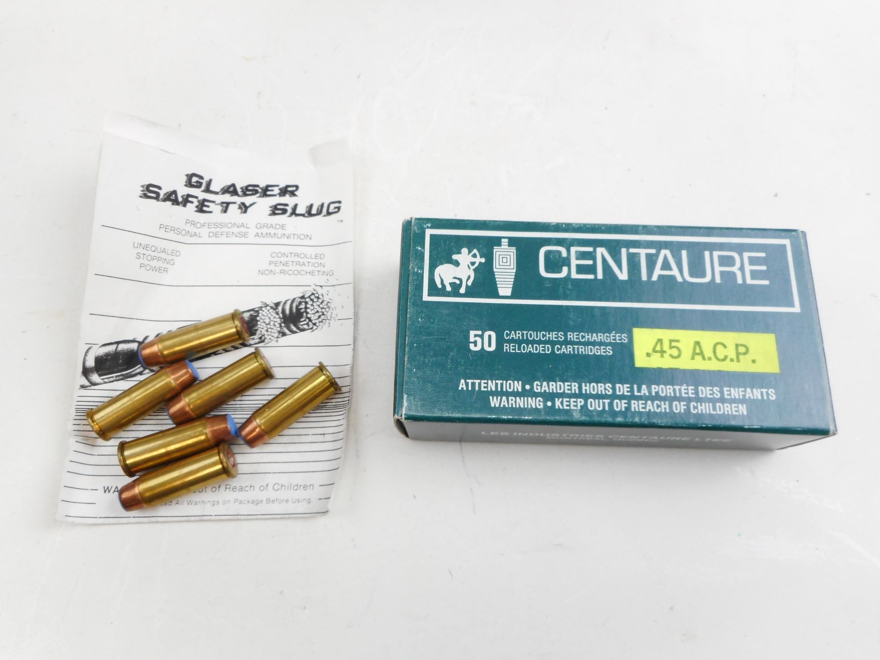 Lot 11406 .44 SPECIAL, GLASER SAFETY SLUG, .45 ACP CENTAURE FACTORY RELOADED AMMO