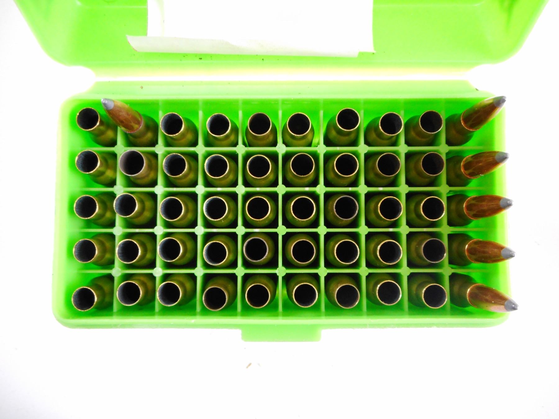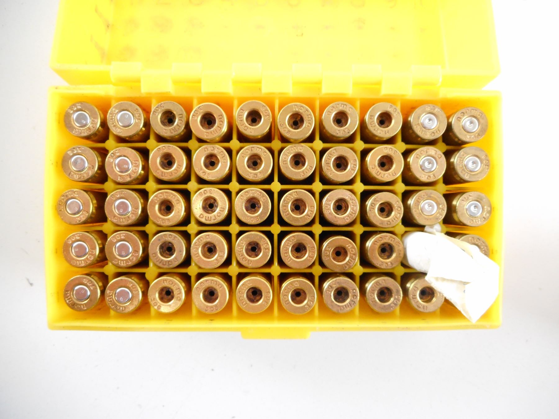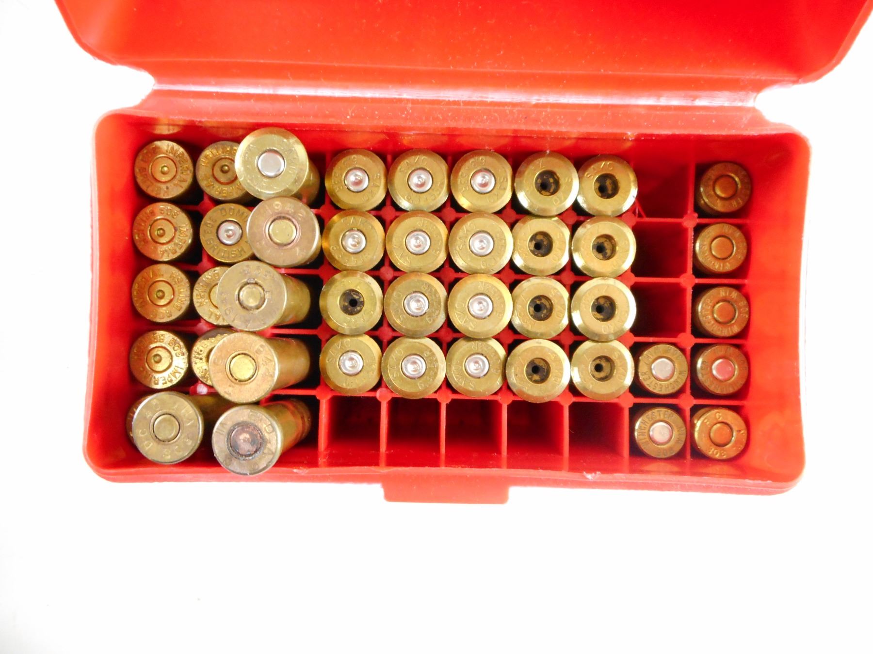 88 RNDS INCLUDING .308 WIN, 38-55, SOME BRASS CASES, 10 PRIMED BRASS CASES, MAY CONTAIN SOME FACTORY AMMO , THIS IS NON FACTORY RELOADS. IT IS BEING SOLD AS COMPONENTS ONLY. USE OTHER THAN DESCRIBED IS COMPLETELY AT YOUR RISK.