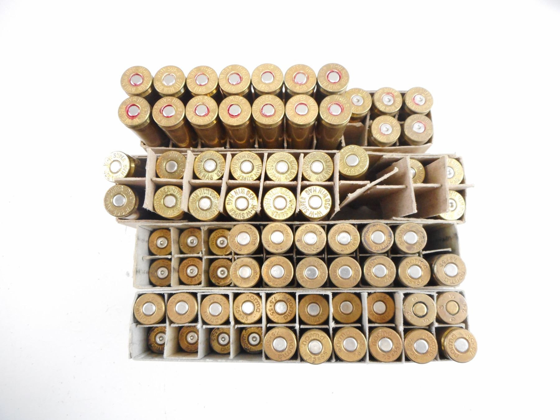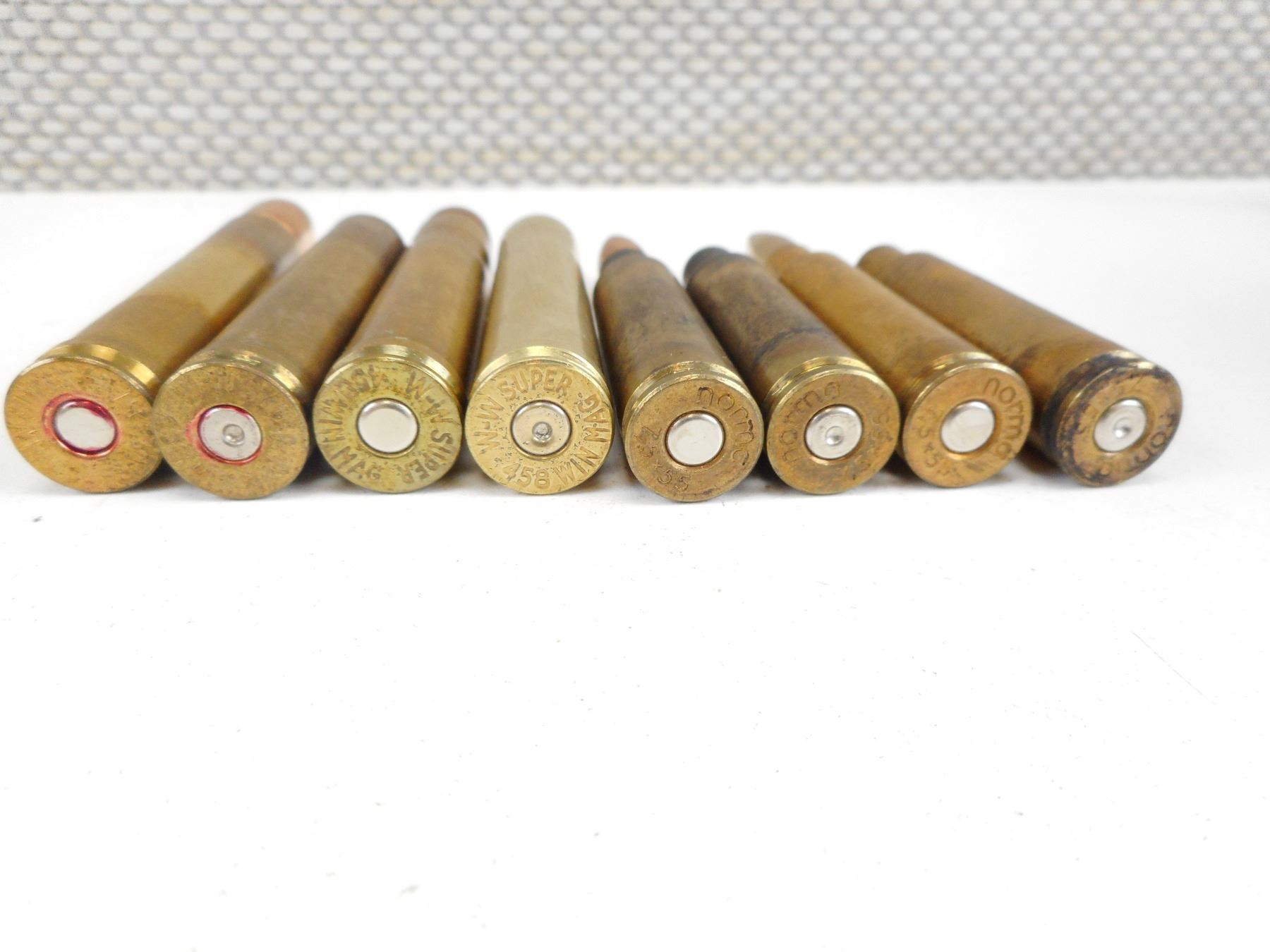 56 RNDS, INCLUDES.458 WIN7.5X55 NORMA, SOME BRASS CASES , THIS IS NON FACTORY RELOADS. IT IS BEING SOLD AS COMPONENTS ONLY. USE OTHER THAN DESCRIBED IS COMPLETELY AT YOUR RISK.