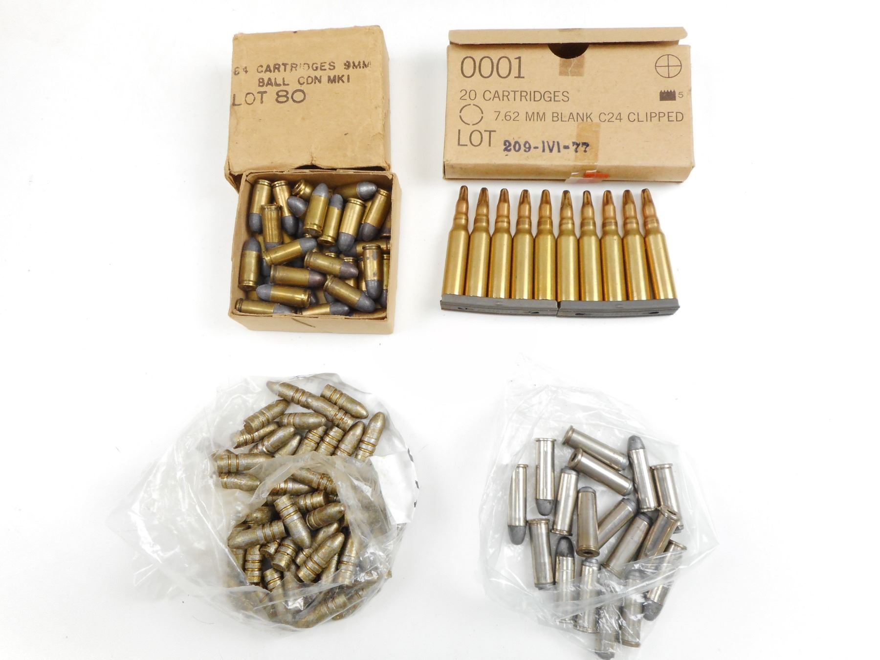 36 RNDS RELOADED AMMO, 10 RNDS 7.62 BLANKSON STRIPPER CLIPS, 17 RNDS 38 SPECIAL DUMMY RNDS, 1.6 LBS .325"DIA BULLETS , THIS IS NON FACTORY RELOADS. IT IS BEING SOLD AS COMPONENTS ONLY. USE OTHER THAN DESCRIBED IS COMPLETELY AT YOUR RISK.