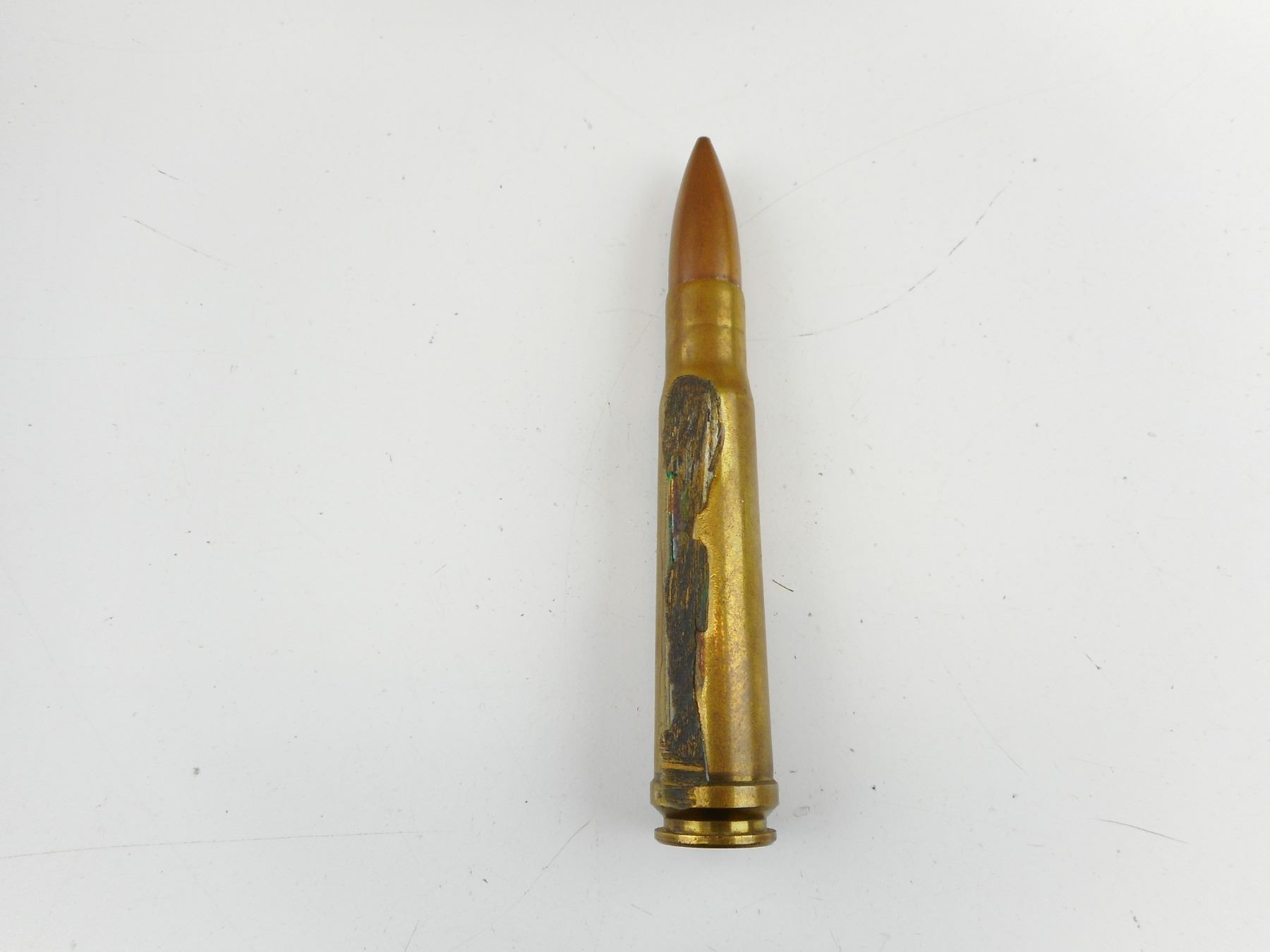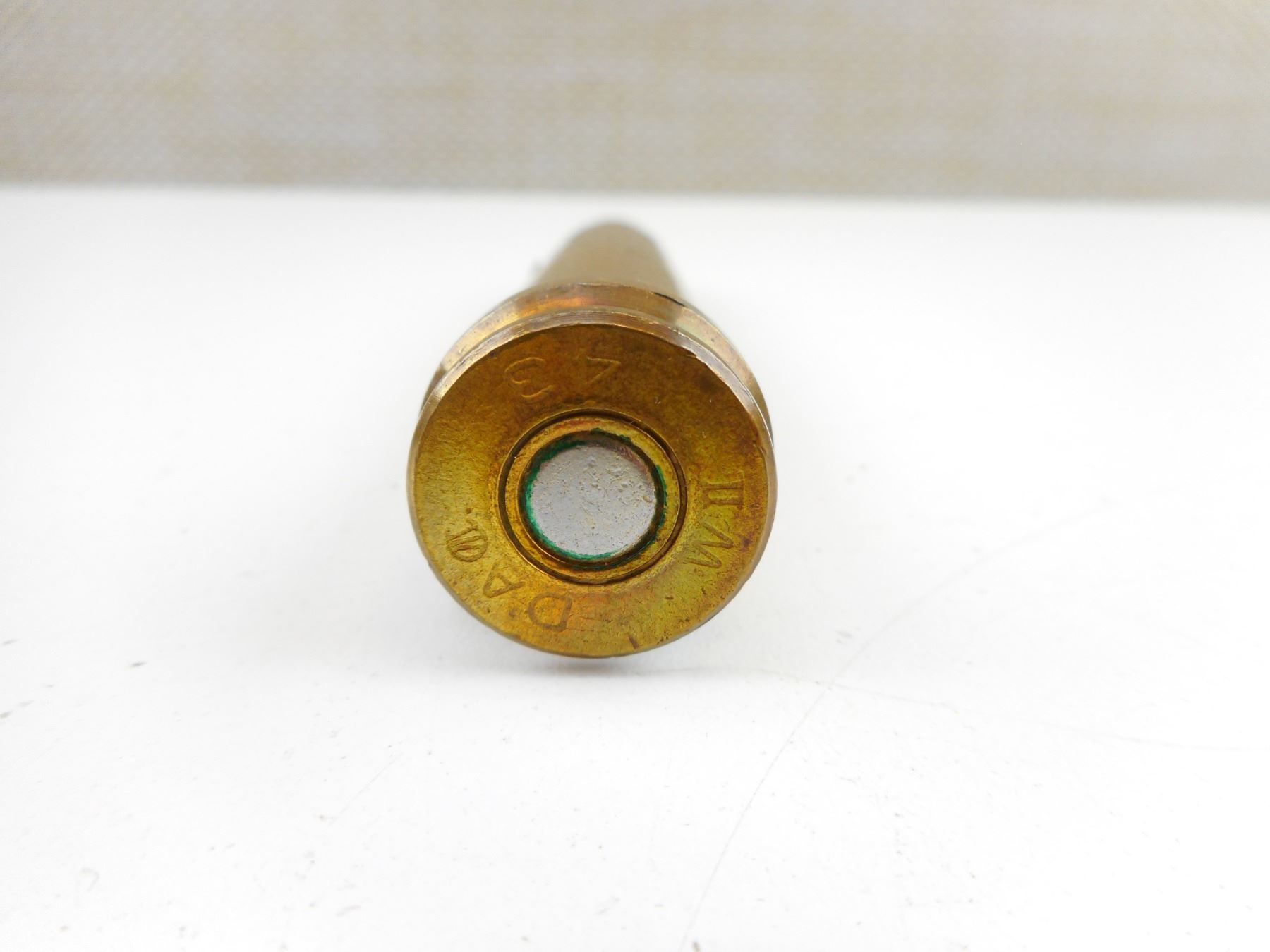 1 RND, MARKED DAC, 43, WWII "ARMOR PIERCING", C BROAD ARROW, HAS GLUE ON CASTIN FROM DISPLAY MOUNT