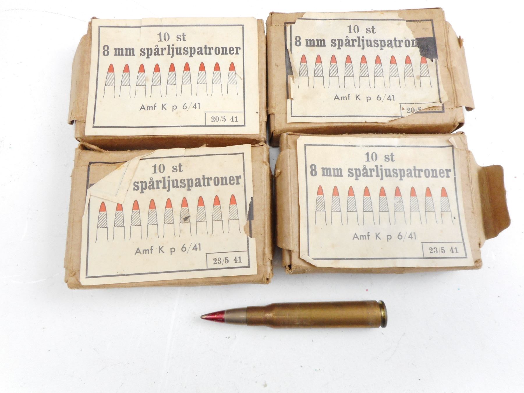 Lot 12175 WWII SWEDISH 8X63 AMMO, DATED 1941, TRACER AMMO, 10 RND PER BOX