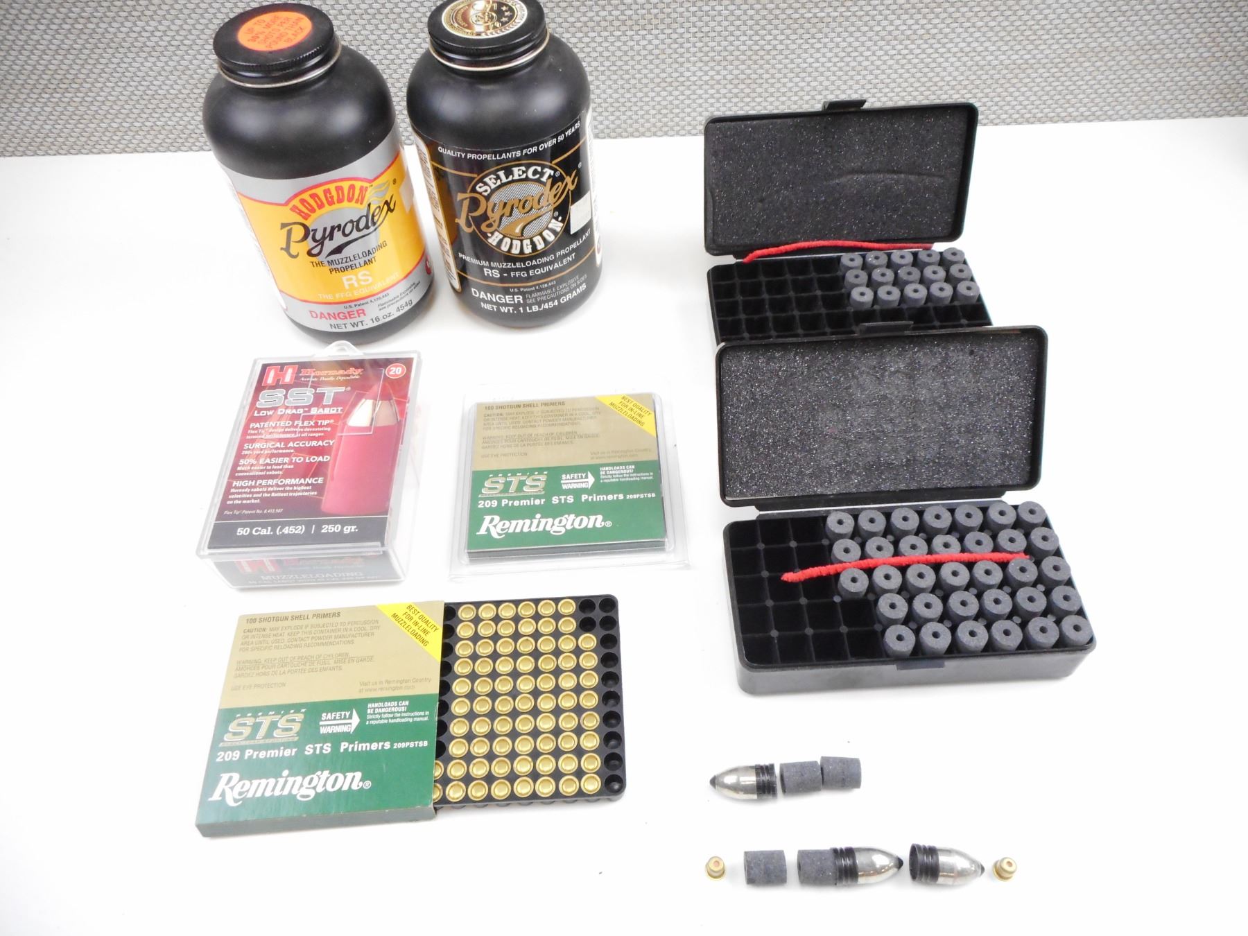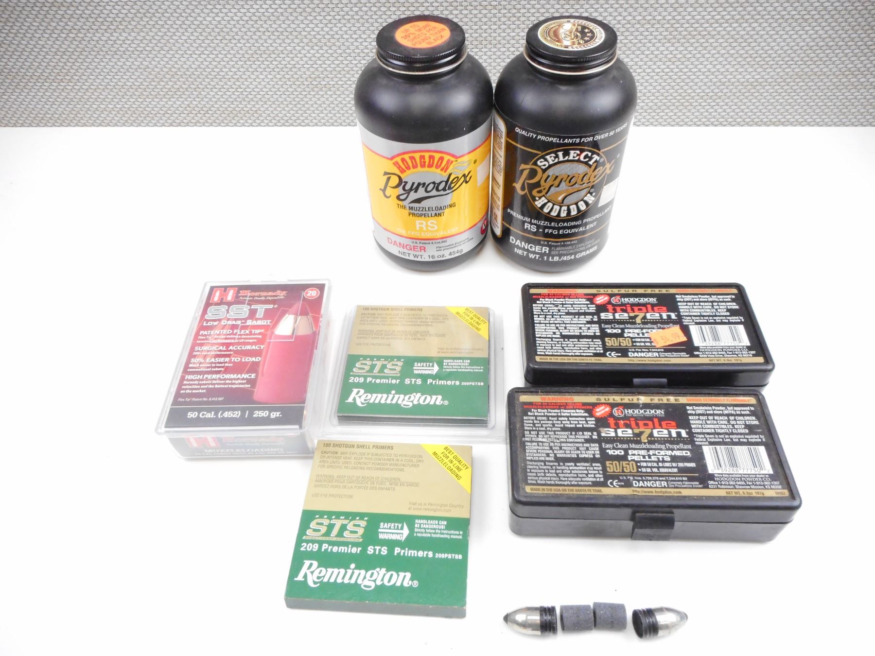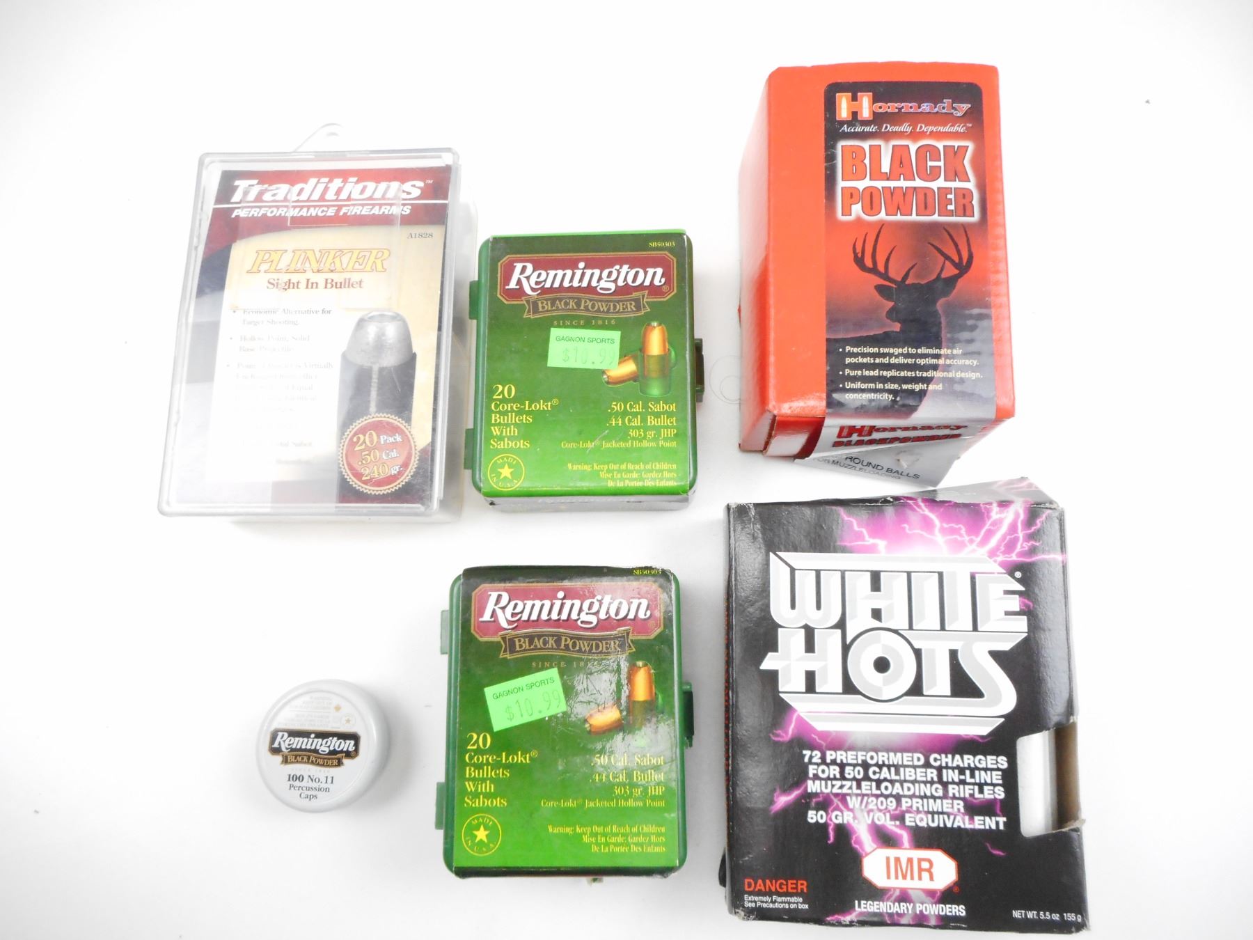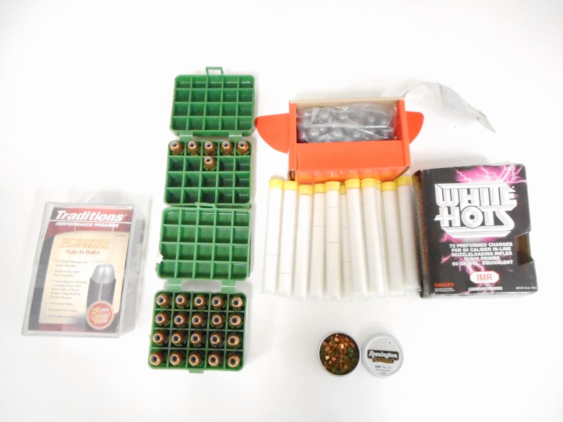Lot 12806 WHITE HOTS MUZZLELOADING, BULLETS AND SABOTS, PERCUSSION CAPS