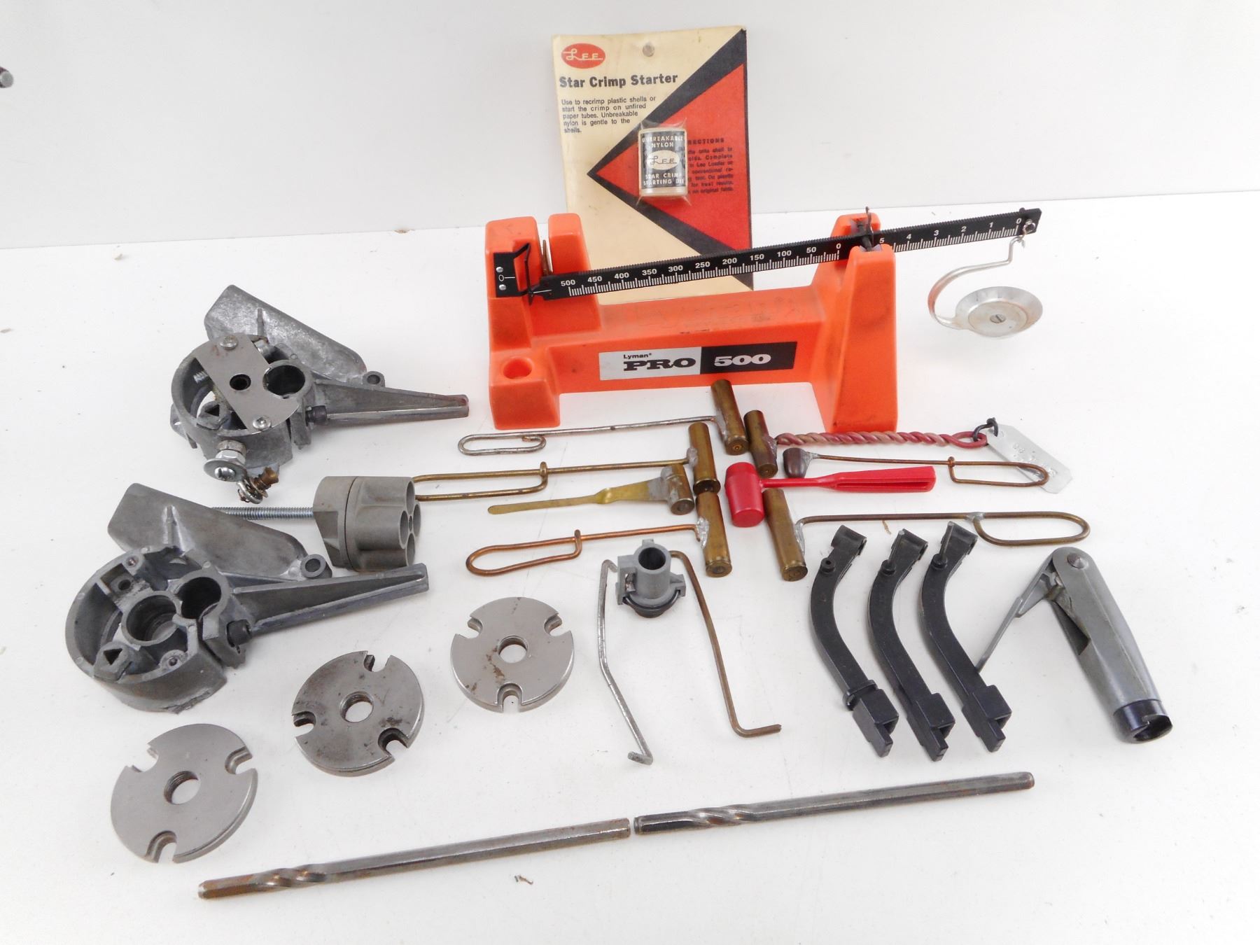 LEE 1000, CASE FEED, BASES, PRIMER FEED PARTS, SHELL PLATES #1 & 3, LYMAN PRO 500 SCALE, LEE HAND PRIME 30-30/38-55 ETC