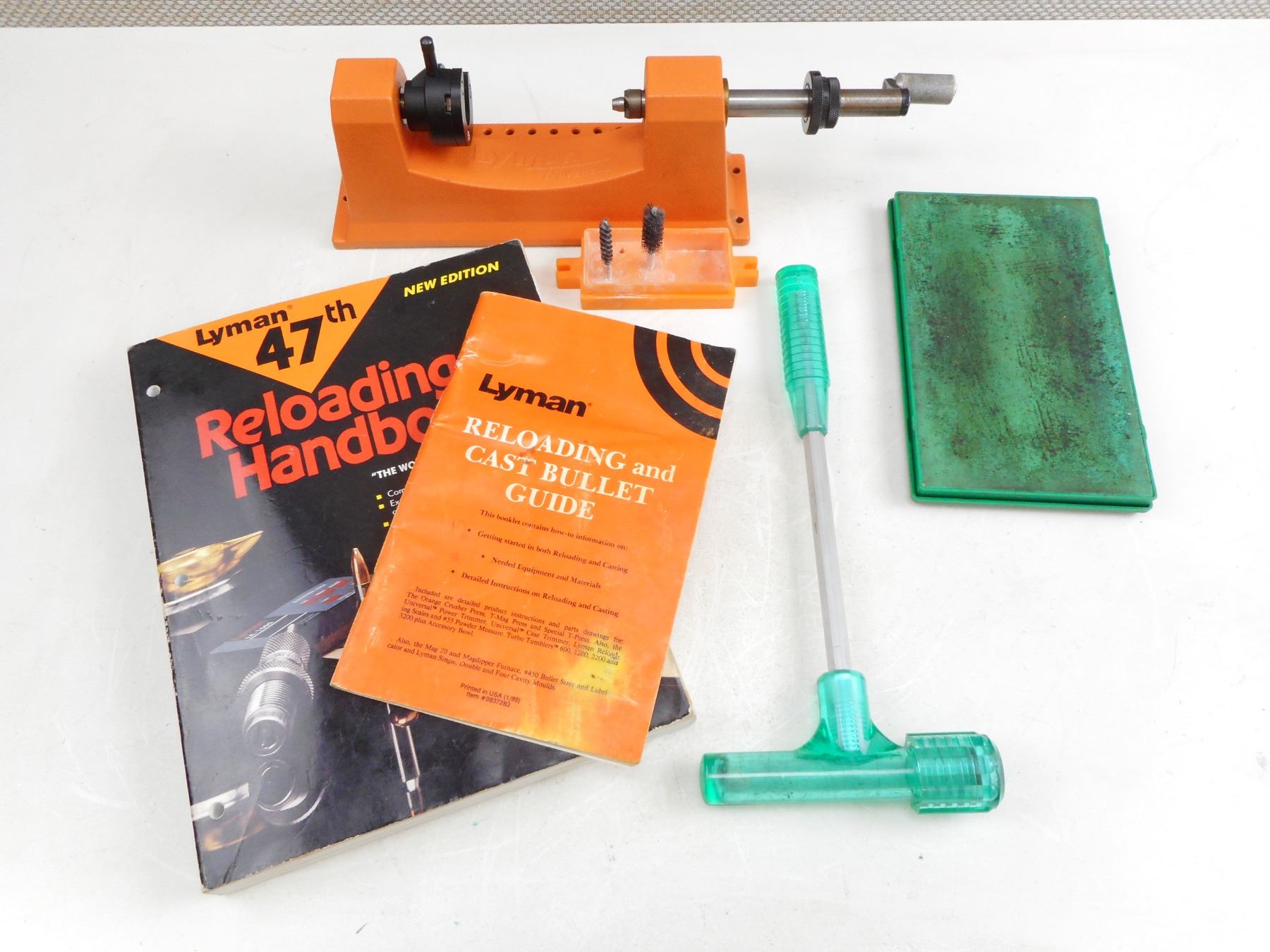 Lot 16192 ASSORTED RELOADING LOT INCLUDING, CASE TRIMMER, BULLET PULLER, CASE LUBE PAD, RELOADING BOOK