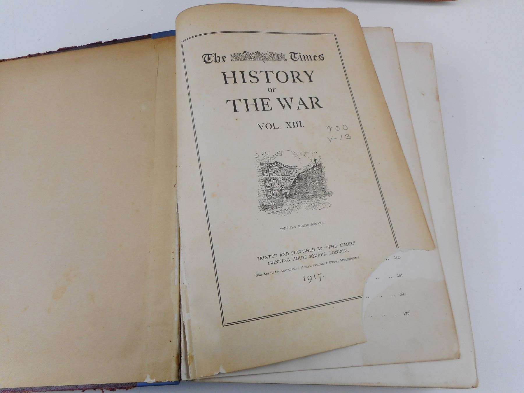 ASSORTED WARTIME BOOKS , (1) HISTORY OF THE WAR, VOLUME 13, FRAGILE STATE, THE 1785 TIMES. (1) CANADA IN FLANDERS BY SIR MAX AITKEN. LOT OF 2