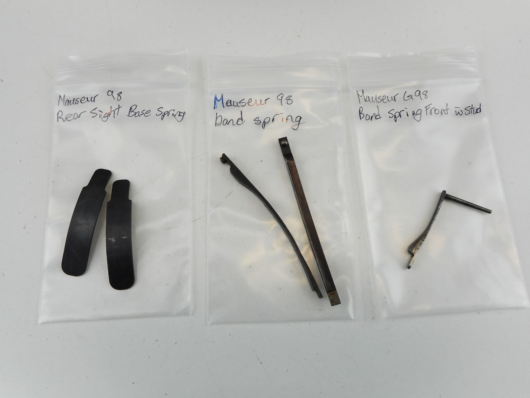 MAUSER K98 PARTS , INCLUDES: (2) REAR SIGHT SPRINGS, BAND SPRING, (2) 1 PIECE BAND SPRING. SEE PHOTO