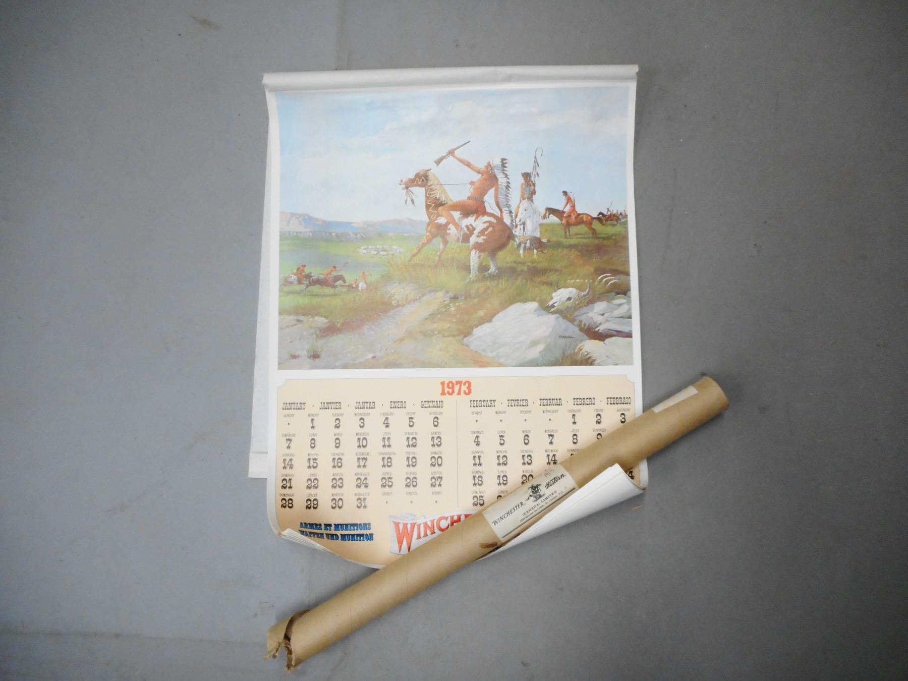 WINCHESTER CALENDAR , YEAR 1973, GOOD CONDITION, COMES IN CARDBOARD TUBE PACKAGE.