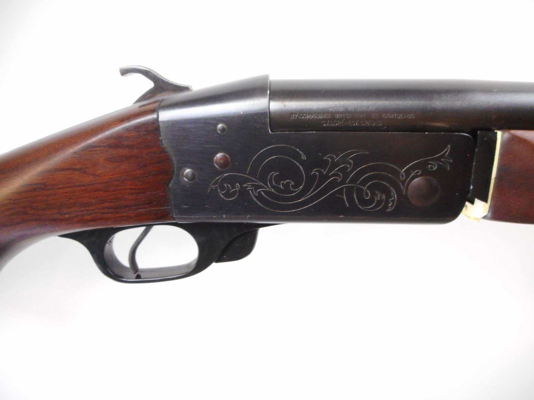 CIL , MODEL: 402 , CALIBER: 12 GA X 2 3/4" , FULL CHOKE. BORE IS EXCELLENT. BRASS BEAD. BLUED FINISH. TWO PIECE SMOOTH WOOD STOCKS. PITSOL GRIP. RED VENTED RUBBER RECOIL PAD. FOREARM SPACER BROKEN. BLUEING SHOWS HANDLING MARKS AND WEAR. STOCK SHOWS HANDLING MARKS AND WEAR. , ACTION: HINGE SINGLE SHOT SHOTGUN , BARREL LENGTH: 30" , SERIAL# 185308 , CONDITION:6/10 , CLASS: CANADIAN NON RESTRICTED CLASS