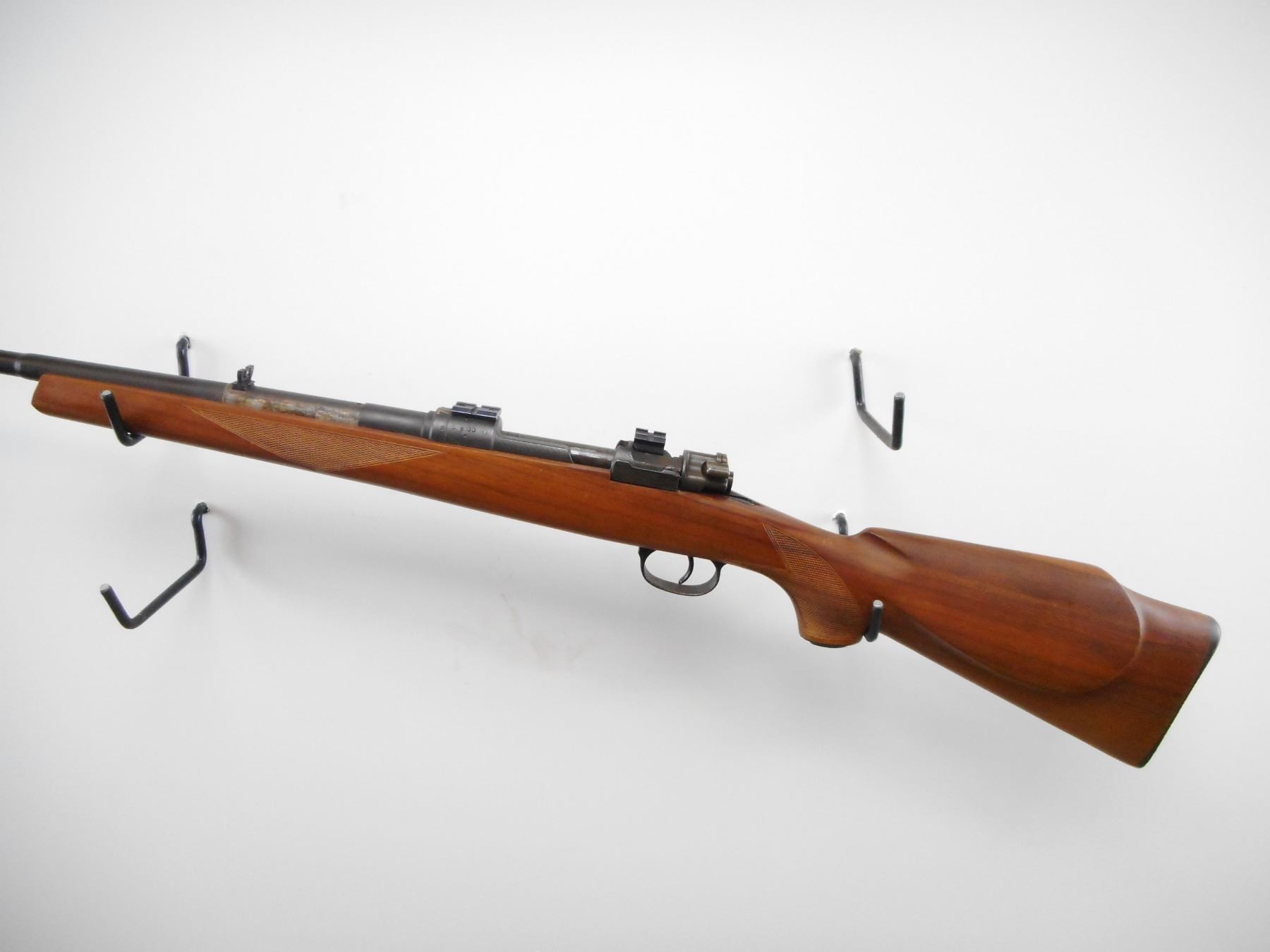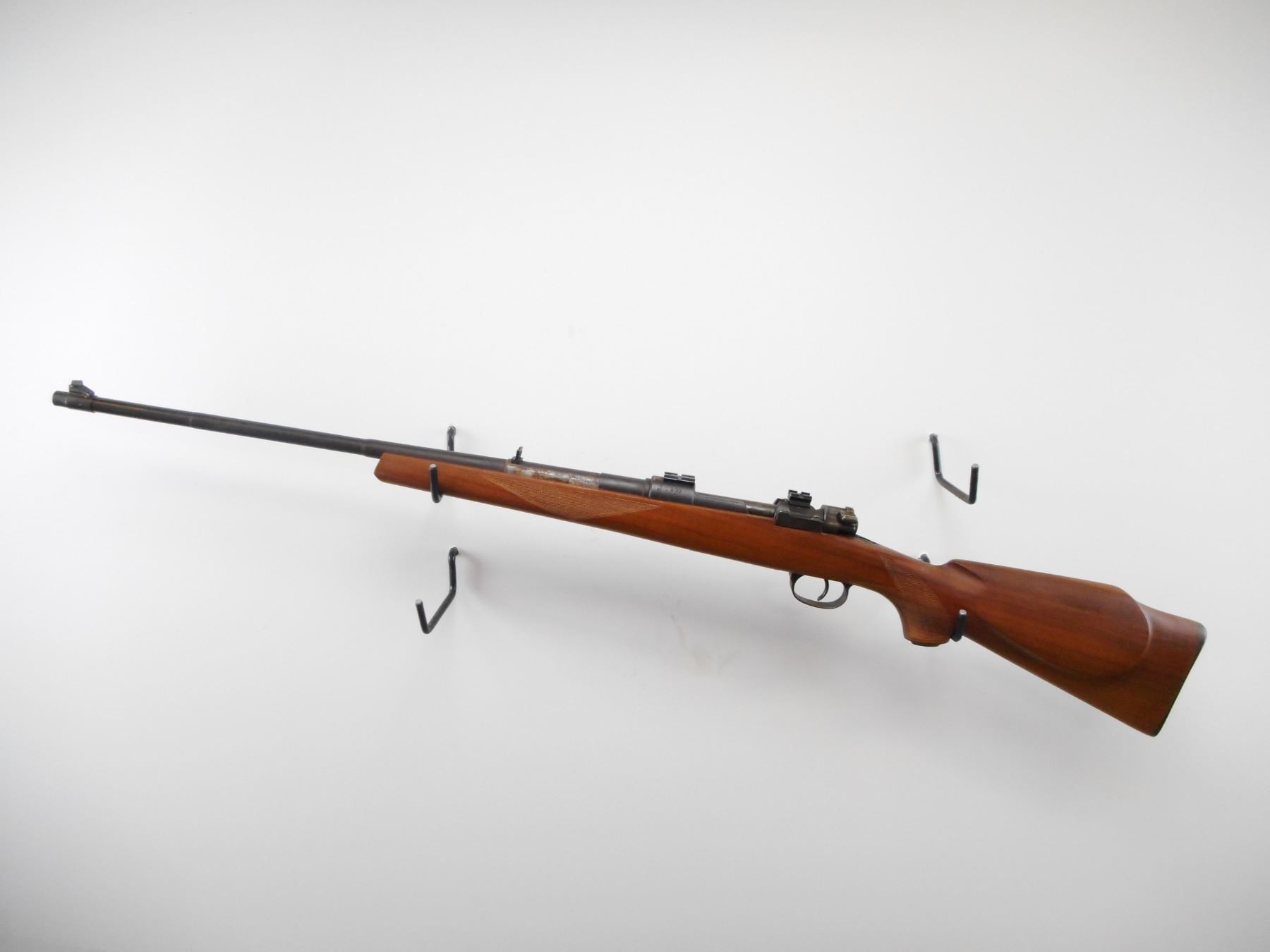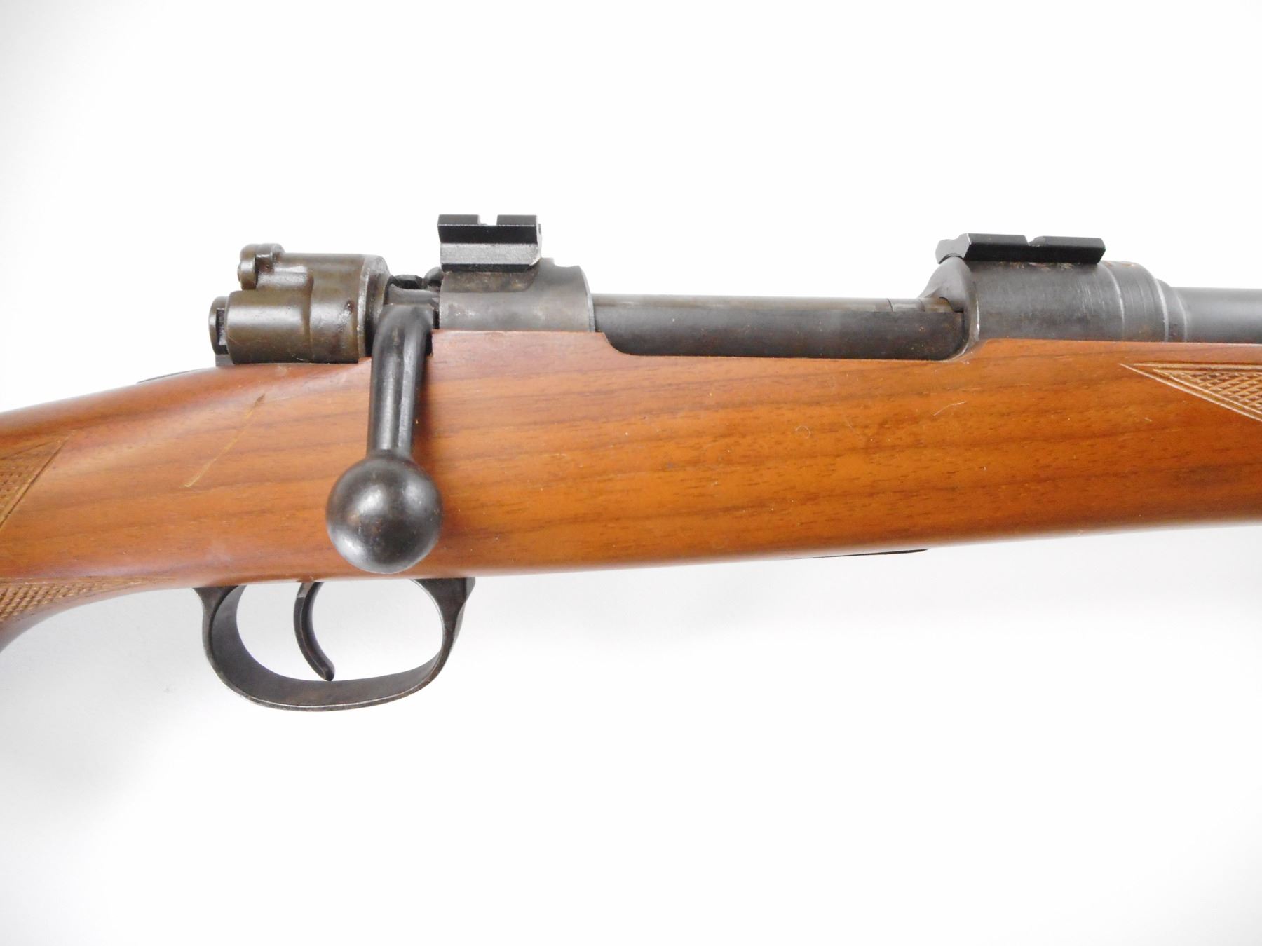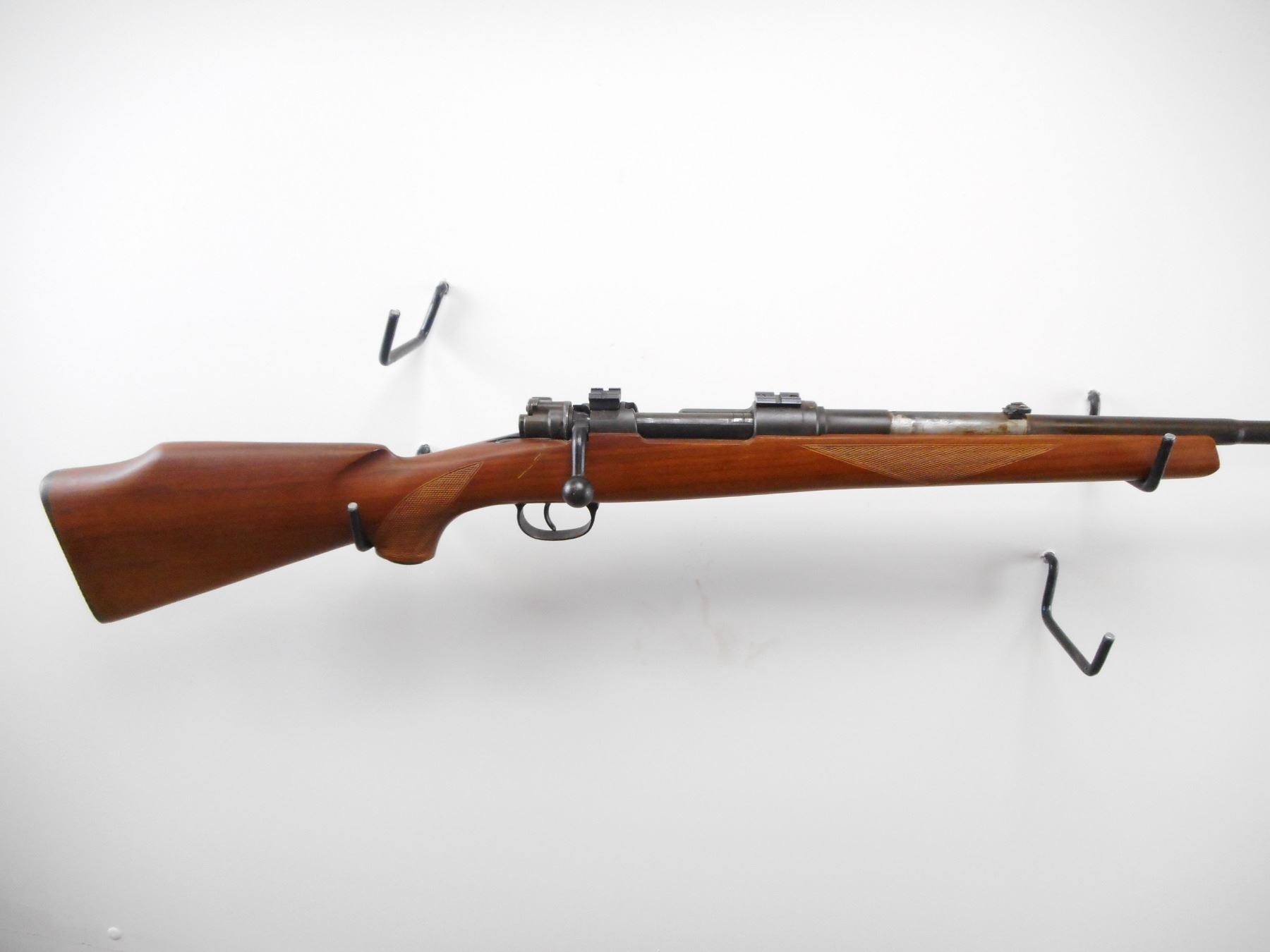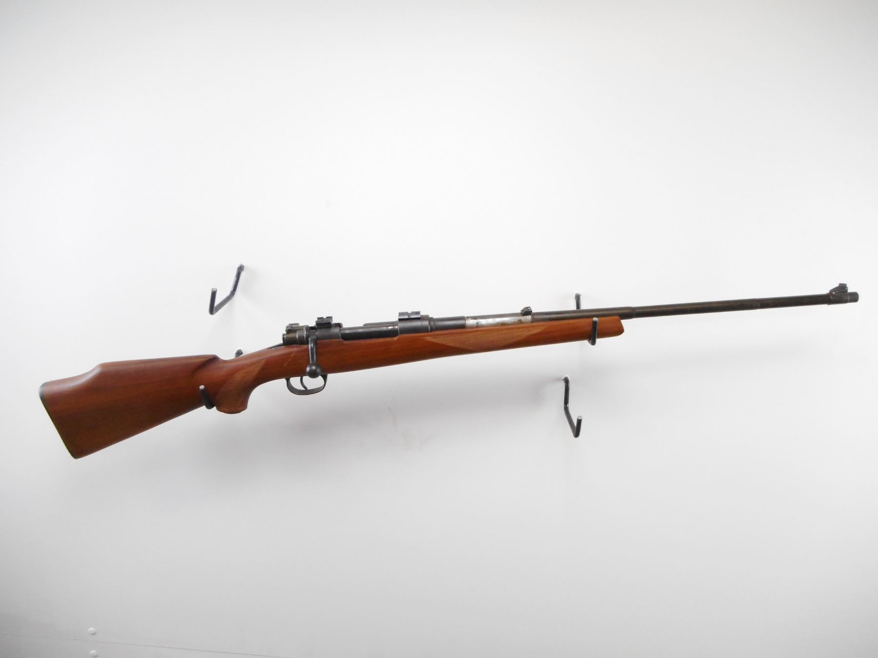 CZ MAUSER , MODEL: 98 SPORTER , CALIBER: 7.62 NATO , BORE IS GOOD. BLADE FRONT SIGHT WITH RAMP. FOLDING U NOTCH REAR SIGHT. RECEIVER DRILLED AND TAPPED WITH WEAVER BASES. ONE PIECE WOOD STOCK. CHECKERED FOREARM AND PISTOL GRIP. CHEEK REST. CHECKERED BLACK POLYMER BUTT PLATE. GRIP CAP. METAL SHOWS HANDLING MARKS AND WEAR. STOCK SHOWS HANDLING MARKS AND WERA. , ACTION: BOLT ACTION RIFLE , BARREL LENGTH: 23 1/2" , SERIAL# 5800 , CONDITION:6/10 , CLASS: CANADIAN NON RESTRICTED CLASS