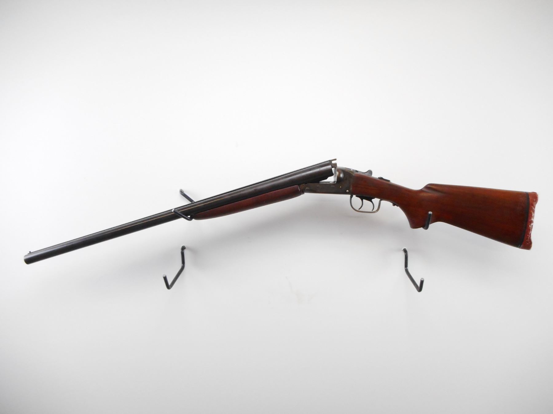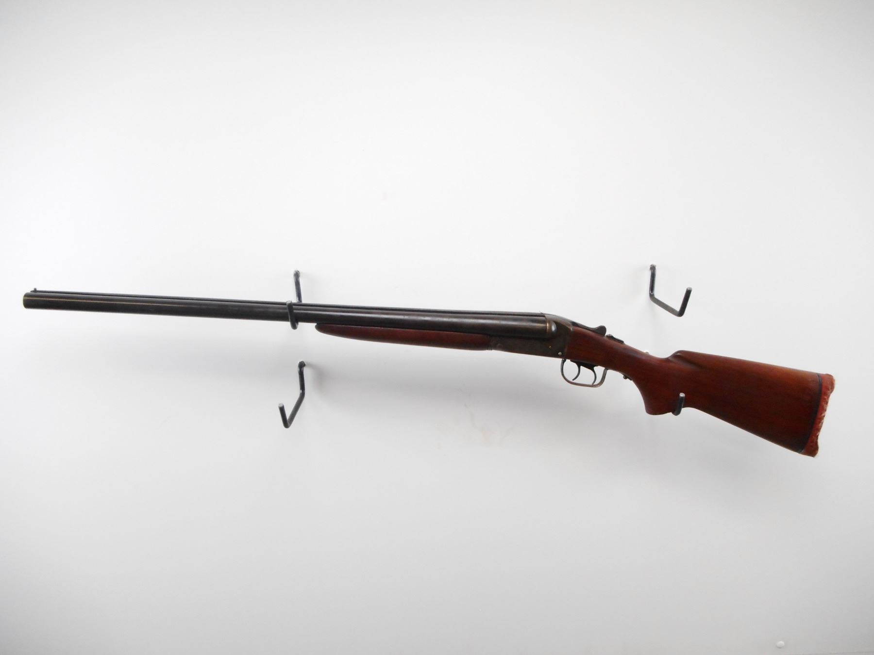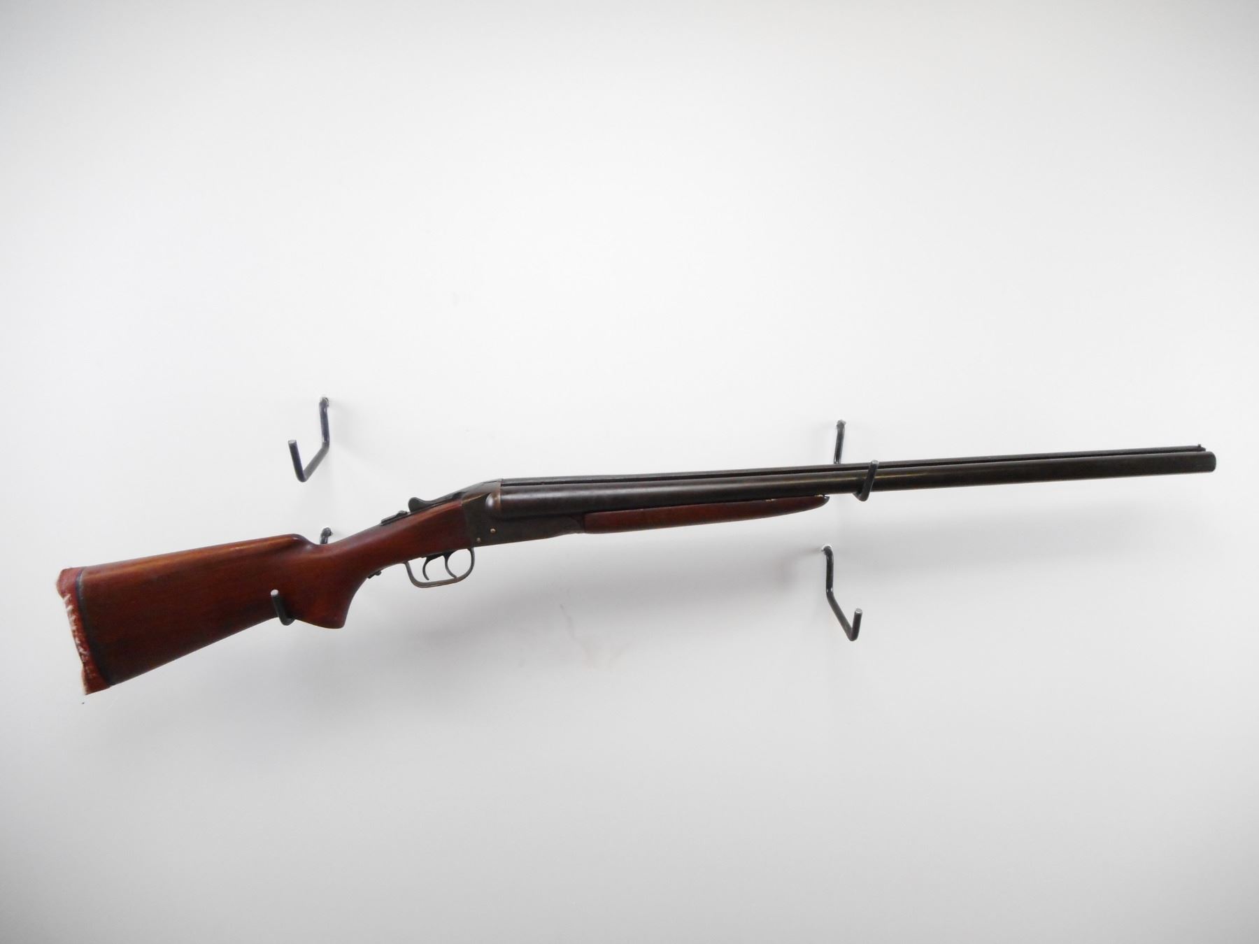 STEVENS , MODEL: 5100 , CALIBER: 12 GA X 2 3/4" , I/C AND I/M CHOKE. BORES ARE VERY GOOD. BRASS BEAD. SMOOTH TWO PIECE WOOD STOCKS. DEFORMED RED RUBBER RECOIL PAD. STOCK CRACKED BESIDE RECEIVER. METAL FINISH SHOWS WEAR AND HANDLING MARKS. STOCK SHOWS HANDLING MARKS. , ACTION: HINGE SXS SHOTGUN , BARREL LENGTH: 25 1/2" , SERIAL# N/A , CONDITION:5/10 , CLASS: CANADIAN NON RESTRICTED CLASS
