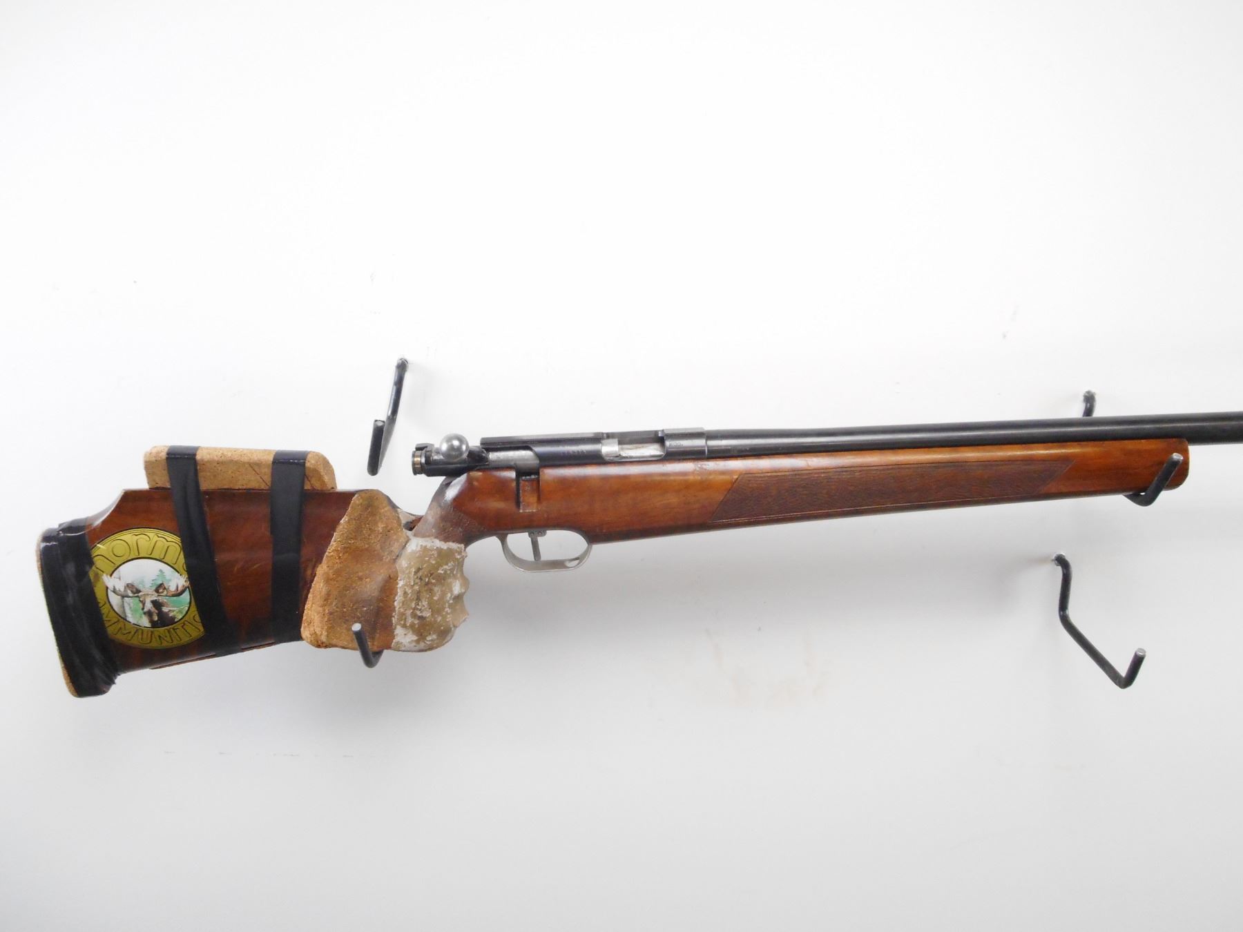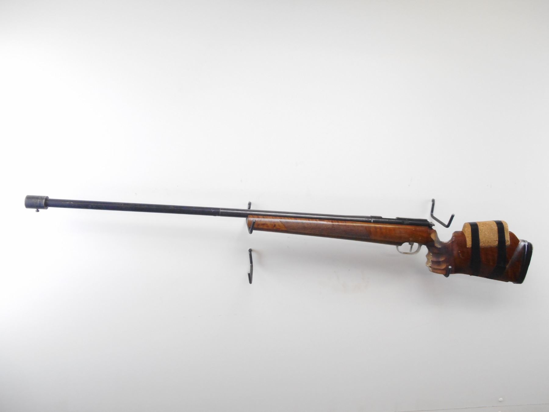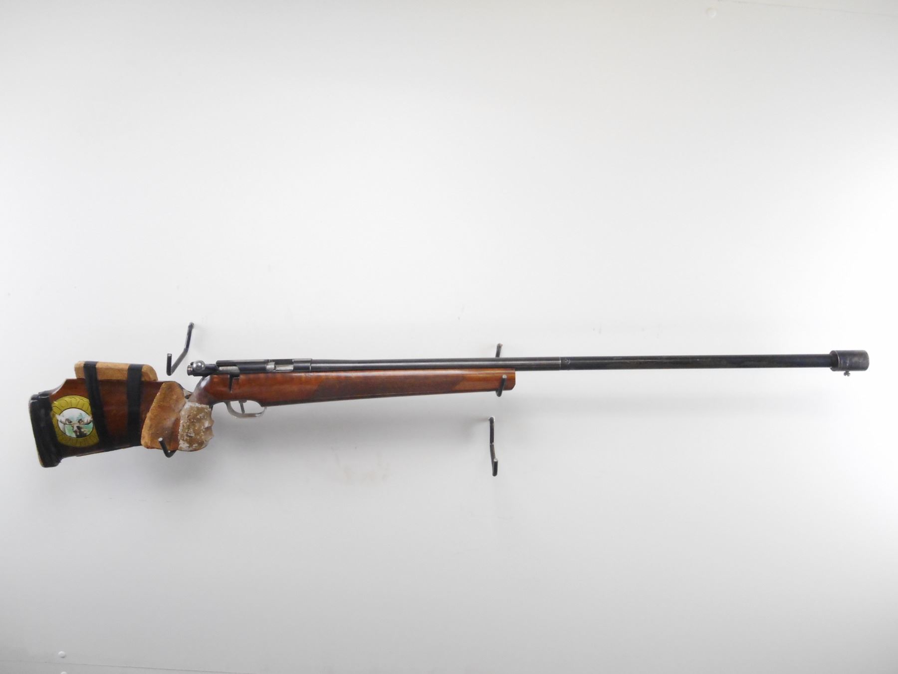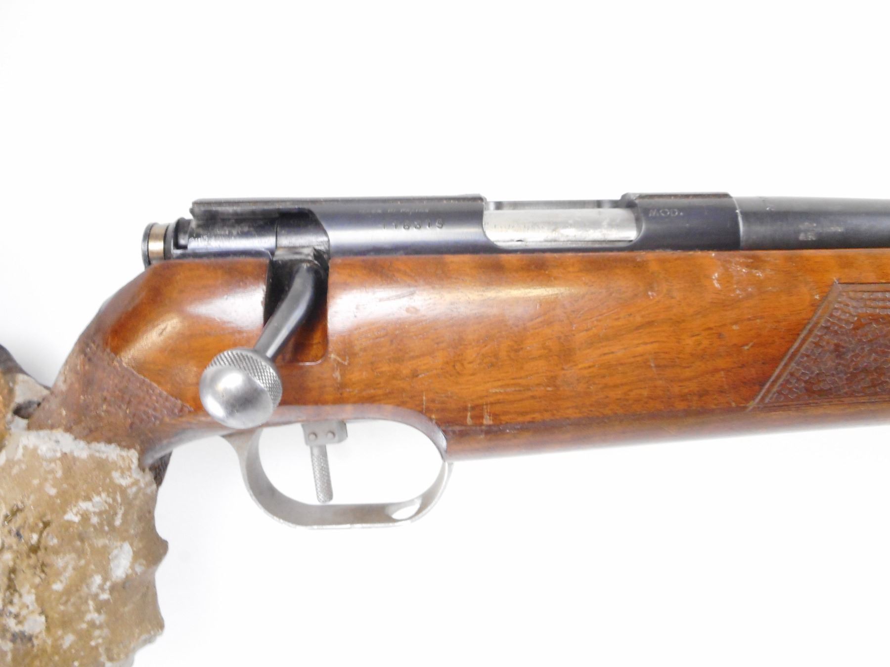 UNIQUE , MODEL: 66 MATCH , CALIBER: 22 LR , BORE IS FAIR. HAS STEEL BARREL EXTENSION WELDED ON. RECEIVER GROOVED FOR SCOPE MOUNT, MODIFIED. ONE PIECE WOOD STOCK. WITH VARIOUS WOOD AND PUTTY ADD ONS. BLUEING SHOWS HANDLING MARKS AND WEAR. STOCK SHOWS NUMEROUS HANDLING MARKS , ACTION: BOLT ACTION RIFLE , BARREL LENGTH: 18" , SERIAL# 116315 , CONDITION:3/10 , CLASS: CANADIAN NON RESTRICTED CLASS
