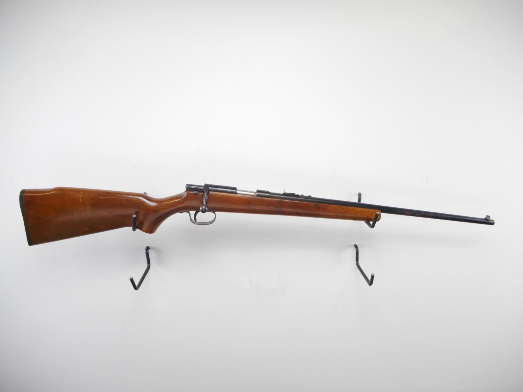 NORTH AMERICAN ARMS , MODEL: GRIZZLY NUMBER 10 , CALIBER: 22 LR , BORE IS VERY GOOD. BLADE FRONT SIGHT. U NOTCH ADJUSTBLE REAR SIGHT. GROOVED RECEIVER. SMOOTH ONE PIECE WOOD STOCK. GROOVED BLACK POLYMER BUTT PLATE. BLUEING SHOWS HANDLING MARKS AND WEAR. LIGHT RUST. STOCK SHOWS HANDLING MARKS AND DINGS. , ACTION: BOLT ACTION RIFLE , BARREL LENGTH: 22" , SERIAL# 1001177 , CONDITION:6/10 , CLASS: CANADIAN NON RESTRICTED CLASS