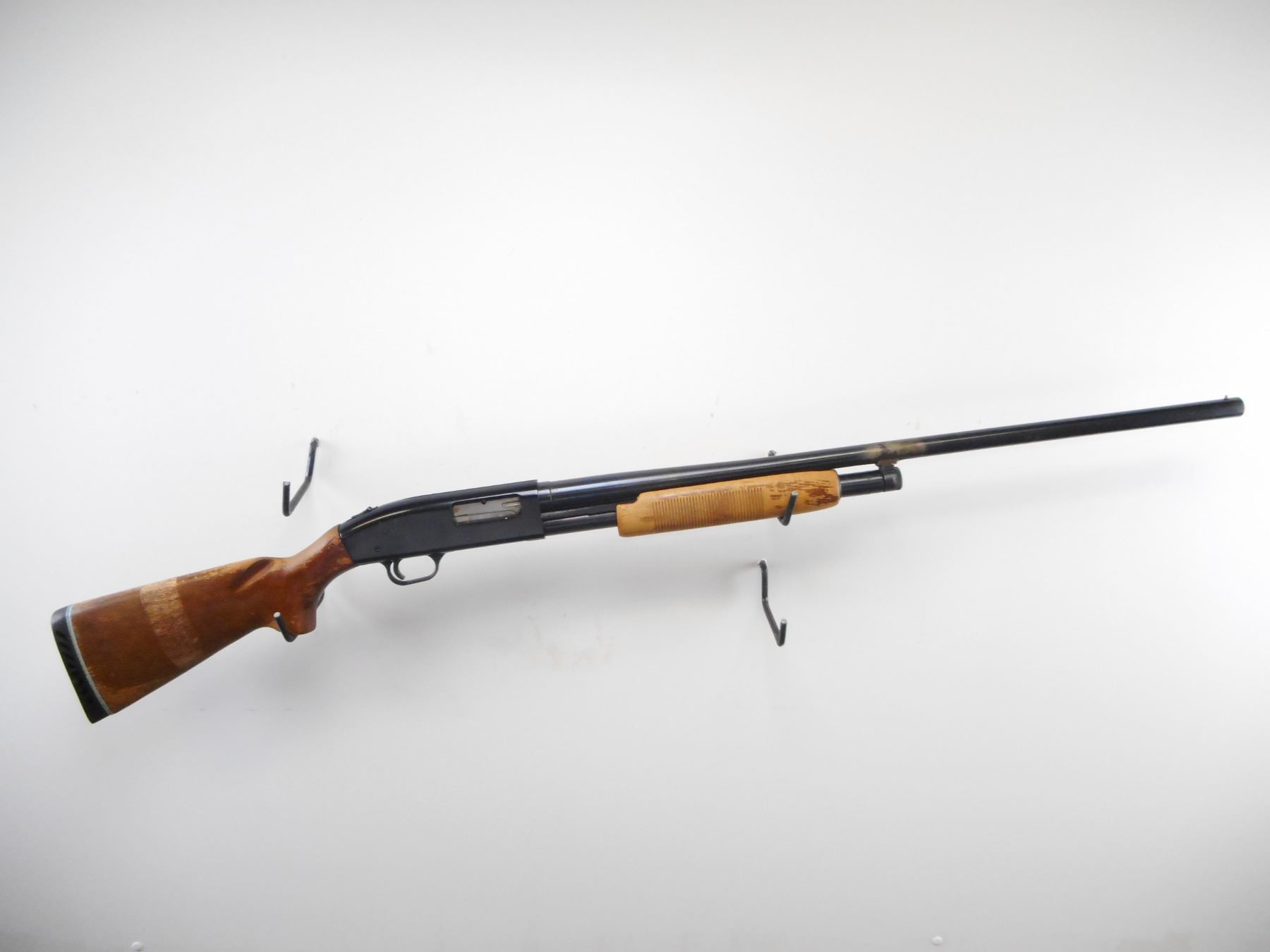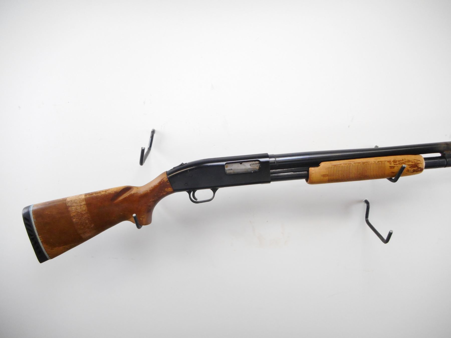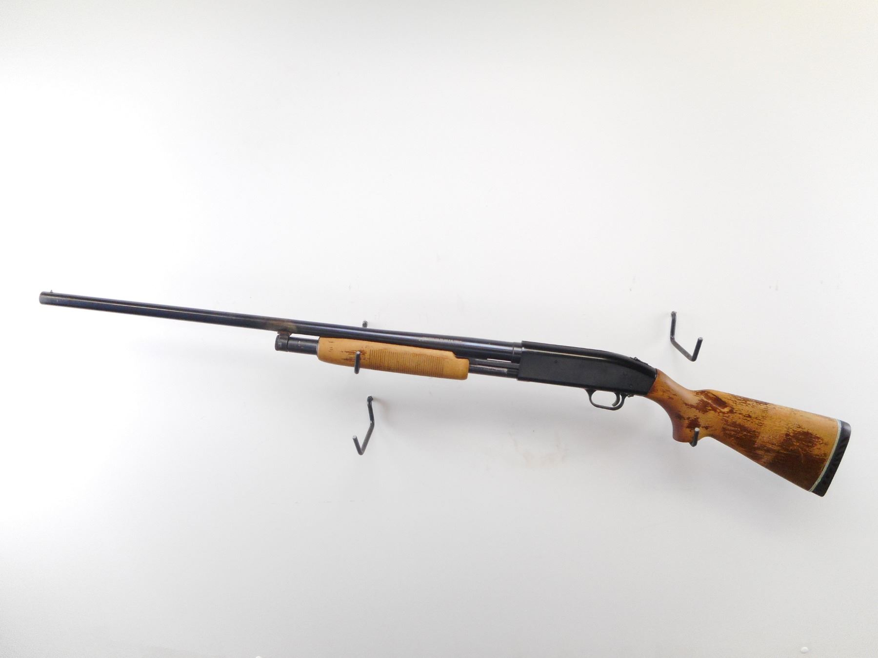 MOSSBERG , MODEL: 400G , CALIBER: 12 GA X 3" , FULL CHOKE. BORE IS VERY GOOD. BRASS BEAD. ROUND BARREL. TANG SAFETY. GROOVED WOOD FOREND. LOOSE SMOOTH PISTOL GRIP BUTT STOCK. BLACK VENTED RUBBER RECOIL PAD. BARREL LUG BRAZED AND WELDED BACK ON. BLUEING SHOWS WEAR HANDLING MARKS AND SCRATCHES. STOCK SHOWS DINGS SCRATCHES, VERY LITTLE FINISH REMAINING. , ACTION: PUMP ACTION SHOTGUN , BARREL LENGTH: 30" , SERIAL# G707212 , CONDITION:4/10 , CLASS: CANADIAN NON RESTRICTED CLASS