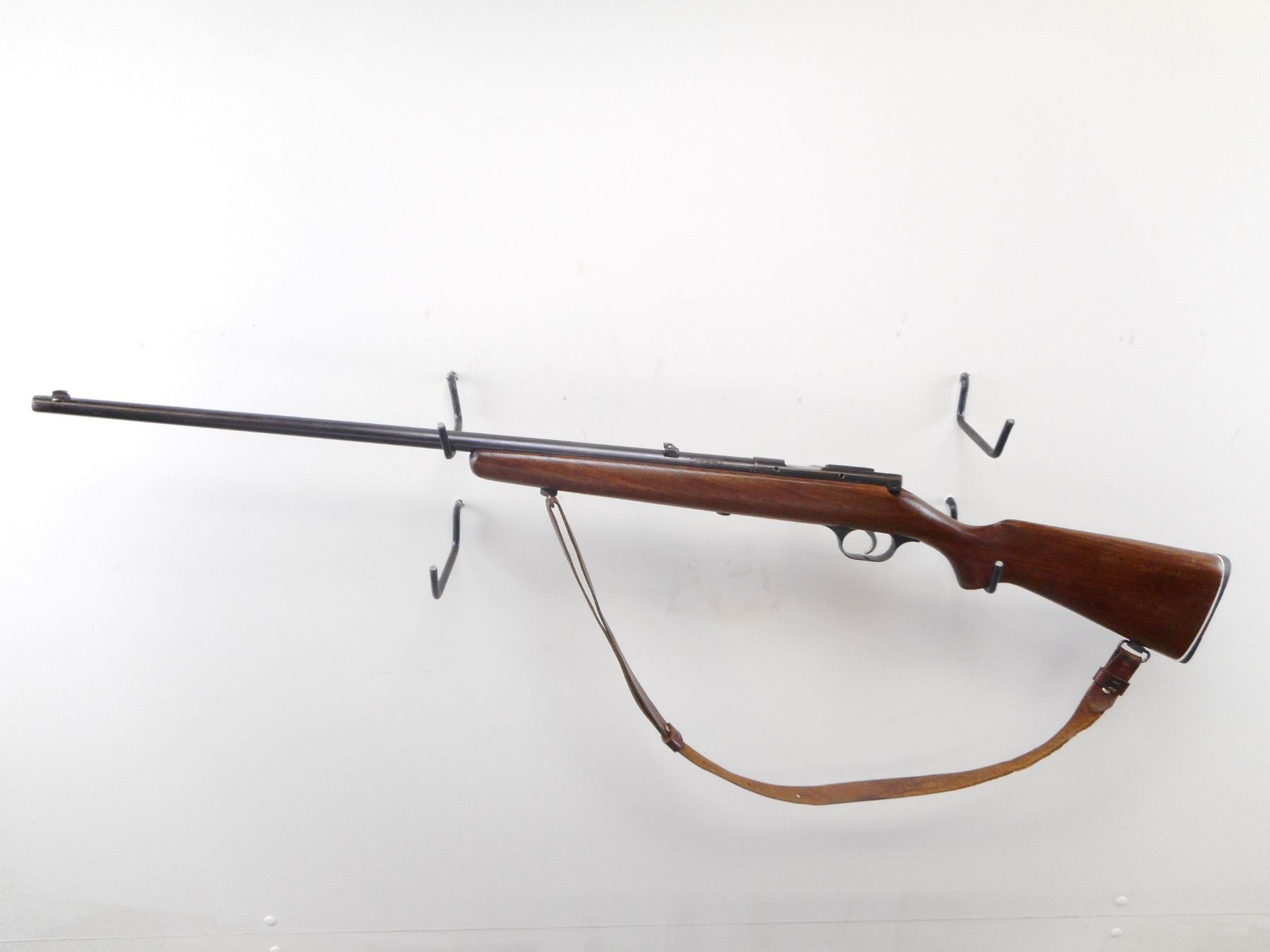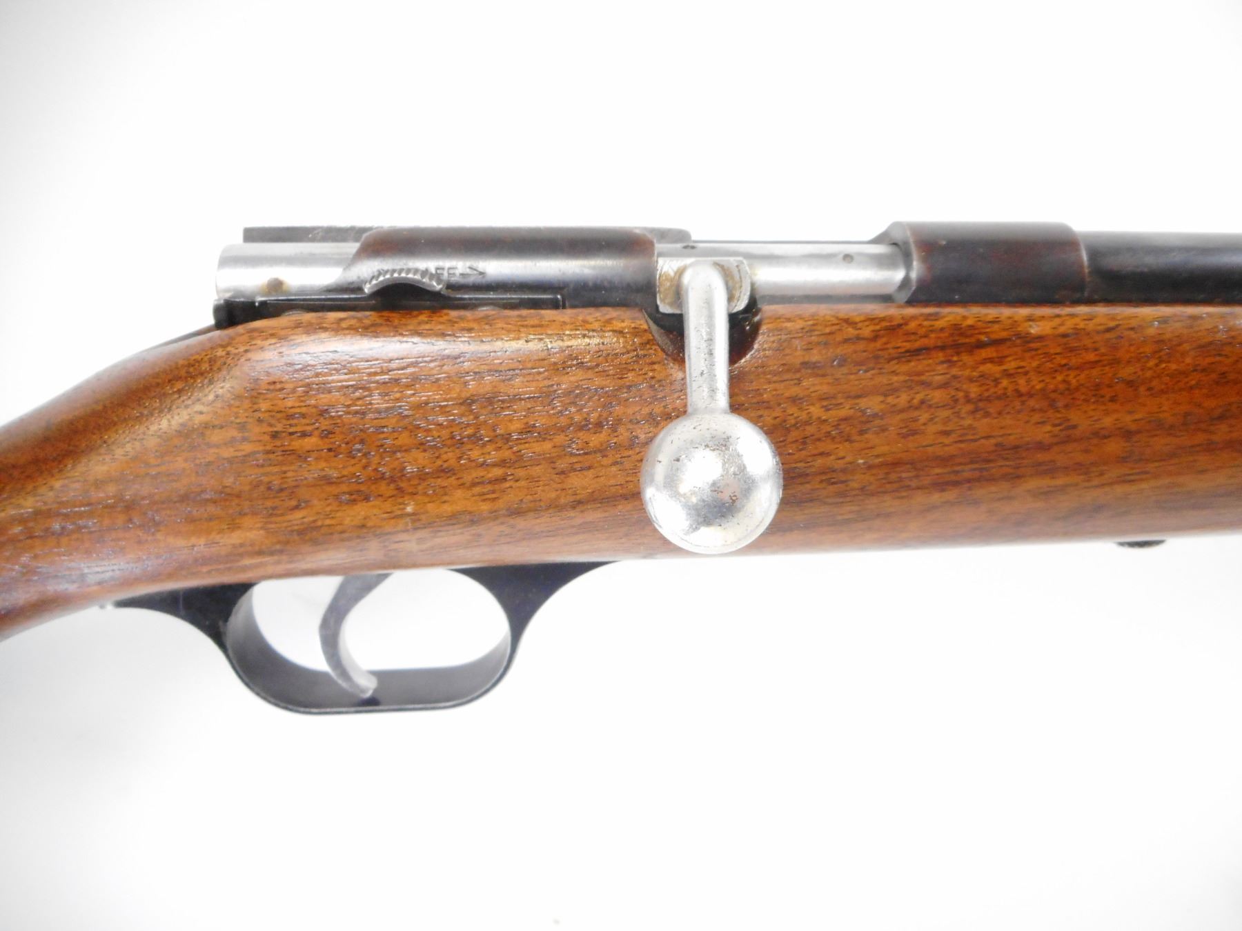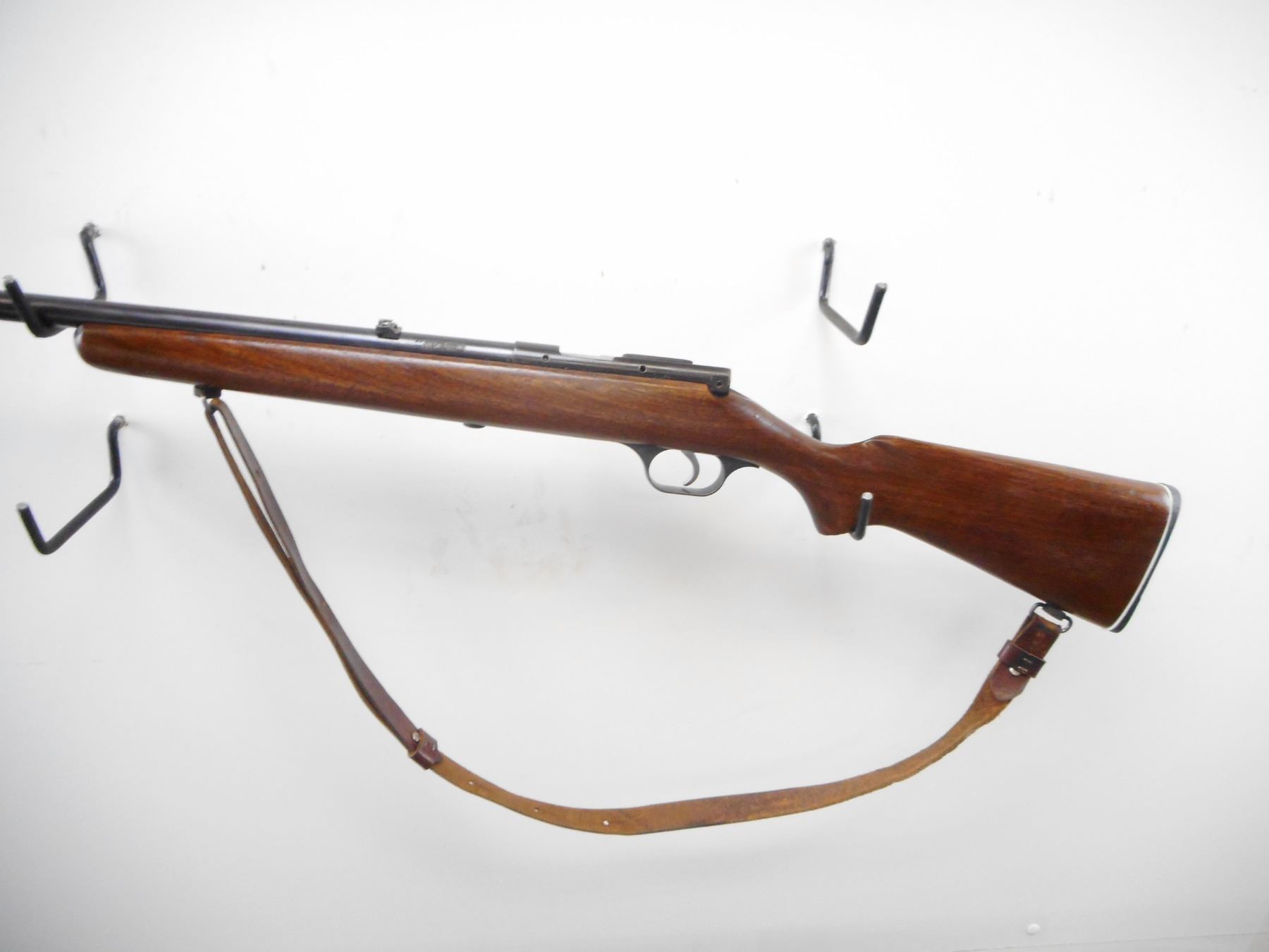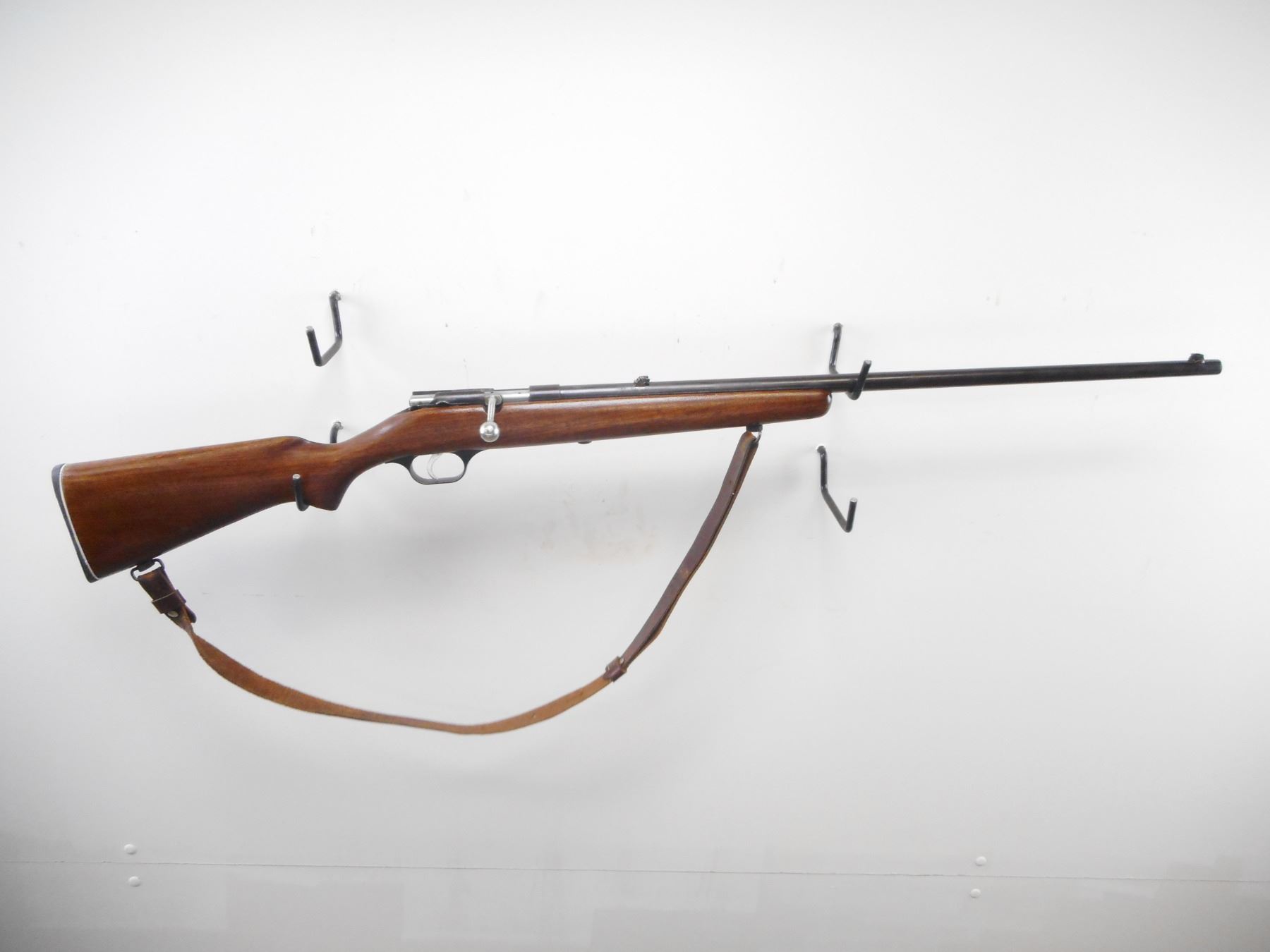 SAVAGE , MODEL: 3C , CALIBER: CONVERTED TO 22 MAG , BORE IS GOOD. U NOTCH FOLDING REAR SIGHT. RECEIVER DRILLED AND TAPPED. SMOOTH ONE PIECE WOOD STOCK. GROOVED BLACK POLYMER BUTT PLATE. SWIVELS WITH BROWN LEATHER SLING. BLUEING SHOWS HANDLING MARKS AND WEAR. STOCK SHOWS HANDLING MARKS AND WEAR. , ACTION: BOLT ACTION RIFLE , BARREL LENGTH: 26" , SERIAL# N/A , CONDITION:5/10 , CLASS: CANADIAN NON RESTRICTED CLASS