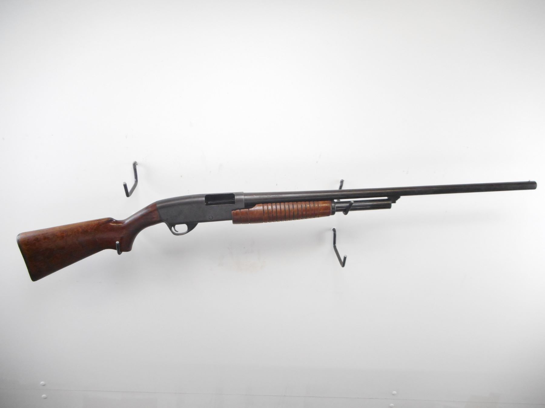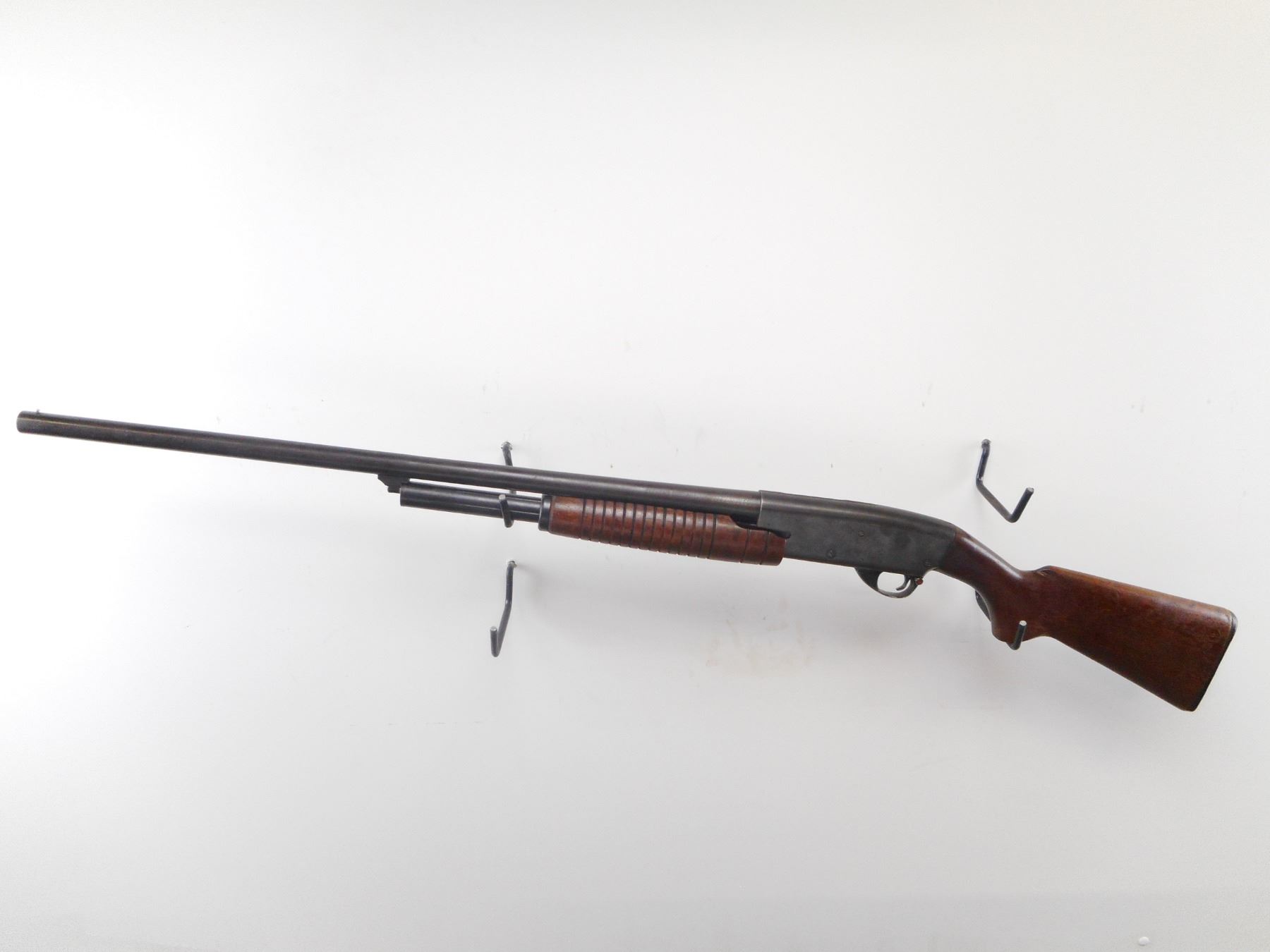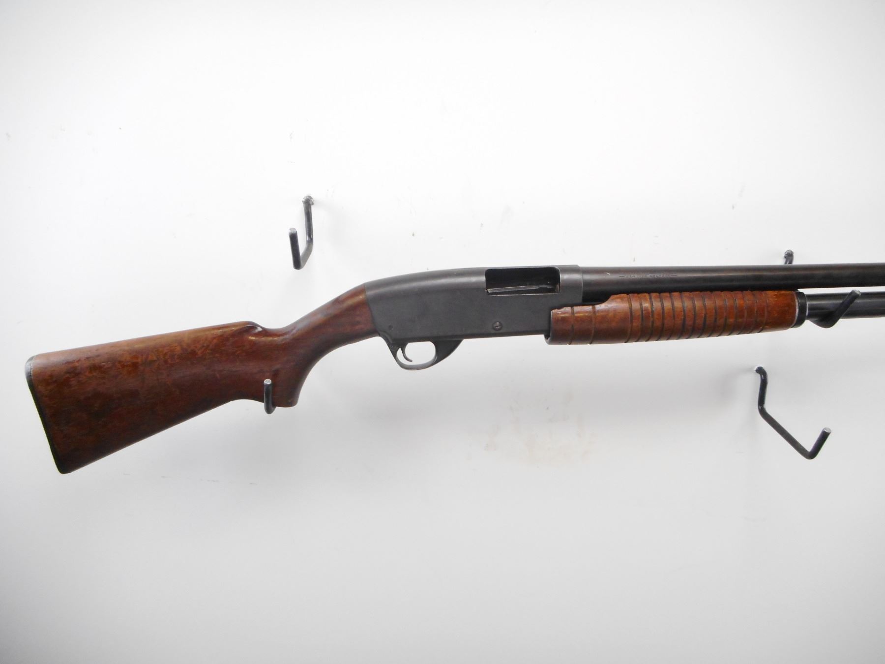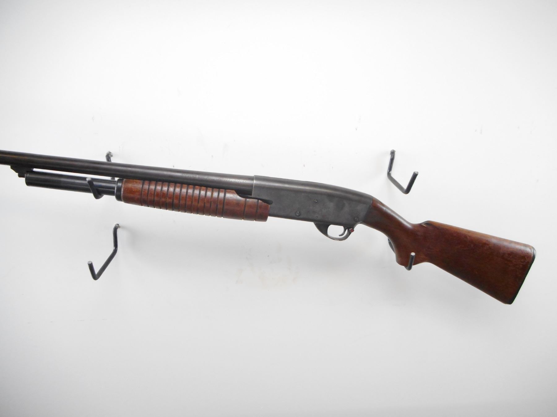 STEVENS , MODEL: 77 , CALIBER: 12GA X 2 3/4" , FULL CHOKE. BORE IS GOOD. SILVER BEAD. ROUND BARREL. PUMP DOES NOT LOCK INTO PLACE. REQUIRES REPAIR BEFORE USE. GROOVED WOOD FOREND. SMOOTH PISTOL GRIP, WOOD BUTT STOCK. GROOVED BLACK POLYMER BUTT PLATE. BLUEING TURNING BROWN, LIGHT RUST SPECKLES, WEAR. STOCK SHOWS NUMEROUS HANDLING MARKS AND WEAR. , ACTION: PUMP ACTION SHOTGUN , BARREL LENGTH: 28" , SERIAL# N/A , CONDITION:4/10 , CLASS: CANADIAN NON RESTRICTED CLASS