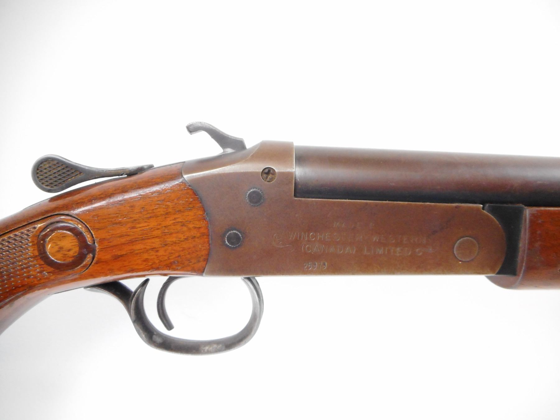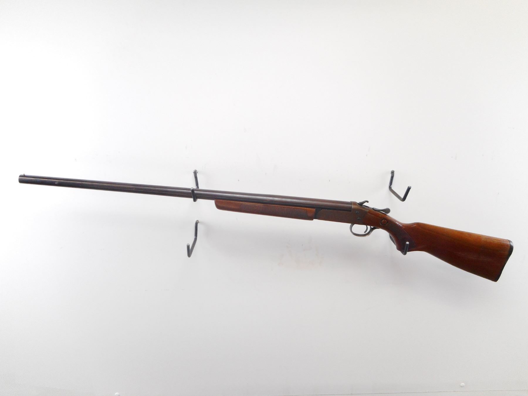 COOEY , MODEL: 840 , CALIBER: 12GA X 2 3/4" , I/M CHOKE. BORE IS GOOD. BRASS BEAD. TWO PIECE WOOD STOCKS. CHECKERED FOREARM AND PISTOL GRIPS. GROOVED BLACK POLYMER BUTT PLATE. BLUEING TURNING BROWN, HAS WEAR. STOCK SHOWS HANDLING MARKS AND FINISH WEAR. , ACTION: HINGE SINGLE SHOT , BARREL LENGTH: 30" , SERIAL# 25979 , CONDITION:5/10 , CLASS: CANADIAN NON RESTRICTED CLASS