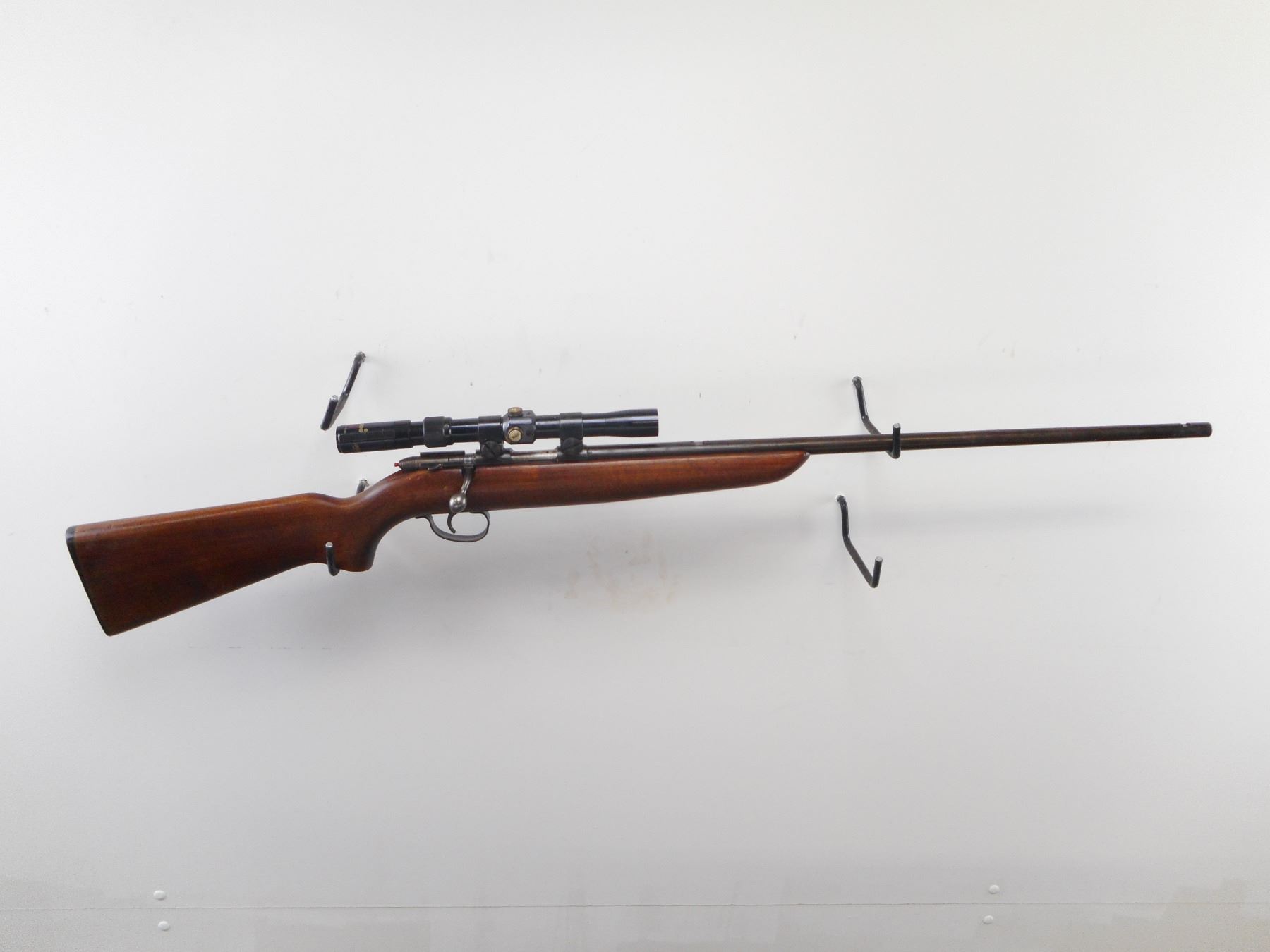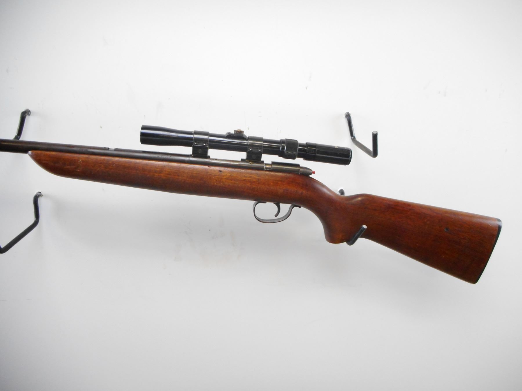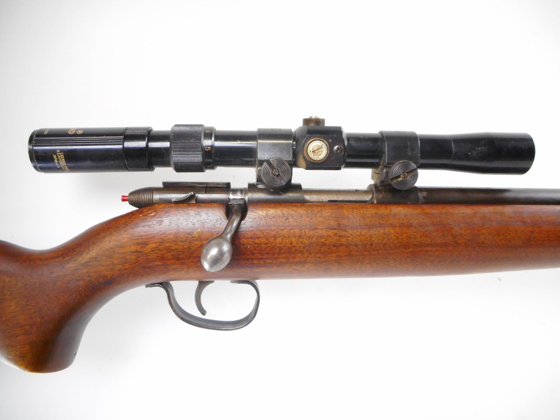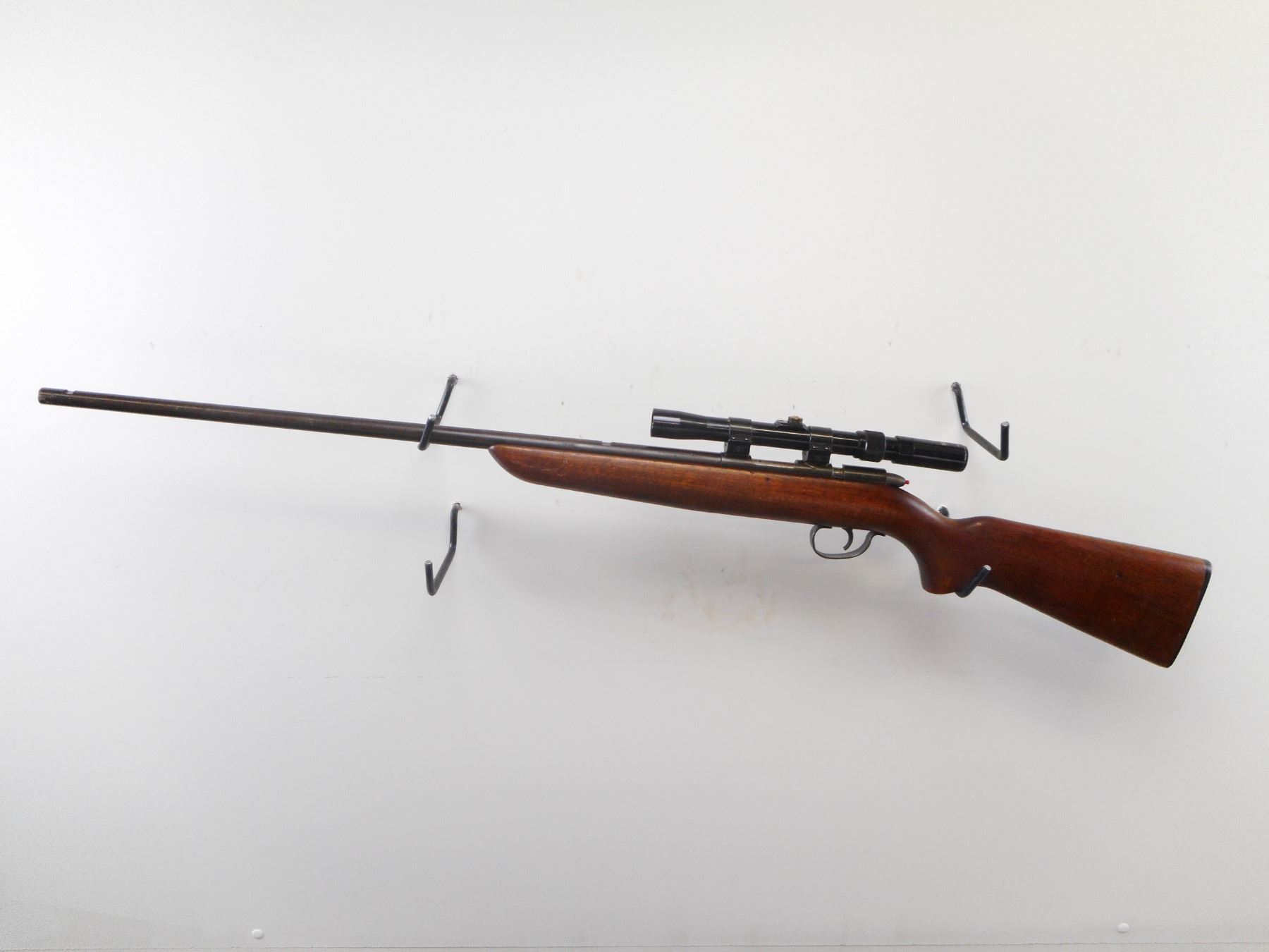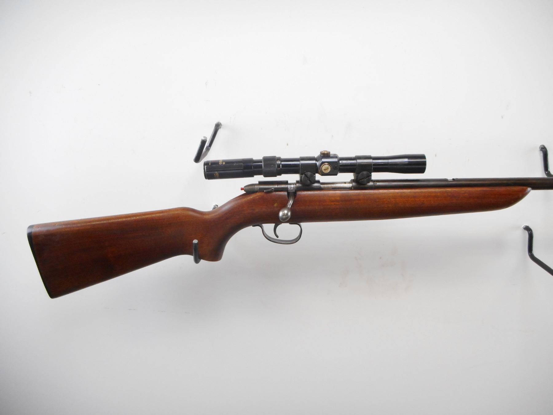 REMINGTON , MODEL: 510 TARGET MASTER , CALIBER: 22 LR , BORE IS VERY GOOD. SIGHT REMOVED. TASCO 3-7 X 20 SCOPE. MISSING CAPS. ONE PIECE WOOD STOCK. CHECKERED BLACK POLYMER BUTT PLATE. BLUEING SHOWS HANDLING MARKS AND WEAR. STOCK SHOWS NUMEROUS DINGS AND WEAR. , ACTION: BOLT ACTION RIFLE , BARREL LENGTH: 25" , SERIAL# N/A , CONDITION:4/10 , CLASS: CANADIAN NON RESTRICTED CLASS