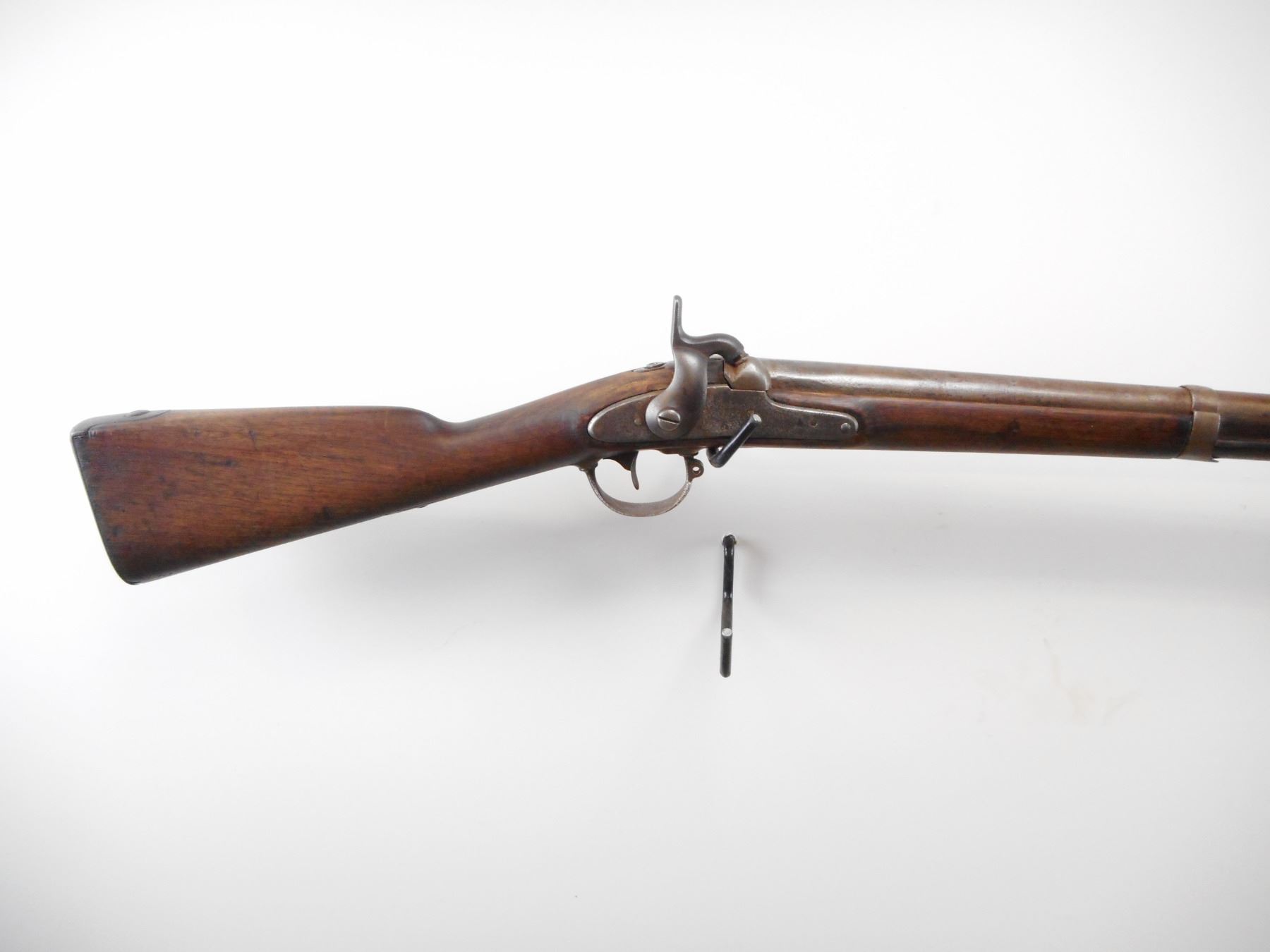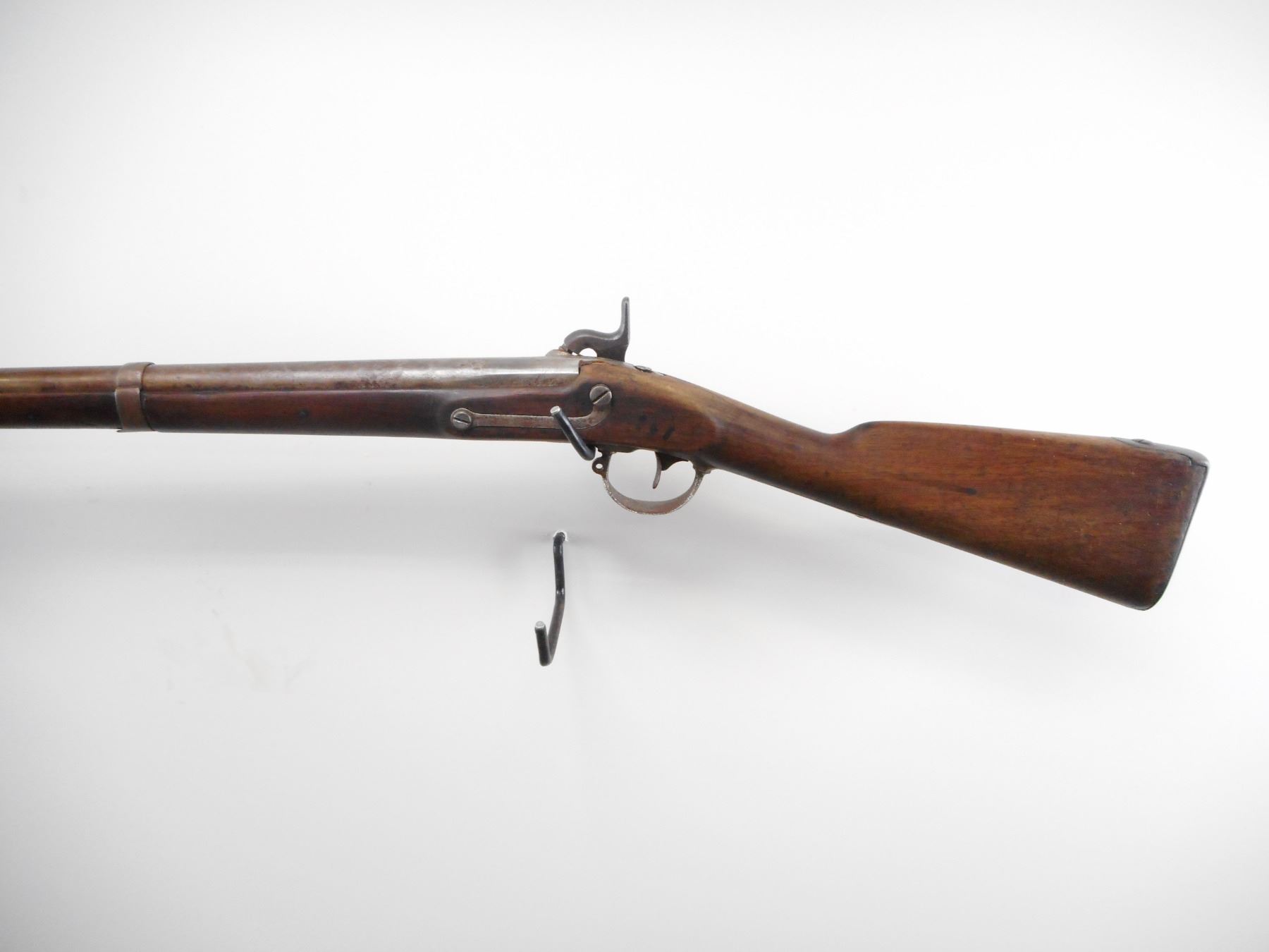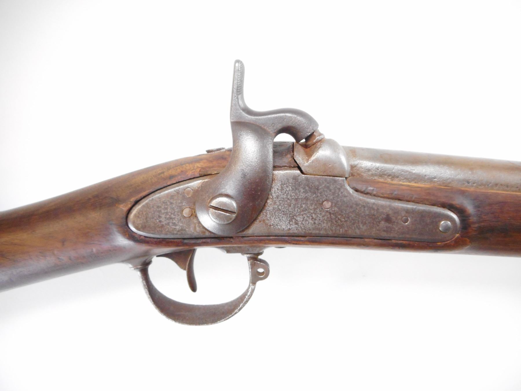 HARPERS FERRY , MODEL: 1846 , CALIBER: 69 , BORE IS POOR. LOCK MARKED HARPERS FERRY 1846. METAL SILVER/GREY. PERCUSSION HAMMER. FULL LENGTH STOCK. SMOOTH STEEL BUTT PLATE. TRIGGER GUARD. THREE BANDS. NO RAMP ROD. METAL SHOWS EXTENSIVE WEAR AND LIGHT PITTING. STOCK SHOWS NUMEROUS HANDLING MARKS AND WEAR. , ACTION: PERCUSSION , BARREL LENGTH: 40" , SERIAL# N/A , CONDITION:4/10 ANTIQUE , CLASS: NO LICENSE REQUIRED TO PURCHASE