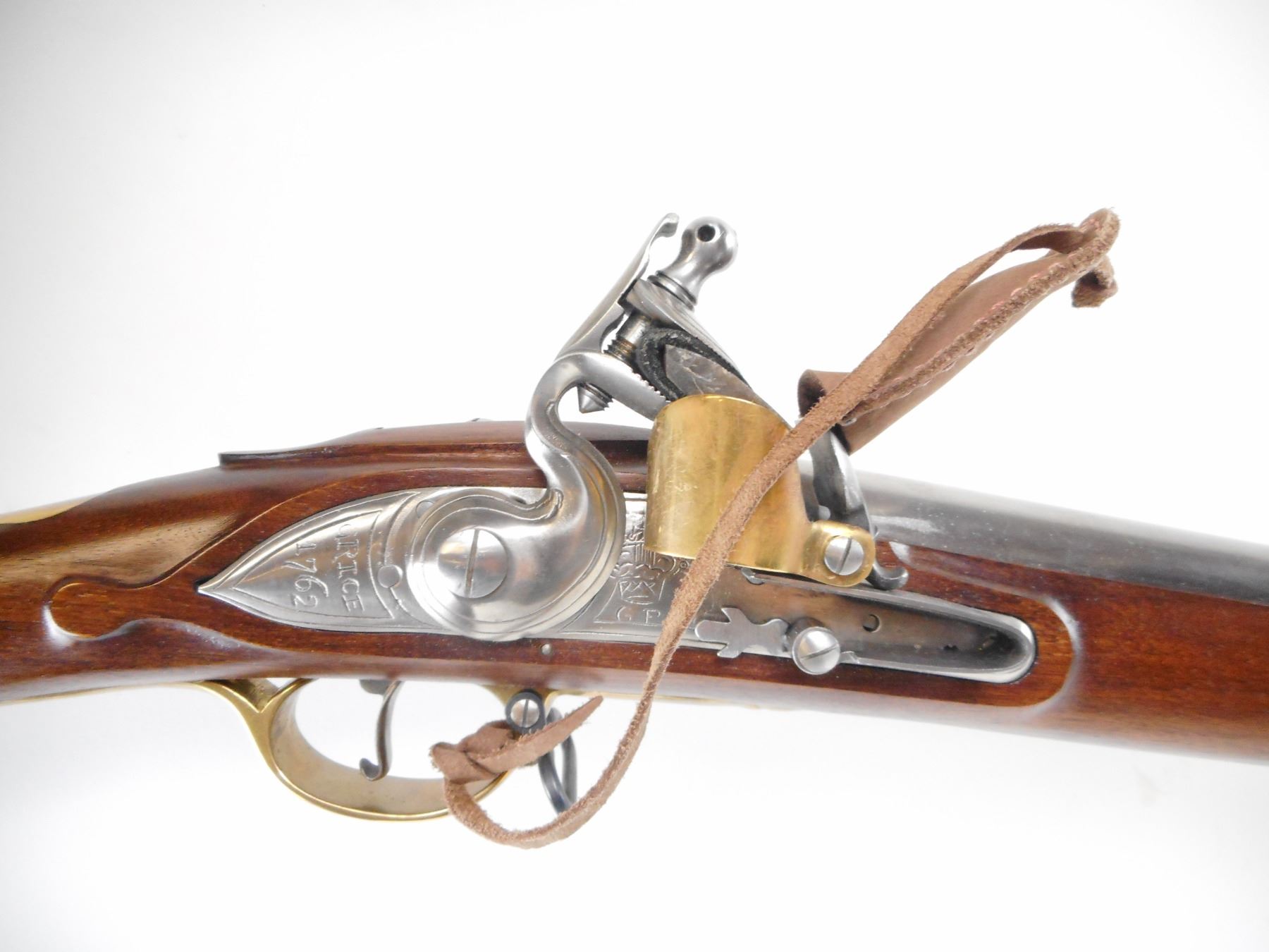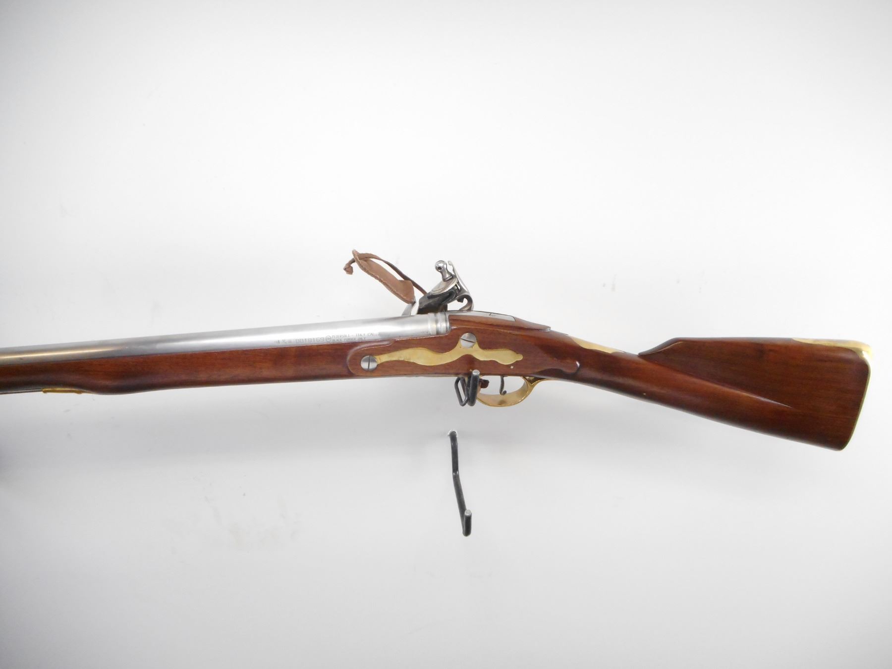 PEDERSOLI , MODEL: 1763 BROWN BESS. , CALIBER: 75 CAL , BORE IS EXCELLENT. SQUARE LUG FRONT SIGHT. LOCK MARKED CROWN GE GRICE 1762. HAS LEATHER FRIZZEN COVER. AND FLINT.FLASH PAN HAS BRASS SHIELD. METAL FINISH IS IN THE WHITE. ONE PIECE SMOOTH FULL MILITARY STOCK. SMOOTH BRASS BUTT PLATE. BRASS PLATE ON TANG. BRASS TRIGGER GUARD. FOUR RAM ROD PIPES. FOREND CAP. SLING SWIVELS. RAMP ROD. DOES NOT APPEAR TO HAVE BEEN FIRED. FRIZZEN SHOWS SCRATCHES FROM FLINT. METAL SHOWS SLIGHT SCRATCHES AND HANDLING MARKS, STOCK SHOWS SLIGHT HANDLING MARKS AND WEAR. , ACTION: FLING LOCK , BARREL LENGTH: 41" , SERIAL# BV18169 , CONDITION:9/10 ANTIQUE , CLASS: NO LICENSE REQUIRED TO PURCHASE