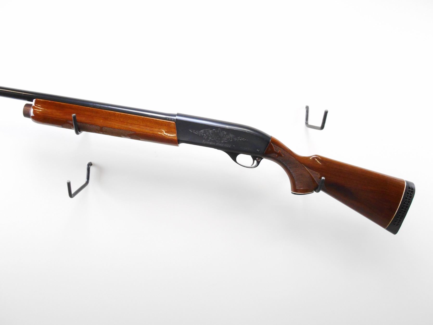REMINGTON , MODEL: 1100 , CALIBER: 12 GA X 2 3/4" , BORE IS EXCELLENT. FIXED FULL CHOKE. SILVER BEAD. ROUND BLUED BARREL. ENGRAVED RECEIVER. RECEIVER IS 2 3/4" BARREL IS 3" TWO PIECE WOOD STOCK. CHECKERED FOREARM AND PISTOL GRIP. BLACK VENTED RUBBER RECOIL PAD. GRIP CAP. BLUEING SHOWS MINOR MARKS AND WEAR, STOCK SHOWS SOME HANDLING MARKS AND DINGS. , ACTION: SEMI AUTOMATIC SHOTGUN , BARREL LENGTH: 30" , SERIAL # M410275M , CONDITION: 8/10 , CLASS: CANADIAN NON RESTRICTED CLASS