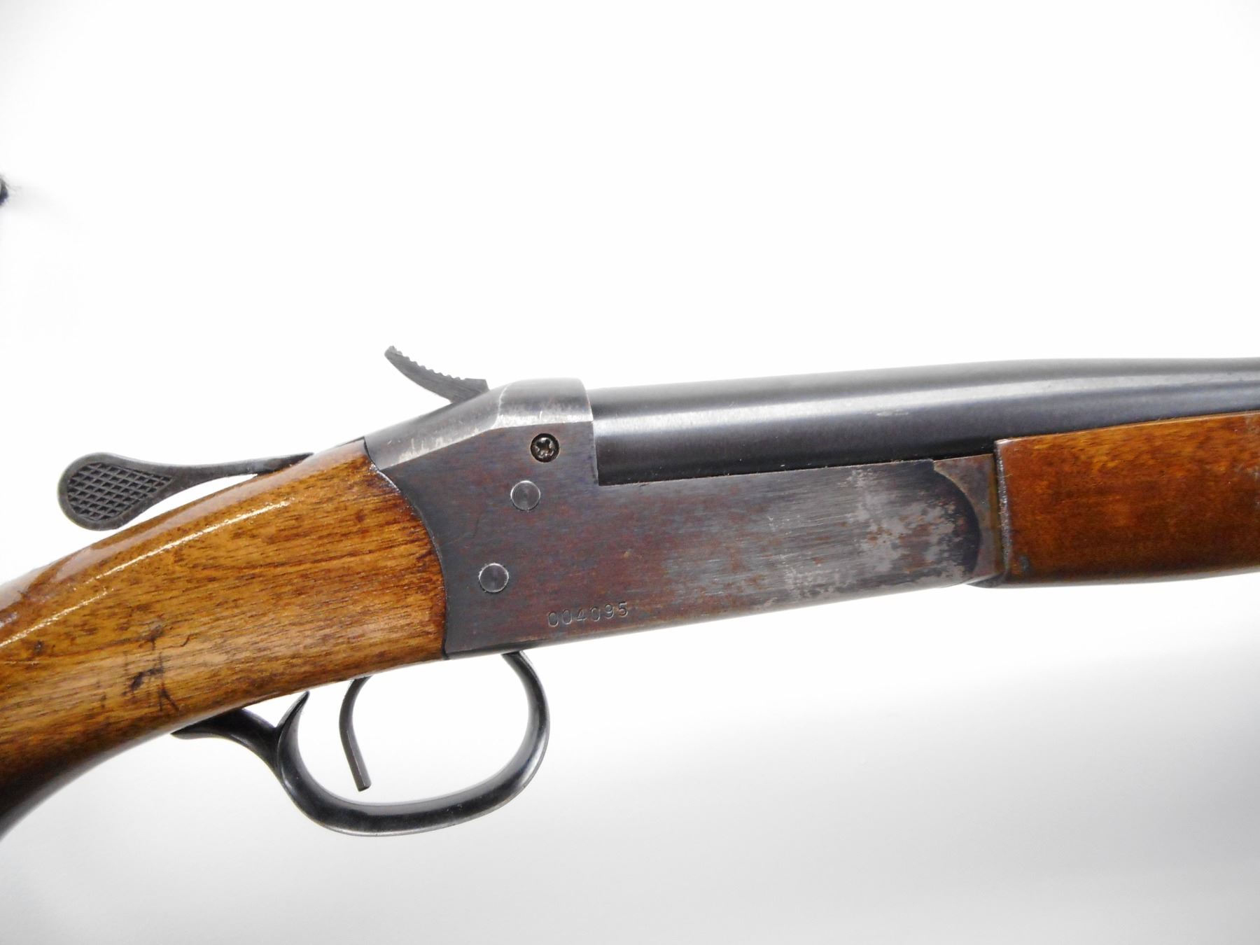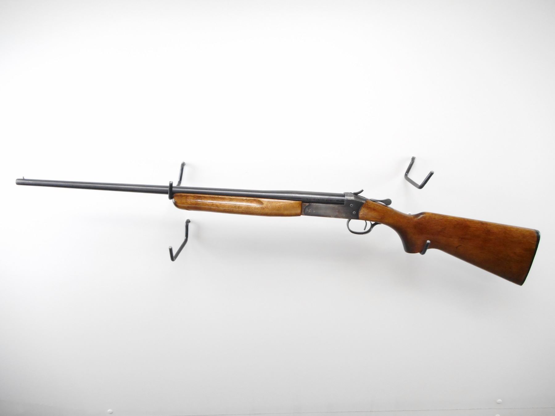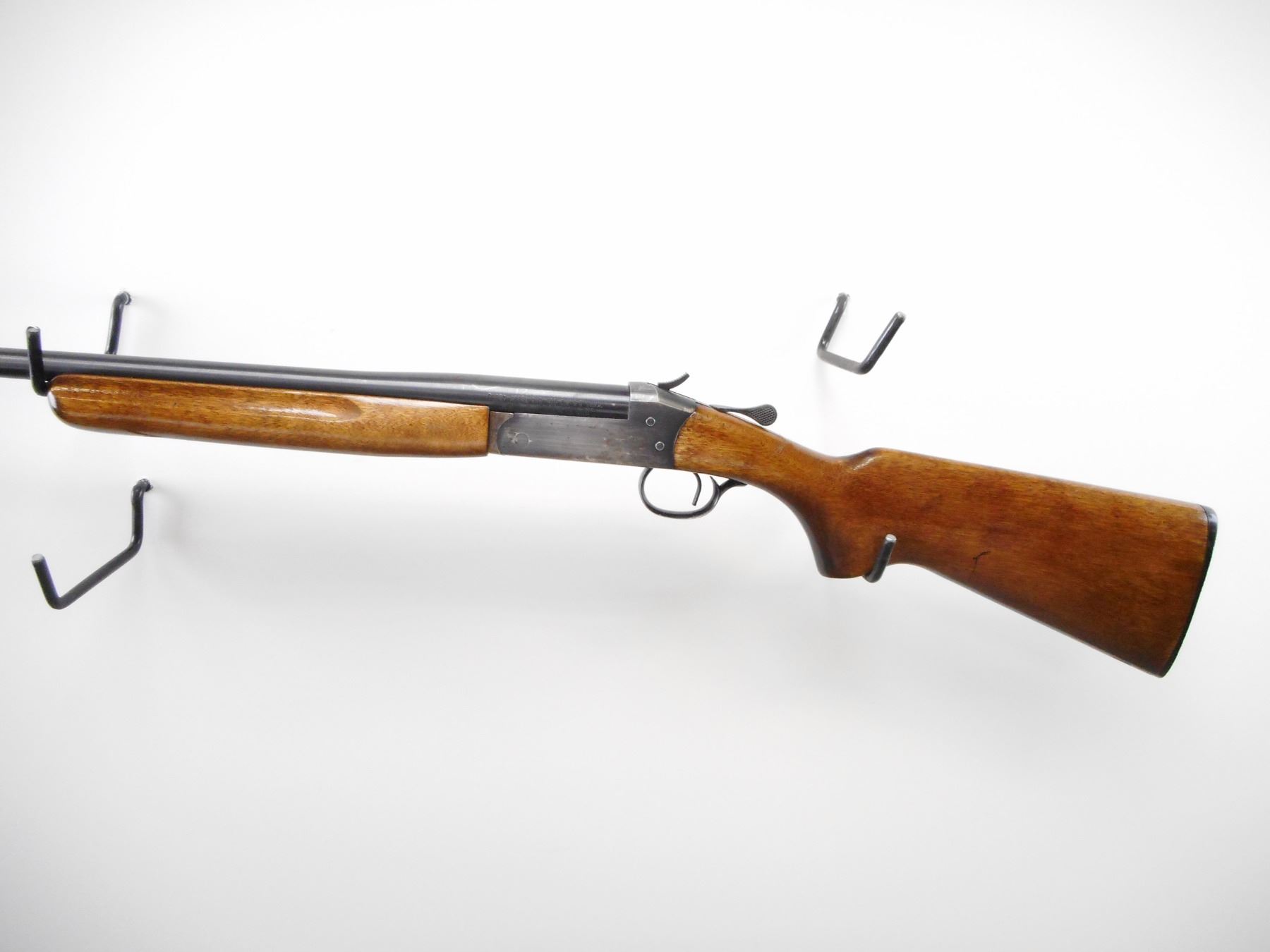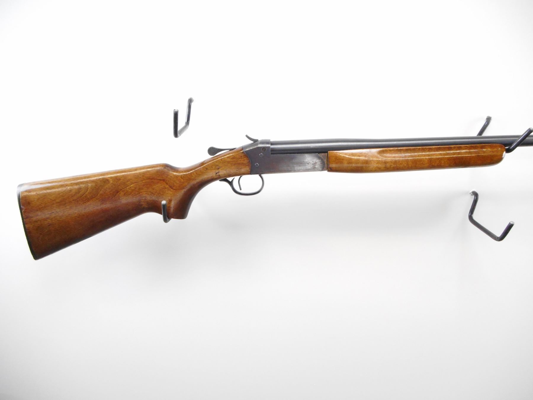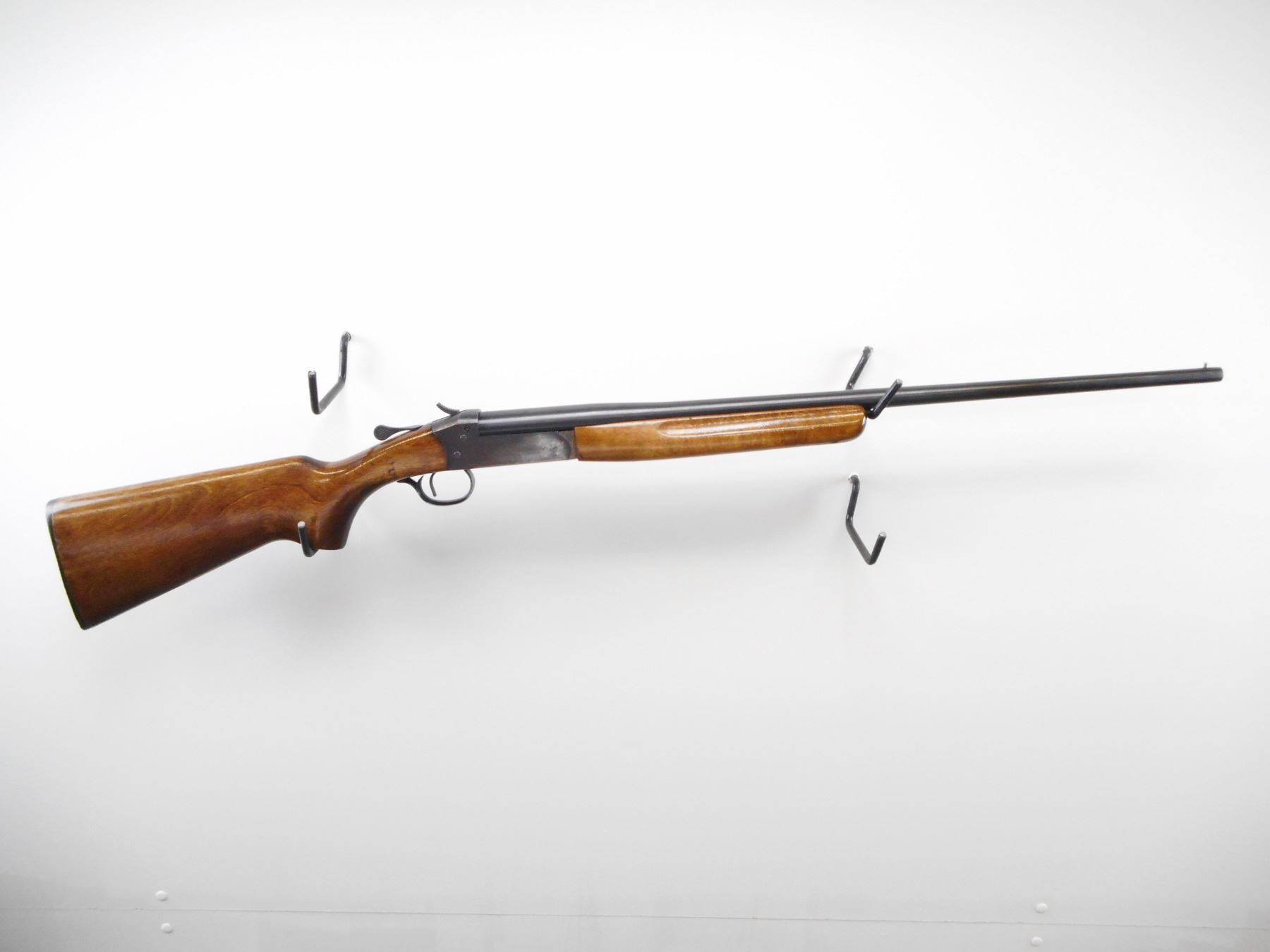 COOEY , MODEL: 840 , CALIBER: 410 X 3" , BORE IS VERY GOOD, FIXED FULL CHOKE, BRASS BEAD, BLUED ROUND BARREL, TWO PIECE SMOOTH WOOD STOCK, CHECKERED BLACK POLYMER BUTT PLATE, METAL FINISH SHOWS HANDLING MARKS,LIGHT RUST SPECKLES, WEAR, HANDLING MARKS, STOCK SHOWS SMALL DINGS AND WEAR , ACTION: SINGLE SHOT BREAK ACTION SHOT GUN , BARREL LENGTH: 26" , SERIAL # 004095 , CONDITION: 7/10 , CLASS: CANADIAN NON RESTRICTED CLASS