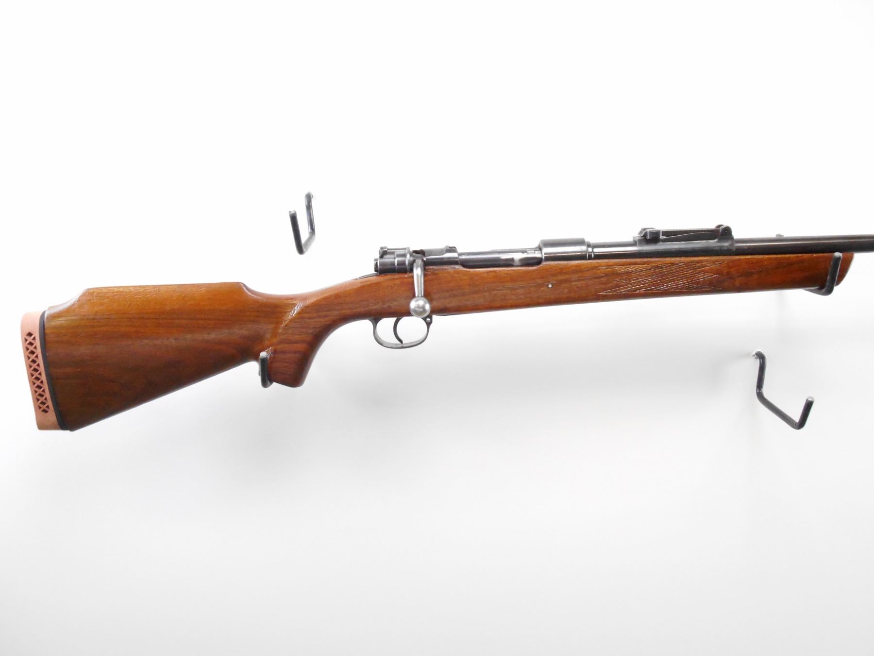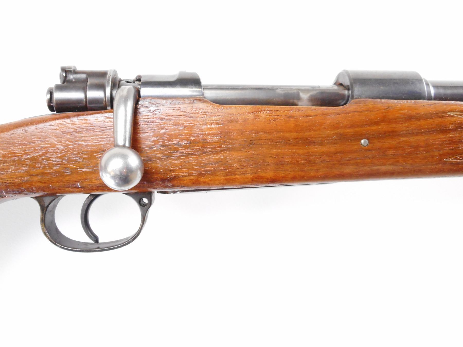GLOBE FIREARMS , MODEL: 98 , CALIBER: 8 X 57MM , BORE IS FAIR, DARK. BARLEY CORN FRONT SIGHT. ADJUSTABLE REAR U NOTCH REAR SIGHT. BLUED FINISH ON METAL PARTS. ONE PIECE WOOD STOCK. CHECKERED FOREARM. CHEEK REST. RED VENTED RECOIL PAD. METAL FINISH SHOWS SOME WEAR. STOCK SHOWS NUMEROUS HANDLING MARKS AND WEAR , ACTION: BOLT ACTION RIFLE , BARREL LENGTH: 23 1/2" , SERIAL # N/A , CONDITION: 7/10 , CLASS: CANADIAN NON RESTRICTED CLASS