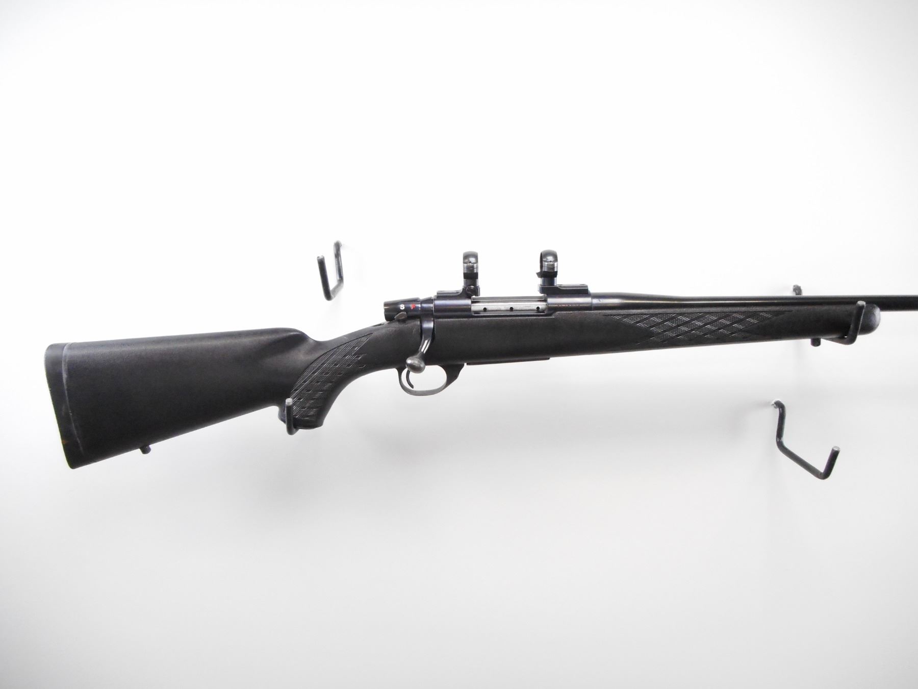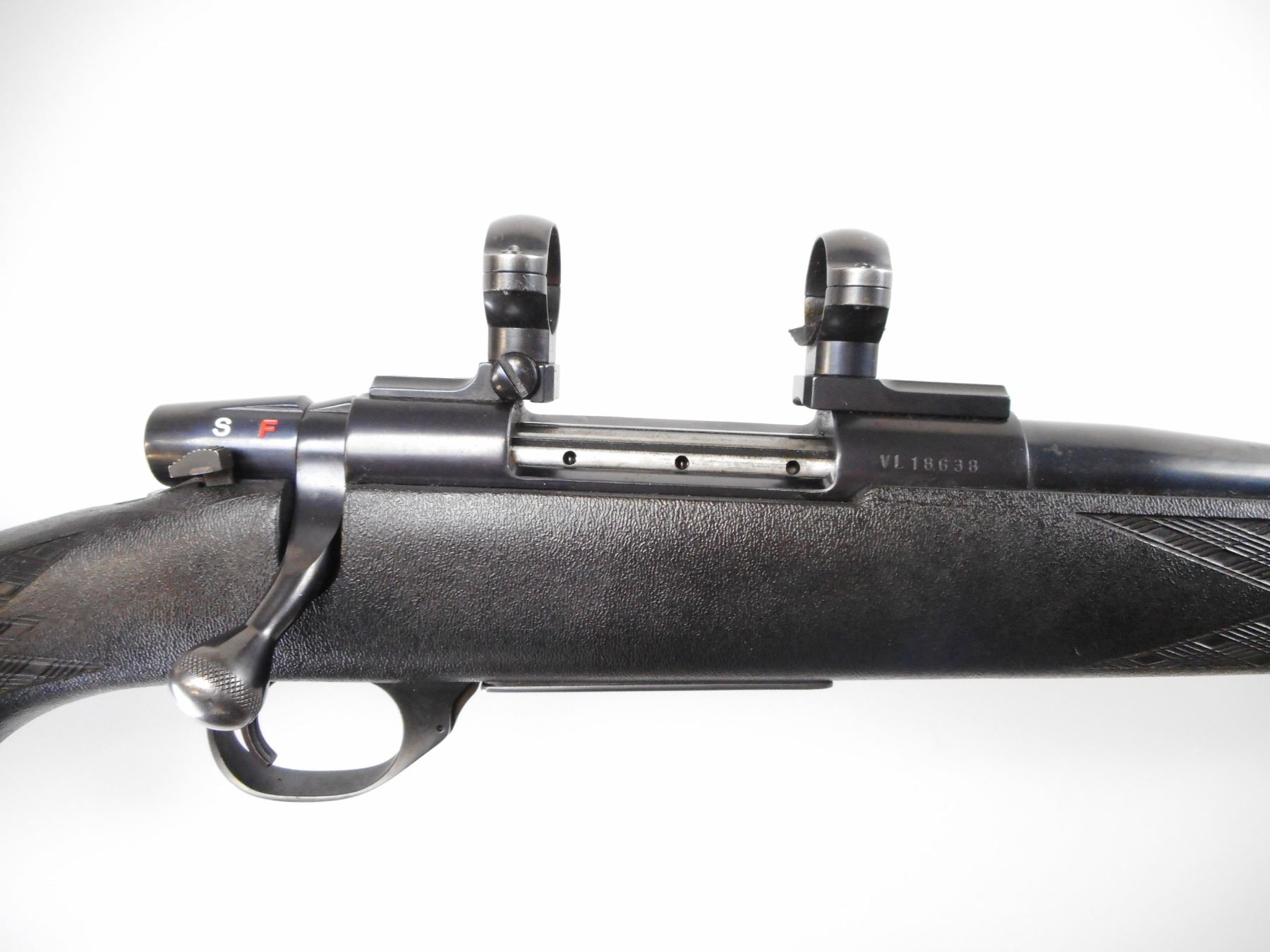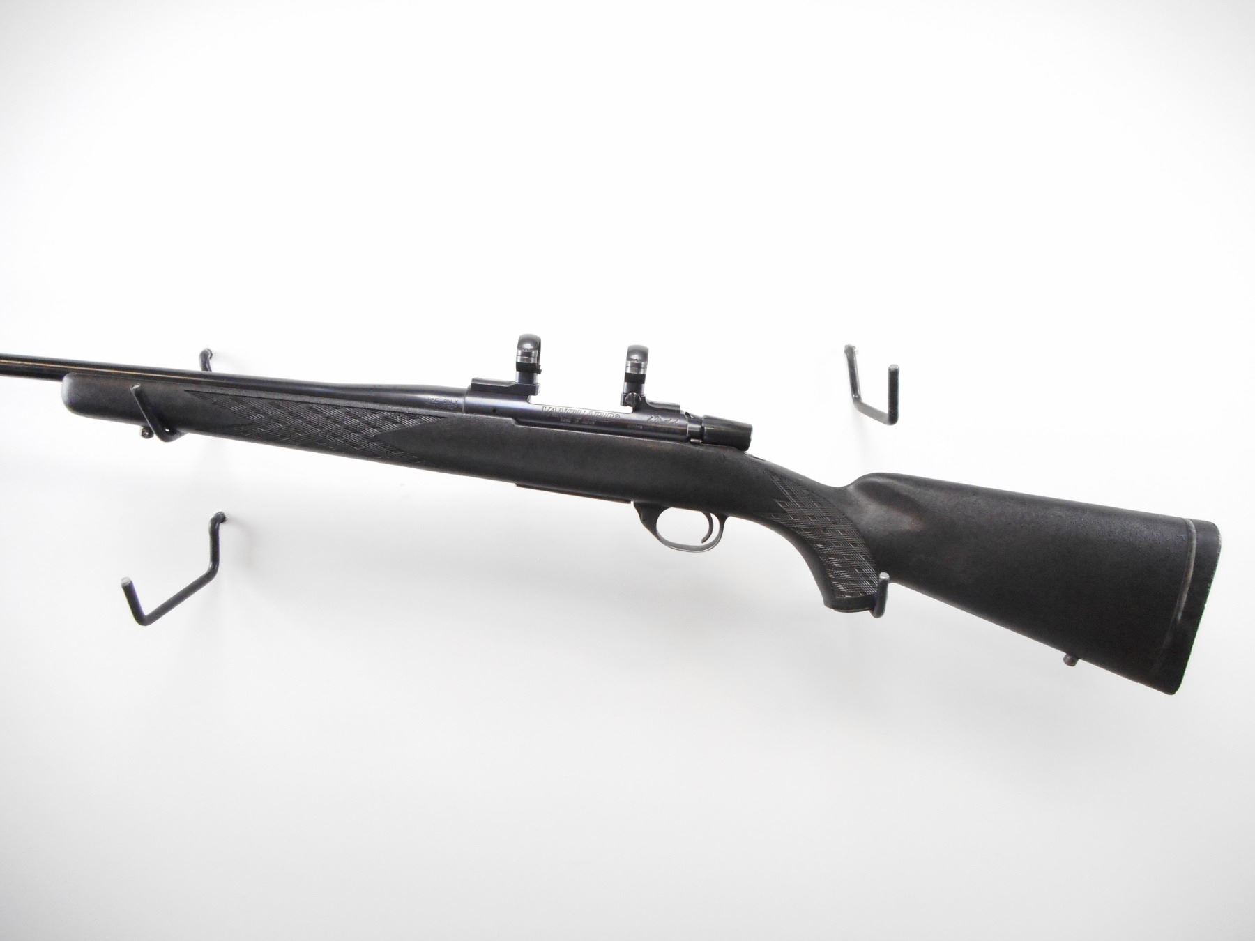 WEATHERBY , MODEL: VANGUARD , CALIBER: 7MM-08 REM , BORE IS VERY GOOD. NO SIGHTS. 1" TURN IN RINGS AND BASES ON RECEIVER. ONE PIECE BLACK SYNTHETIC STOCK. CHECKERED FOREARM AND PISTOL GRIP. BLACK RUBBER RECOIL PAD. HINGED FLOOR PLATE. SWIVEL STUDS. BLUED FINISH SHOWS SOME WEAR. STOCK SHOWS SOME HANDLING MARKS , ACTION: BOLT ACTION RIFLE , BARREL LENGTH: 24" , SERIAL # VL18638 , CONDITION: 7/10 , CLASS: CANADIAN NON RESTRICTED CLASS